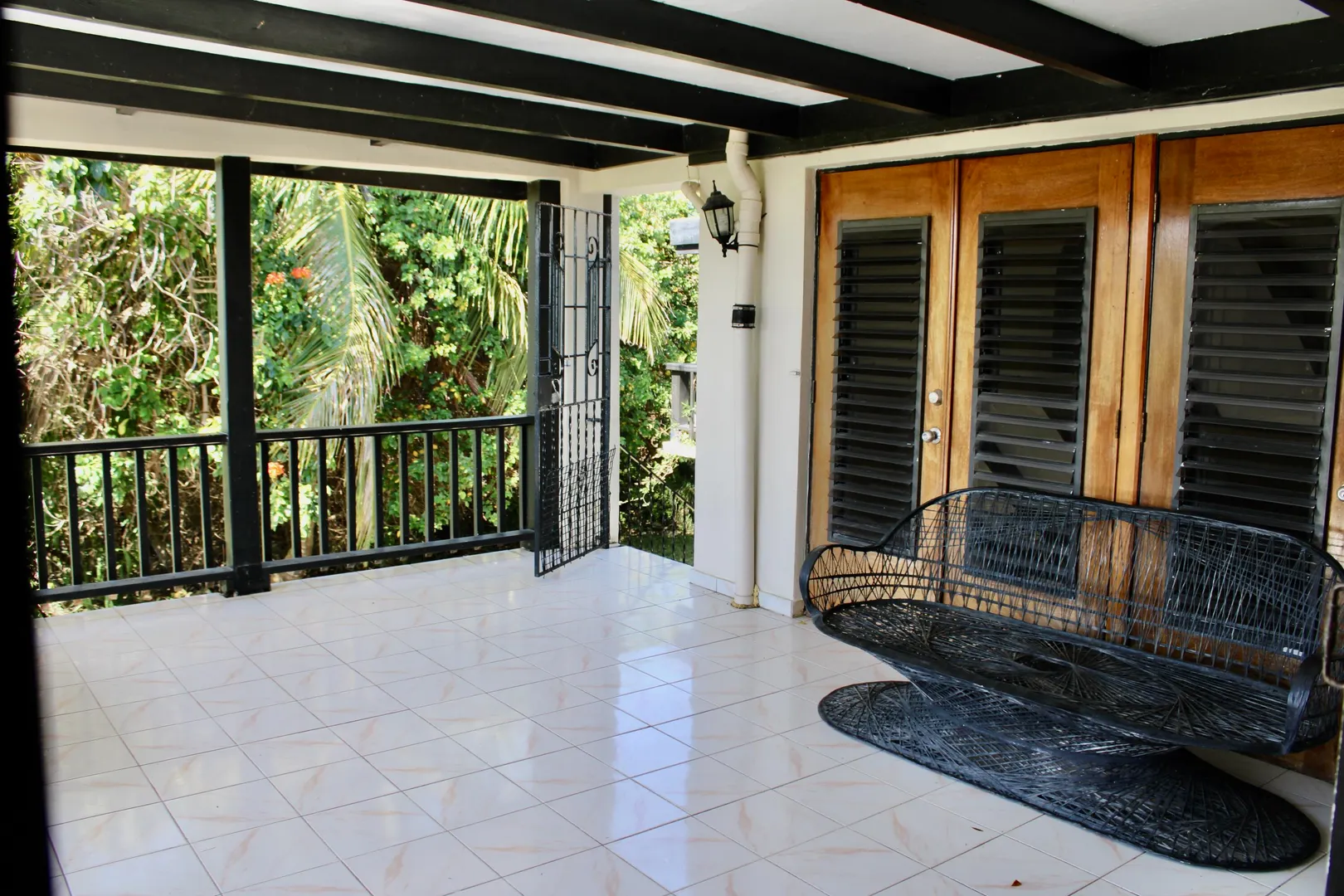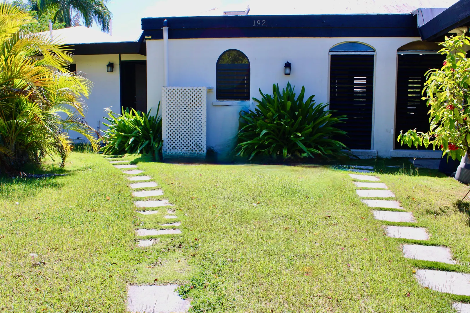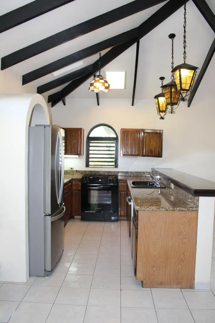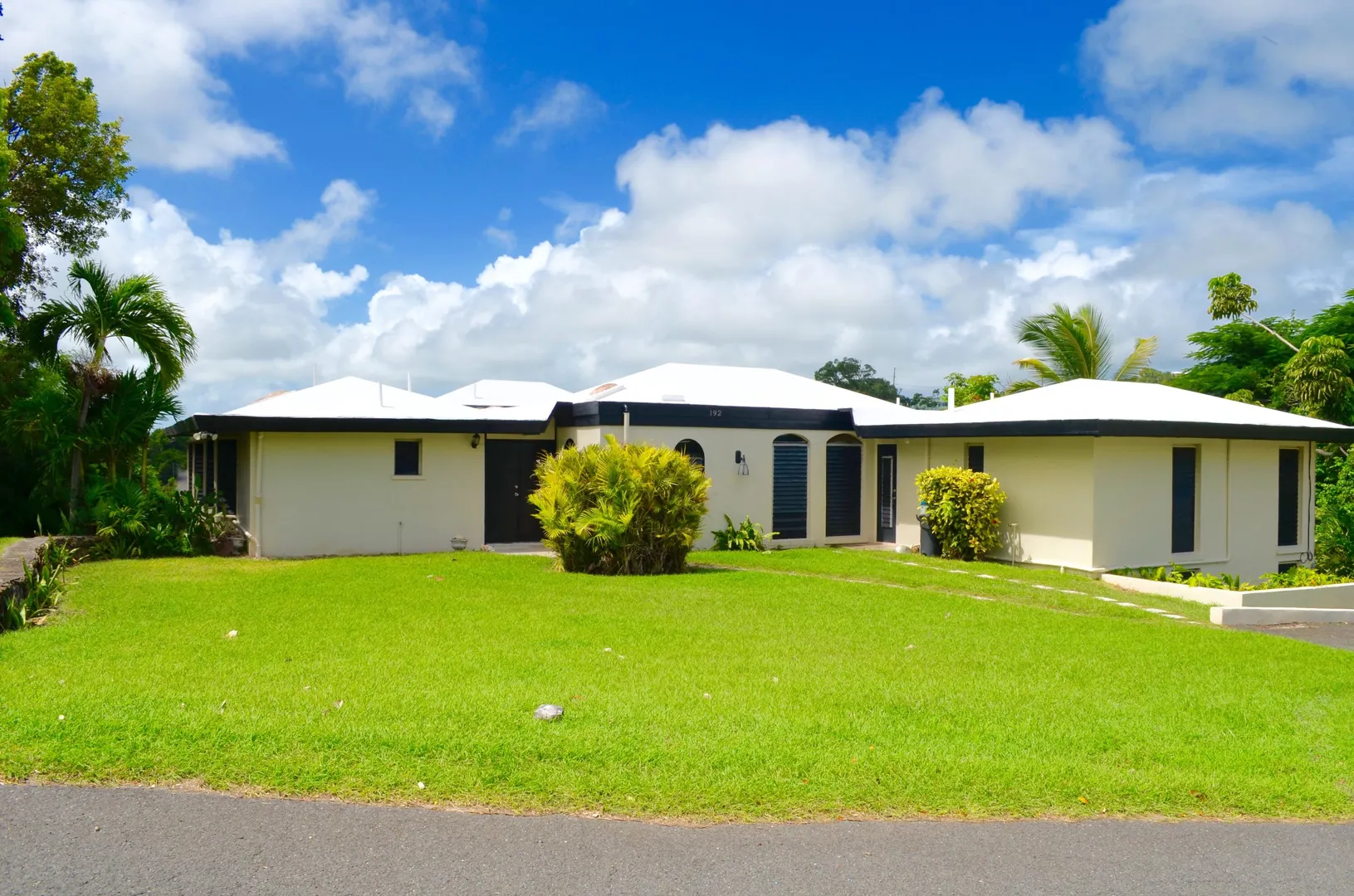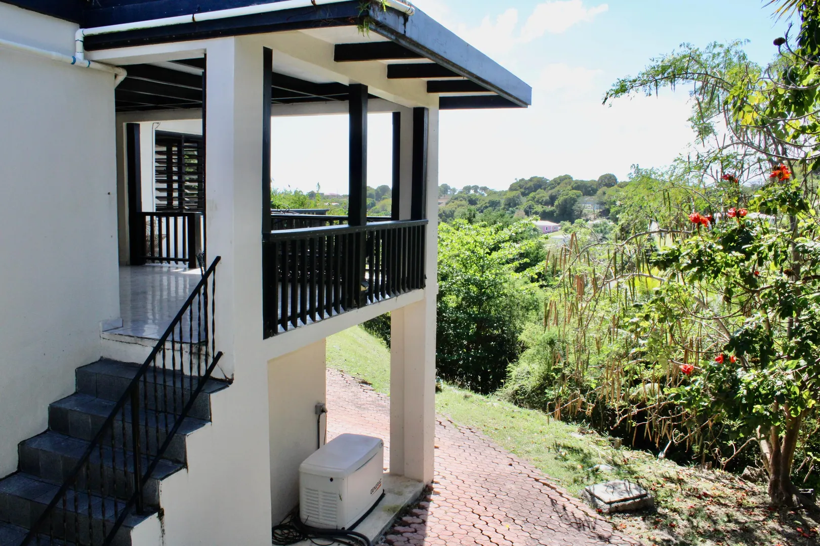 Spacious 3 bedroom/3 bath modern home in Queens Quarter offers brightly lit air-conditioned bedrooms w/ en suite baths. Two bedrooms w/ en suite baths are in the main wing w/a convenient en suite in-law bedroom/bath off the dining room. The in-law suite is easily accessed via a separate entry or the main wing & has a covered private balcony. Super kitchen w/granite counters, updated fresh bathrooms, & on-demand generator make this mid-century beauty modern. A utility room Includes gas dryer/washer. A full length wraparound gallery flanks the living room, dining room & primary bedroom suite. Another great feature is the dry sauna in the primary bath. If you're looking for great outdoor space, a desirable mid-island neighborhood & a nice big house, this is it.