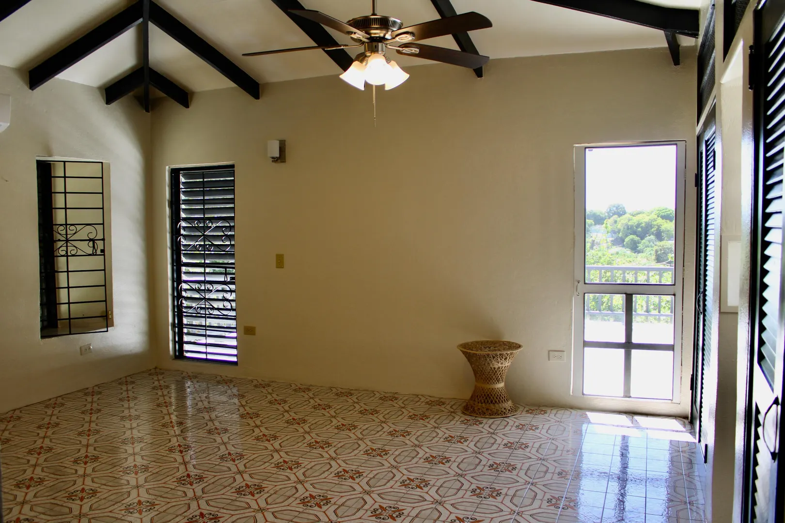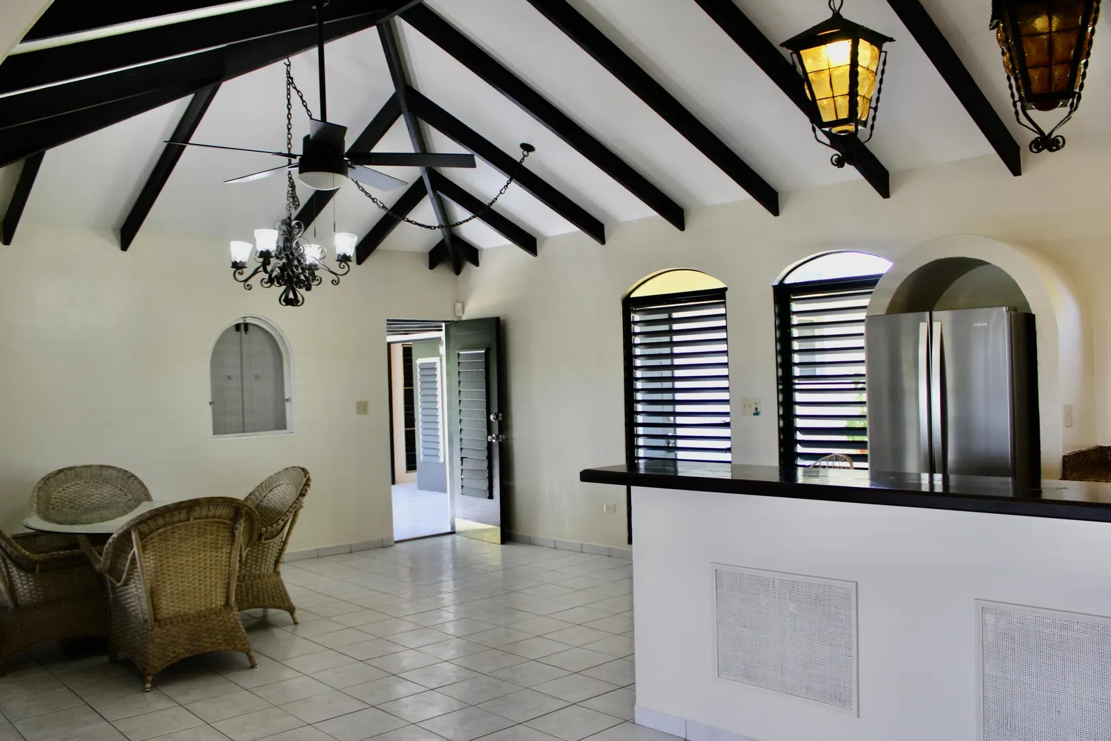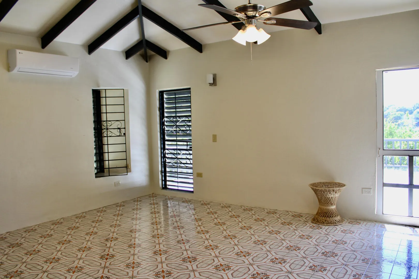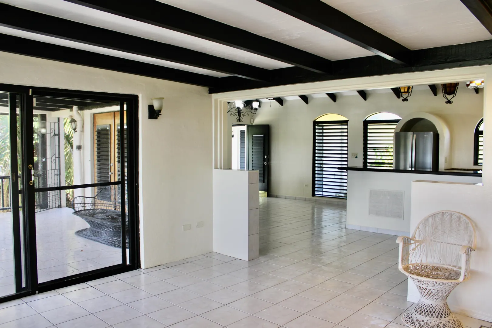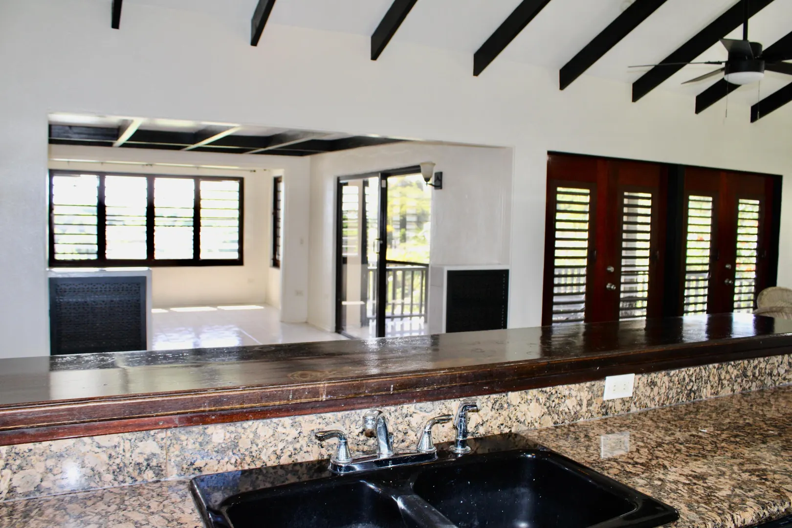 Spacious 3 bedroom/3 bath modern home in Queens Quarter offers brightly lit air-conditioned bedrooms w/ en suite baths. Two bedrooms w/ en suite baths are in the main wing w/a convenient en suite in-law bedroom/bath off the dining room. The in-law suite is easily accessed via a separate entry or the main wing & has a covered private balcony. Super kitchen w/granite counters, updated fresh bathrooms, & on-demand generator make this mid-century beauty modern. A utility room Includes gas dryer/washer. A full length wraparound gallery flanks the living room, dining room & primary bedroom suite. Another great feature is the dry sauna in the primary bath. If you're looking for great outdoor space, a desirable mid-island neighborhood & a nice big house, this is it.