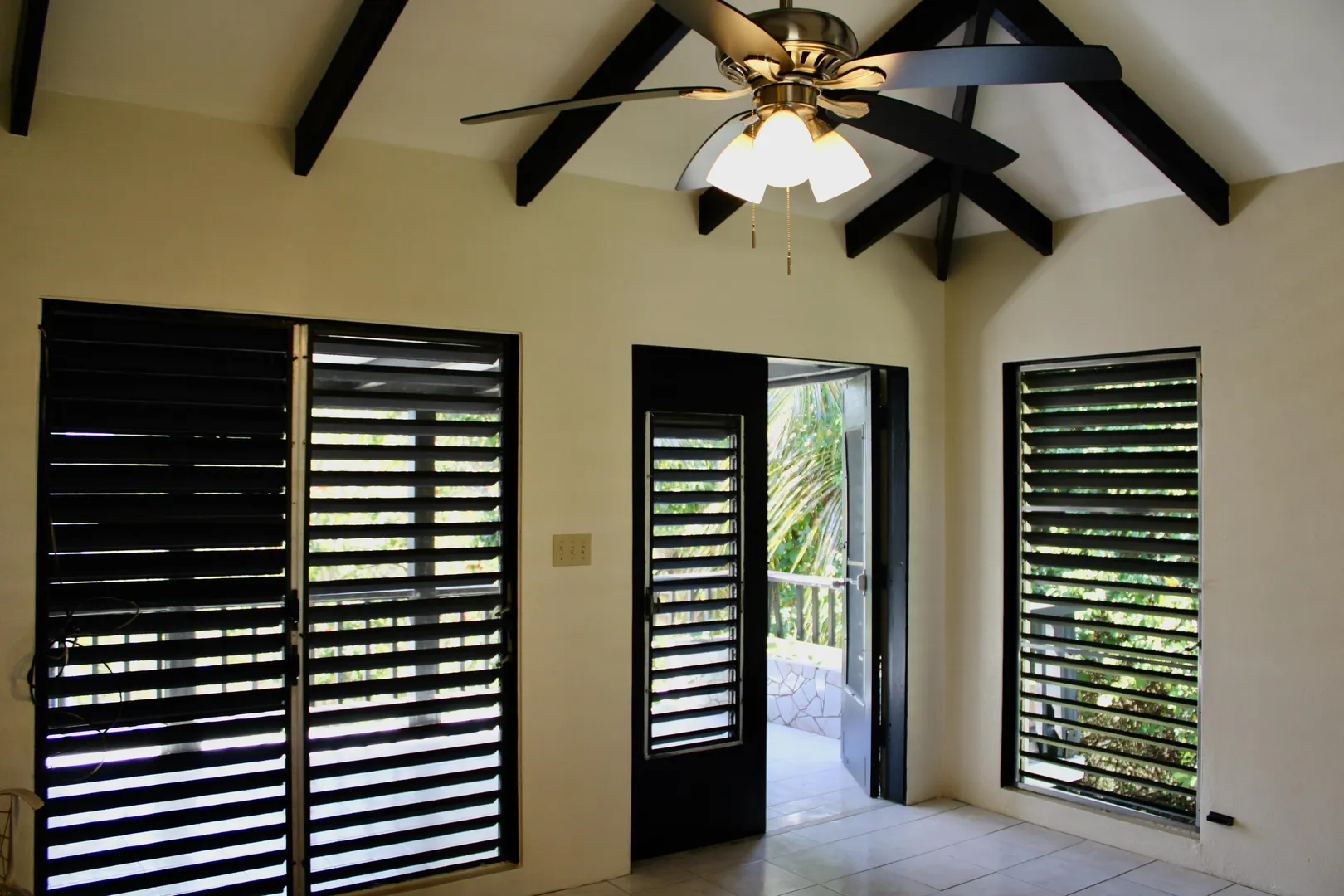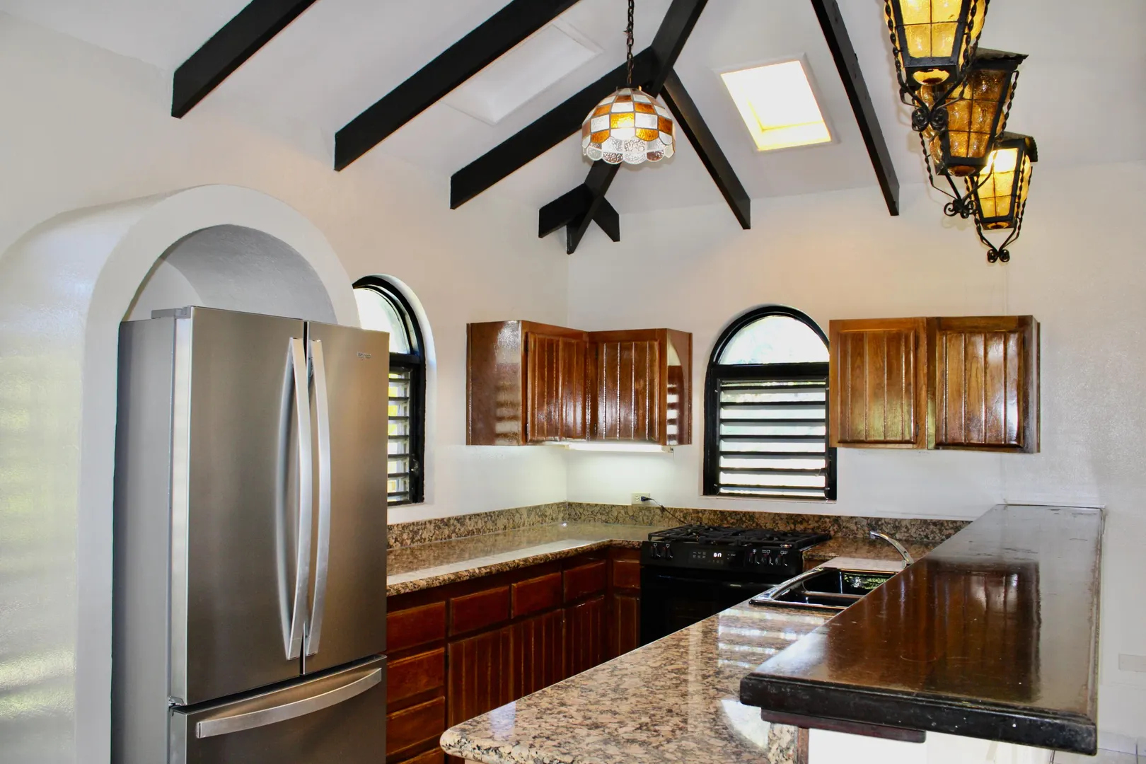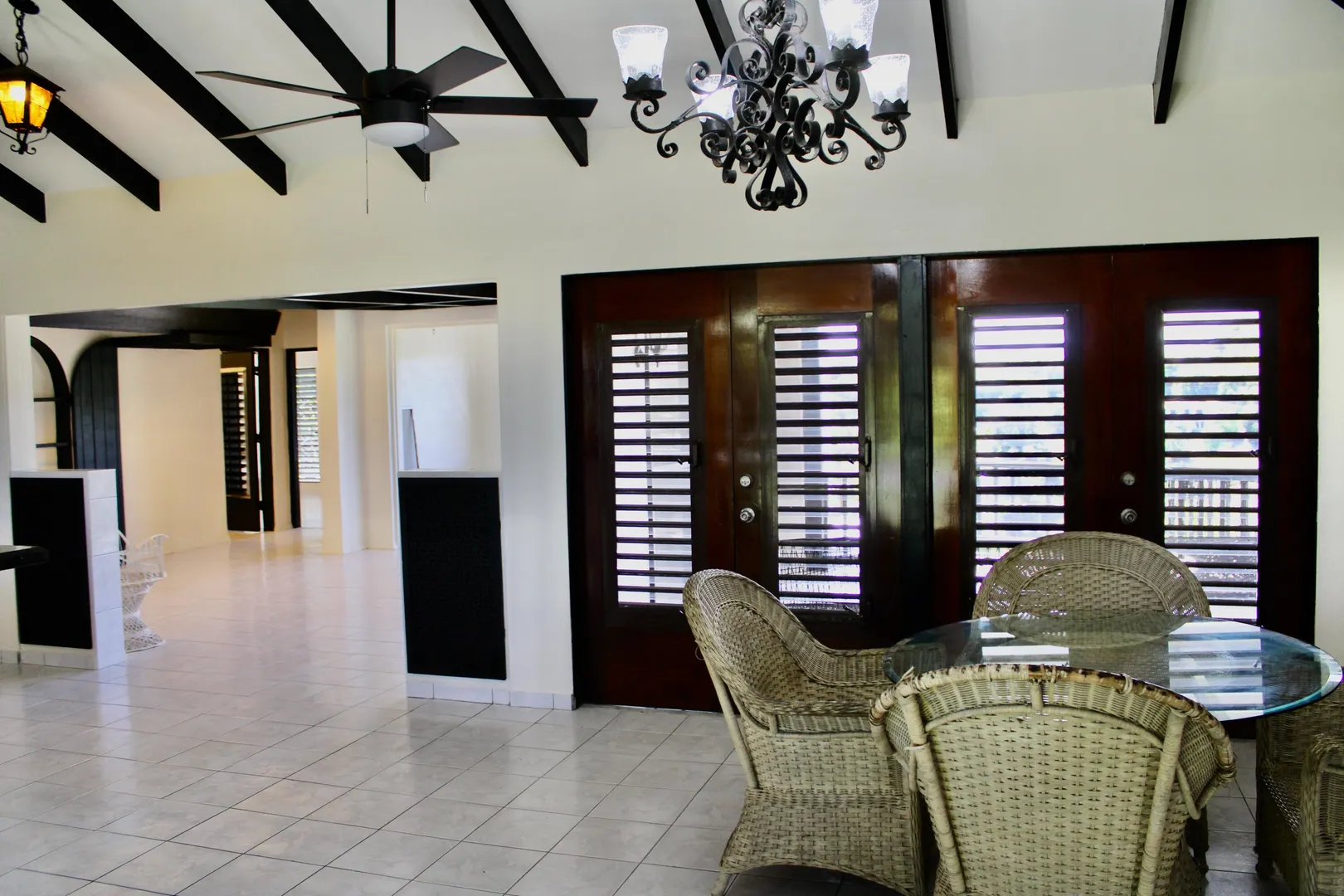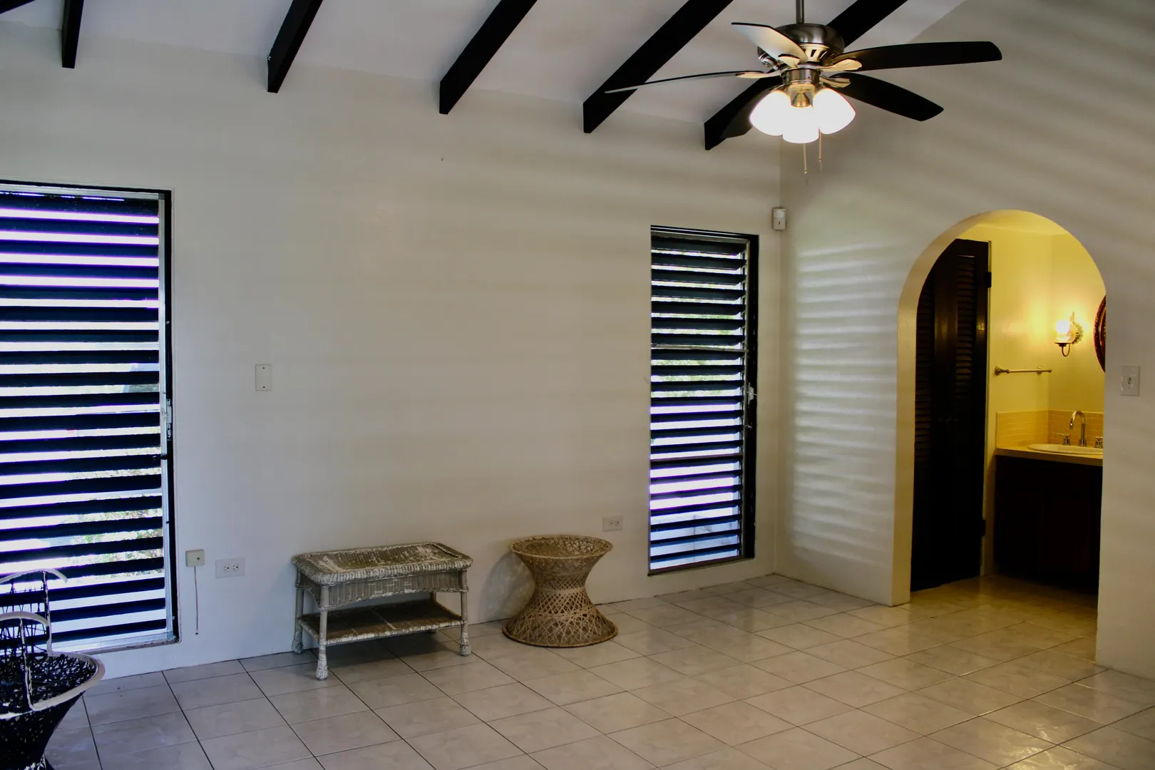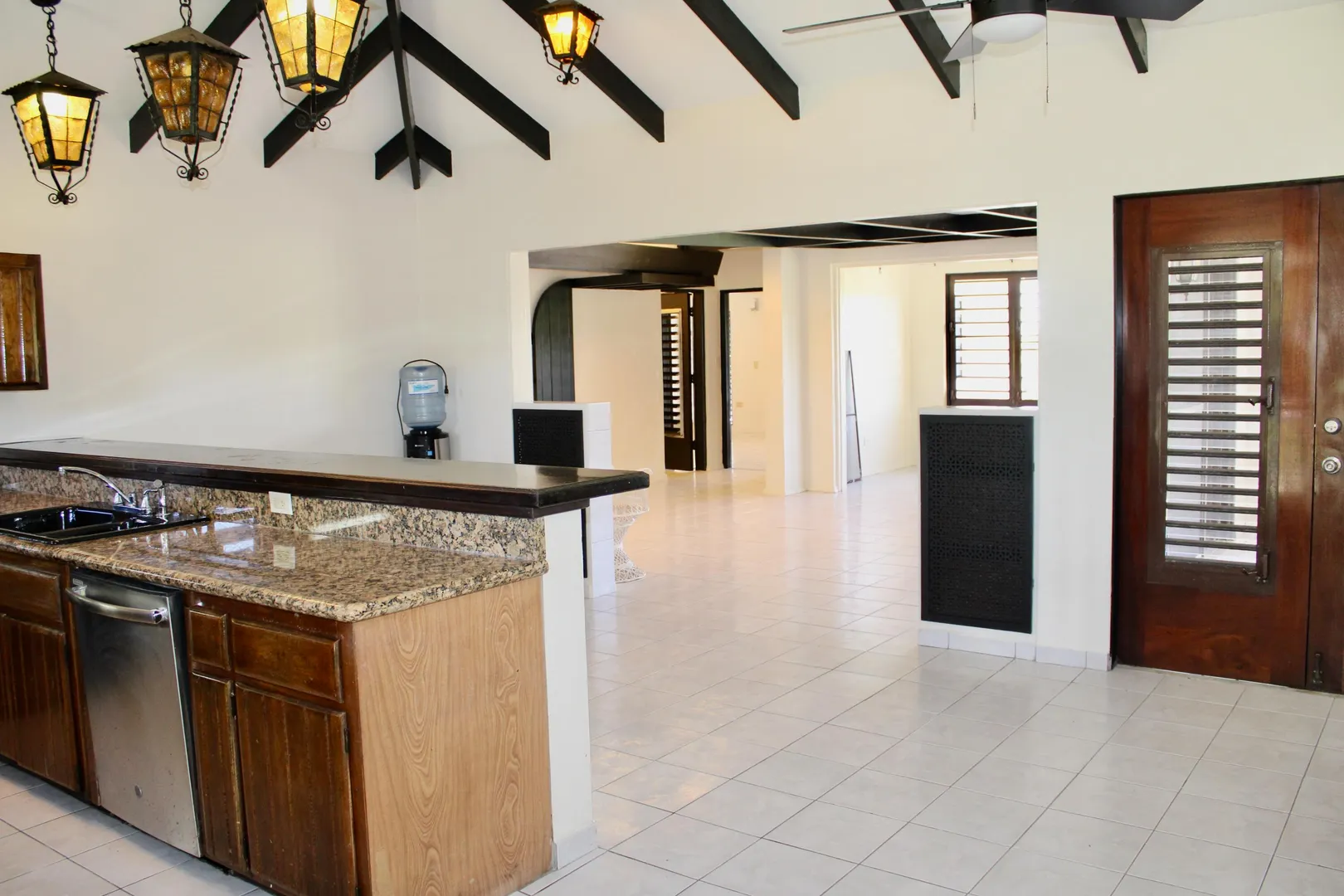 Spacious 3 bedroom/3 bath modern home in Queens Quarter offers brightly lit air-conditioned bedrooms w/ en suite baths. Two bedrooms w/ en suite baths are in the main wing w/a convenient en suite in-law bedroom/bath off the dining room. The in-law suite is easily accessed via a separate entry or the main wing & has a covered private balcony. Super kitchen w/granite counters, updated fresh bathrooms, & on-demand generator make this mid-century beauty modern. A utility room Includes gas dryer/washer. A full length wraparound gallery flanks the living room, dining room & primary bedroom suite. Another great feature is the dry sauna in the primary bath. If you're looking for great outdoor space, a desirable mid-island neighborhood & a nice big house, this is it.