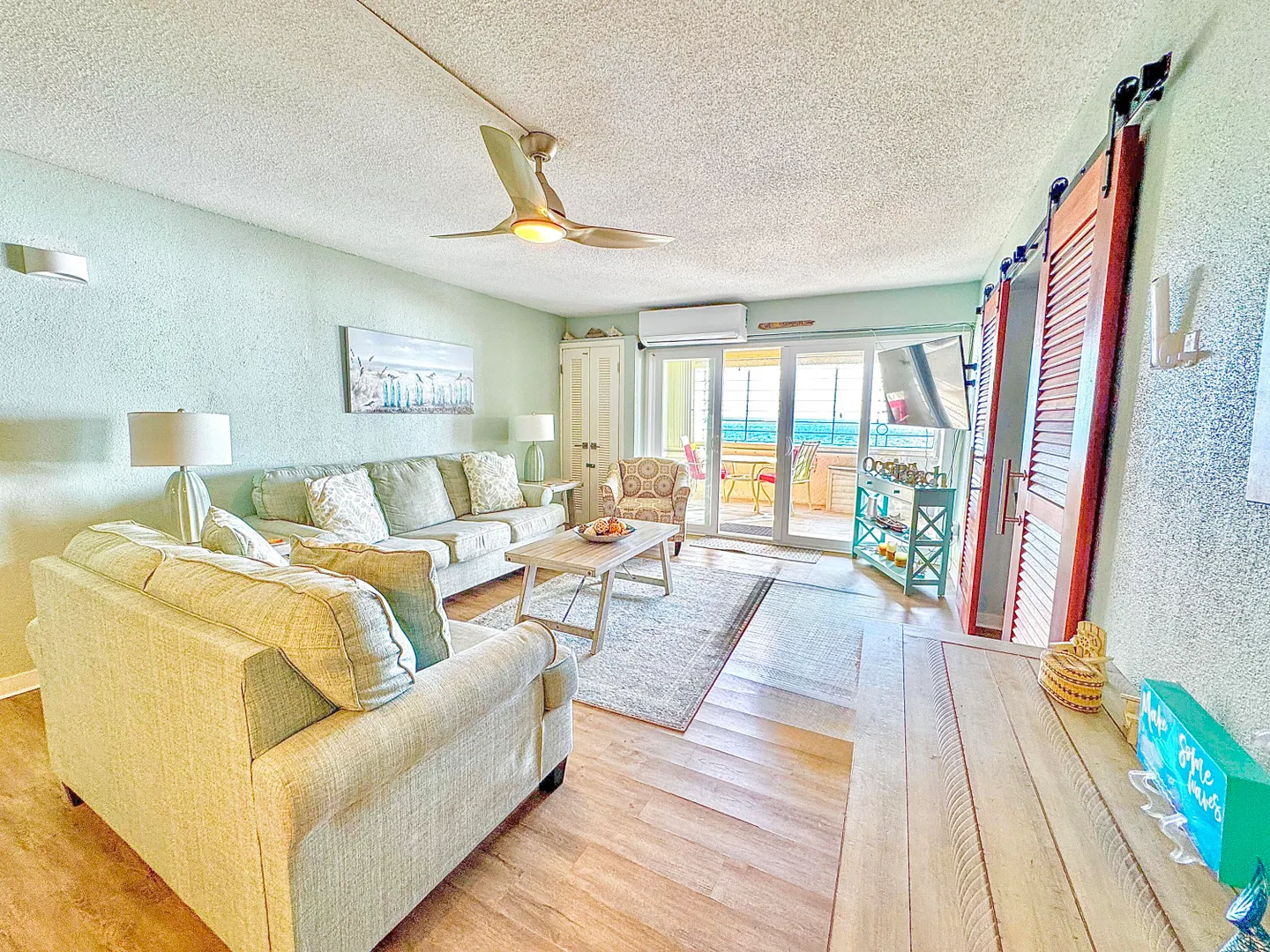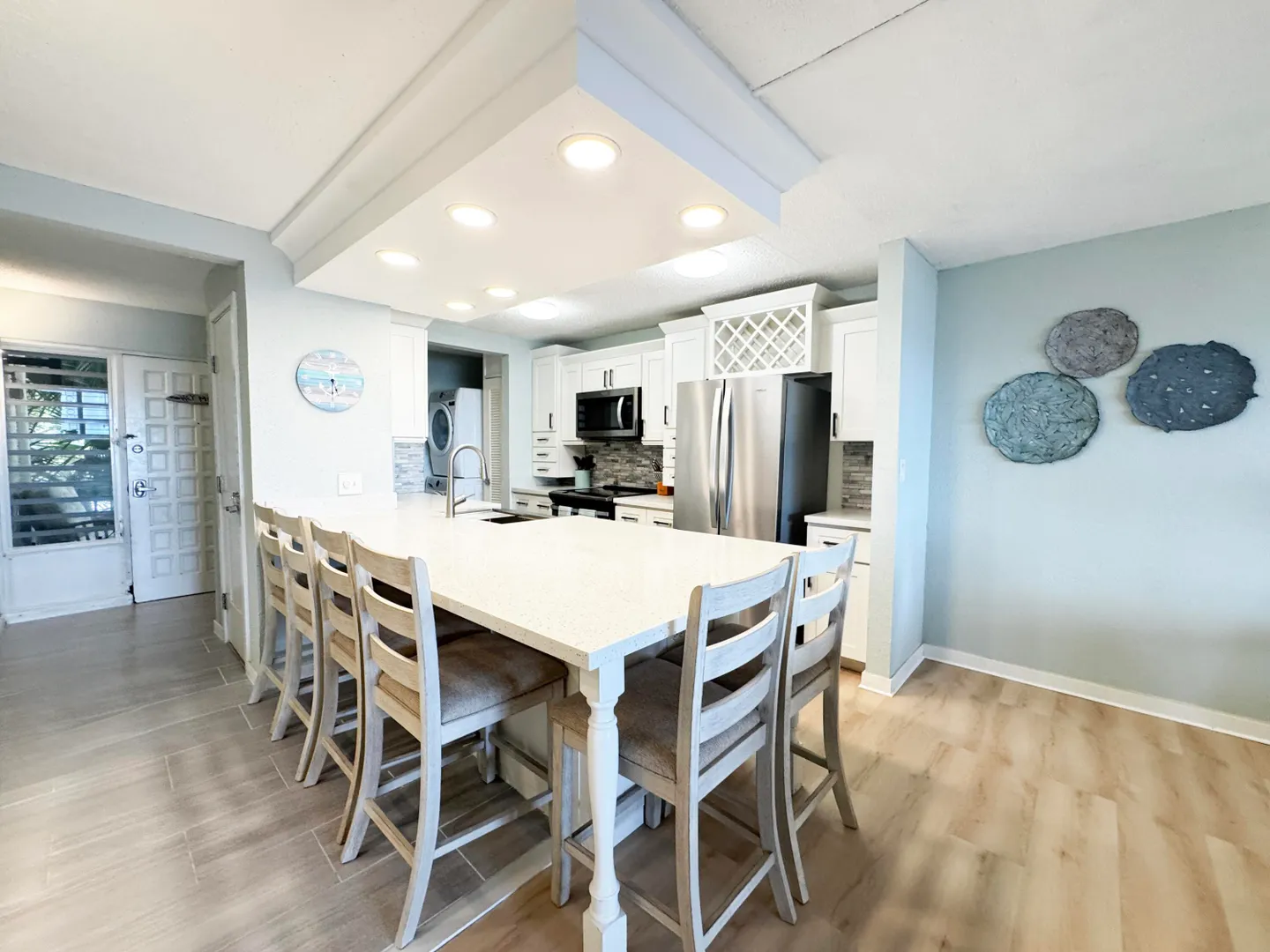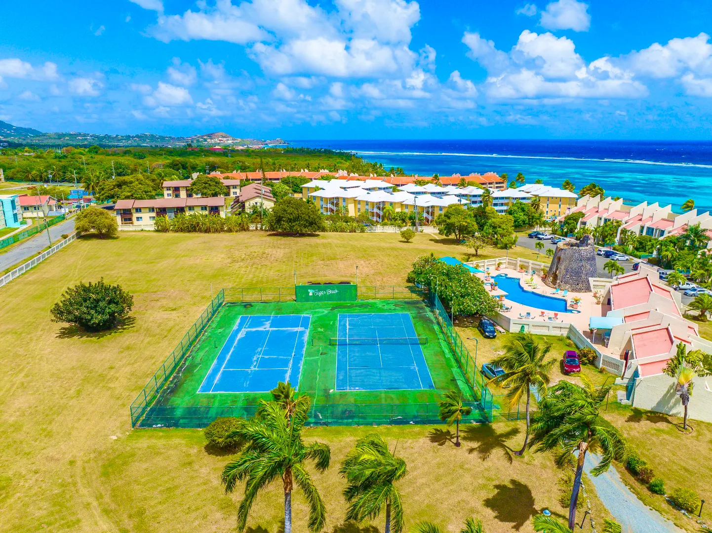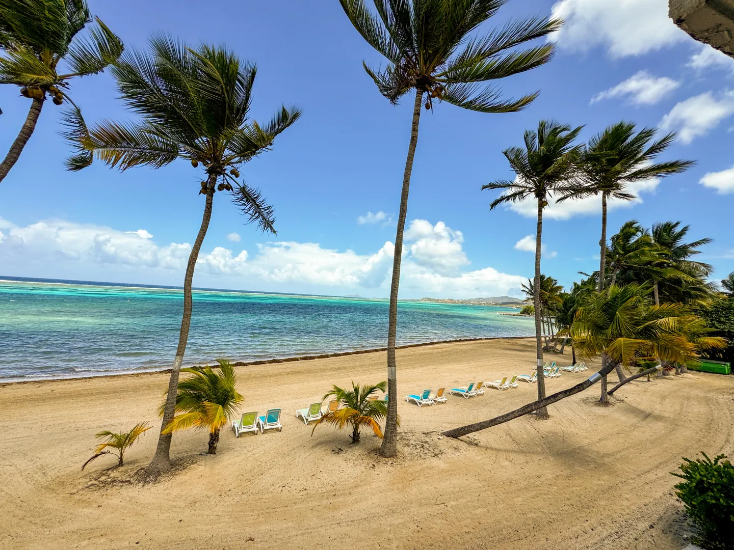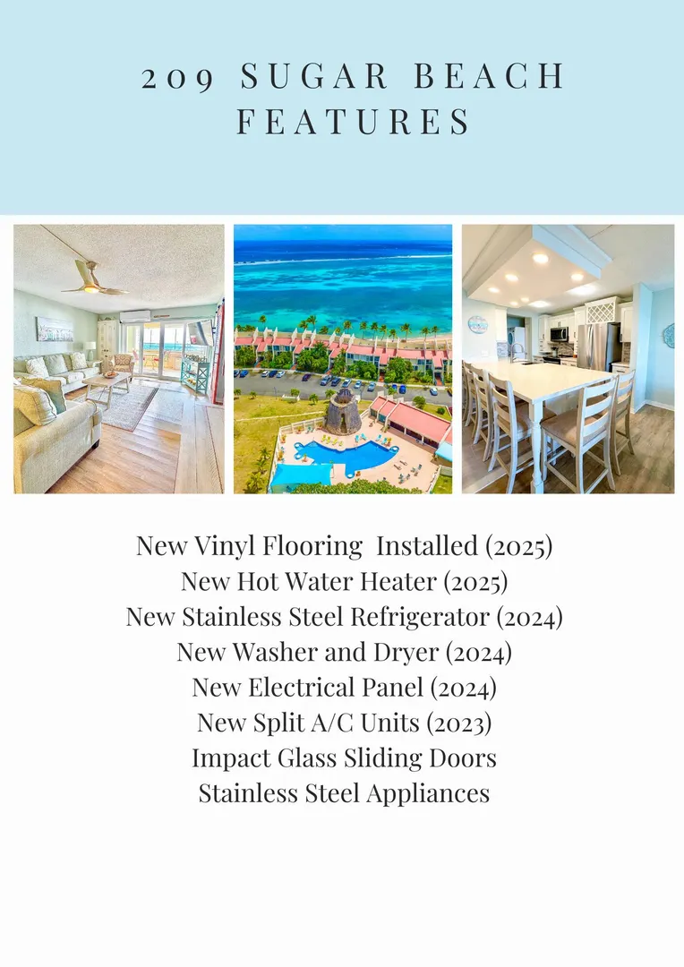 Enjoy fantastic views of Buck Island and the Caribbean Sea from this 2 bedroom 2 bathroom second floor unit. With an updated custom kitchen and modern bathrooms you will feel right at home. Enjoy stunning sunrises and cool Caribbean breezes on the spacious private gallery. This turnkey unit features NEW floors, impact glass sliders, stainless steel appliances, including a new refrigerator, new A/Cs throughout, new full size washer and dryer, and a brand new hot water heater. Relax on the well maintained white sandy beach, or by the pristine pool designed around a historic sugar mill. The complex also has two full size tennis courts. Sugar Beach Condos are centrally located and just a short drive to historic Christiansted where you can enjoy waterfront dining, shopping and daily excursions
