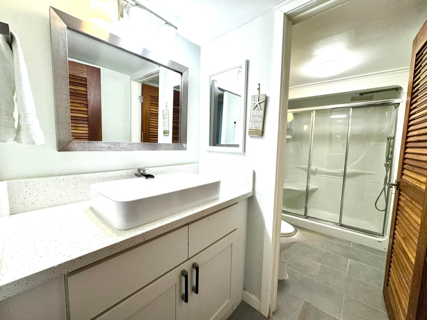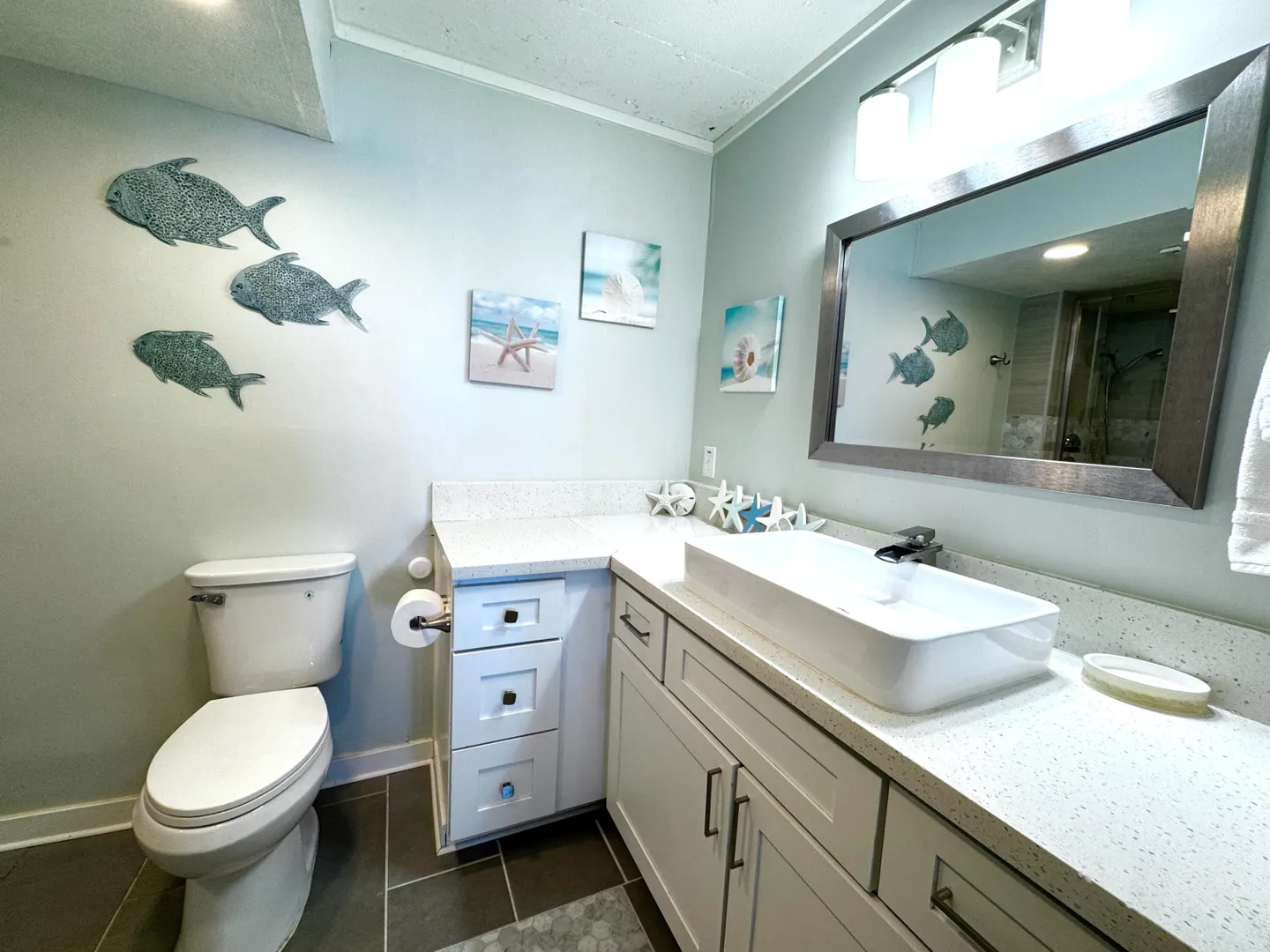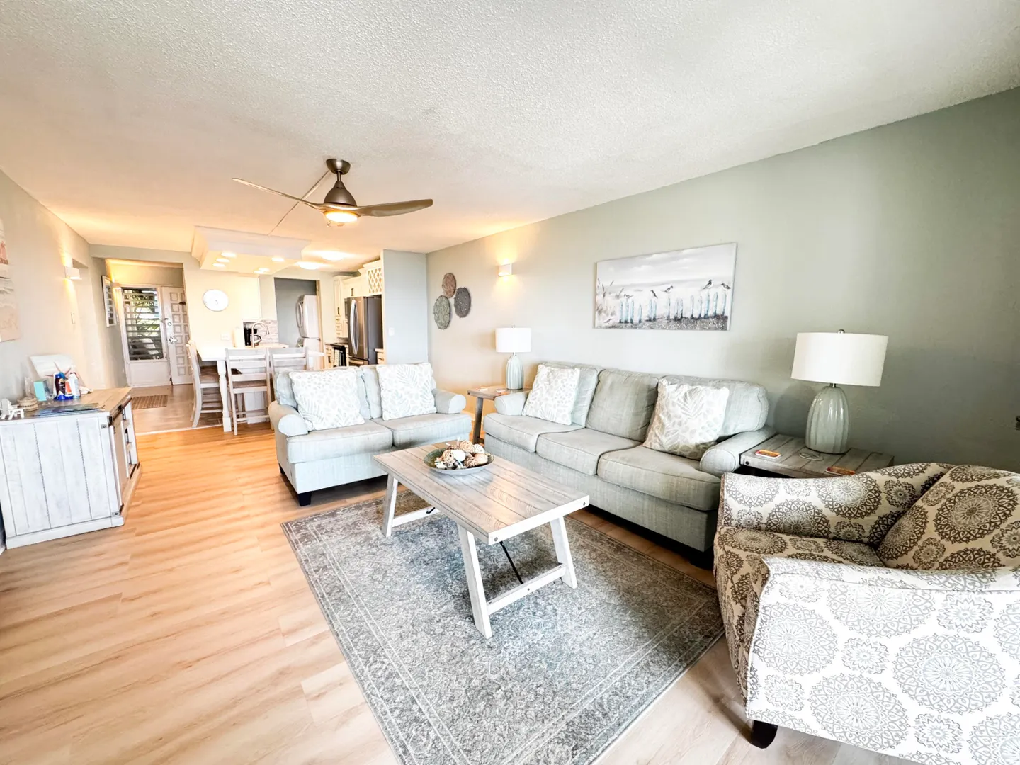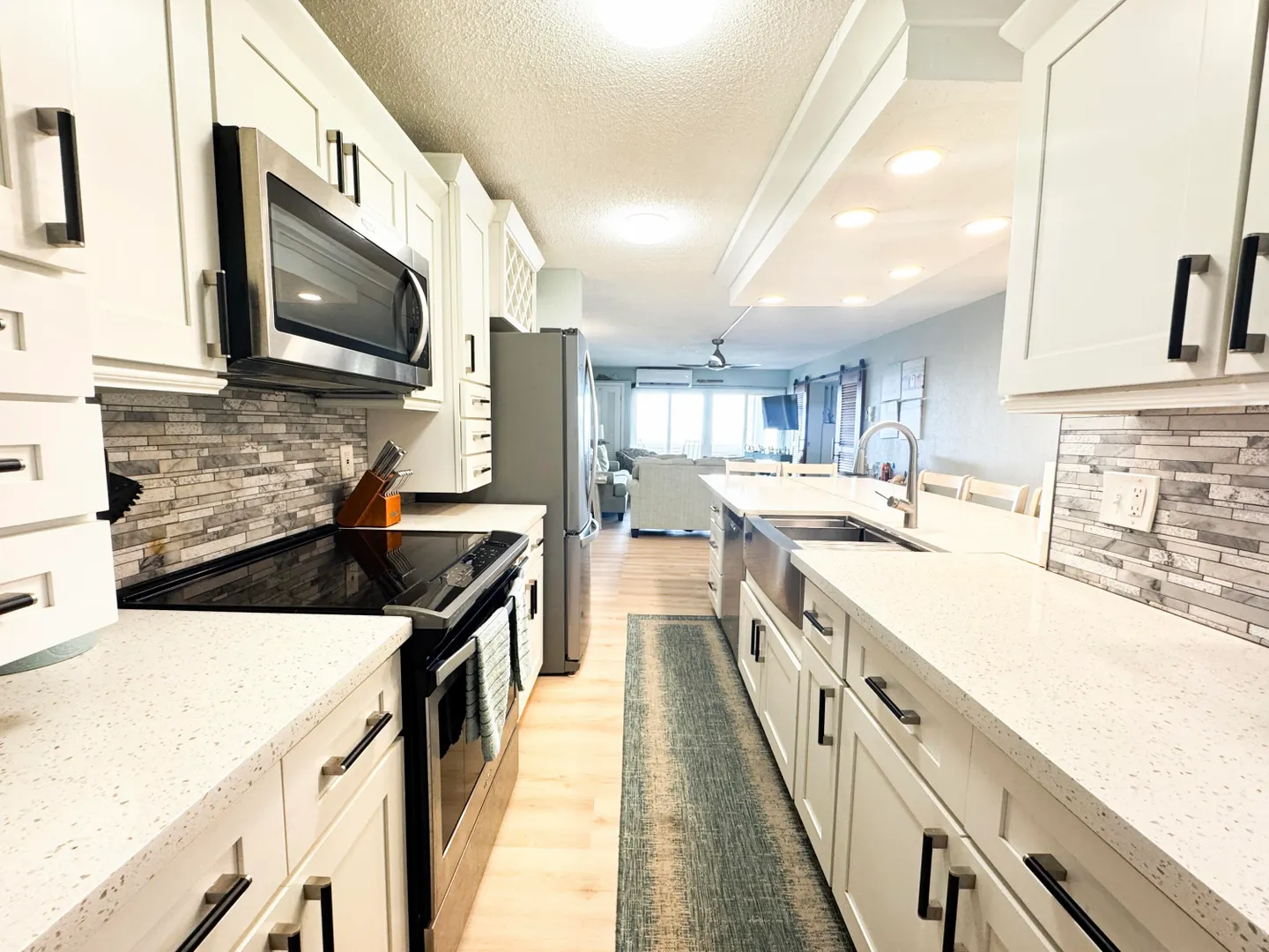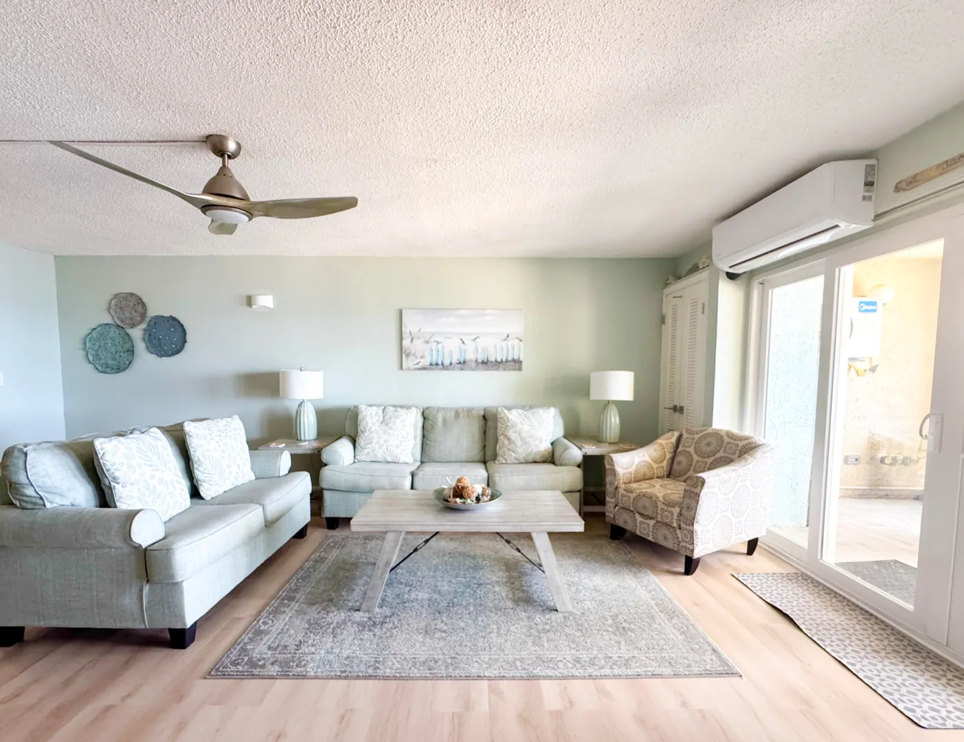 Enjoy fantastic views of Buck Island and the Caribbean Sea from this 2 bedroom 2 bathroom second floor unit. With an updated custom kitchen and modern bathrooms you will feel right at home. Enjoy stunning sunrises and cool Caribbean breezes on the spacious private gallery. This turnkey unit features NEW floors, impact glass sliders, stainless steel appliances, including a new refrigerator, new A/Cs throughout, new full size washer and dryer, and a brand new hot water heater. Relax on the well maintained white sandy beach, or by the pristine pool designed around a historic sugar mill. The complex also has two full size tennis courts. Sugar Beach Condos are centrally located and just a short drive to historic Christiansted where you can enjoy waterfront dining, shopping and daily excursions