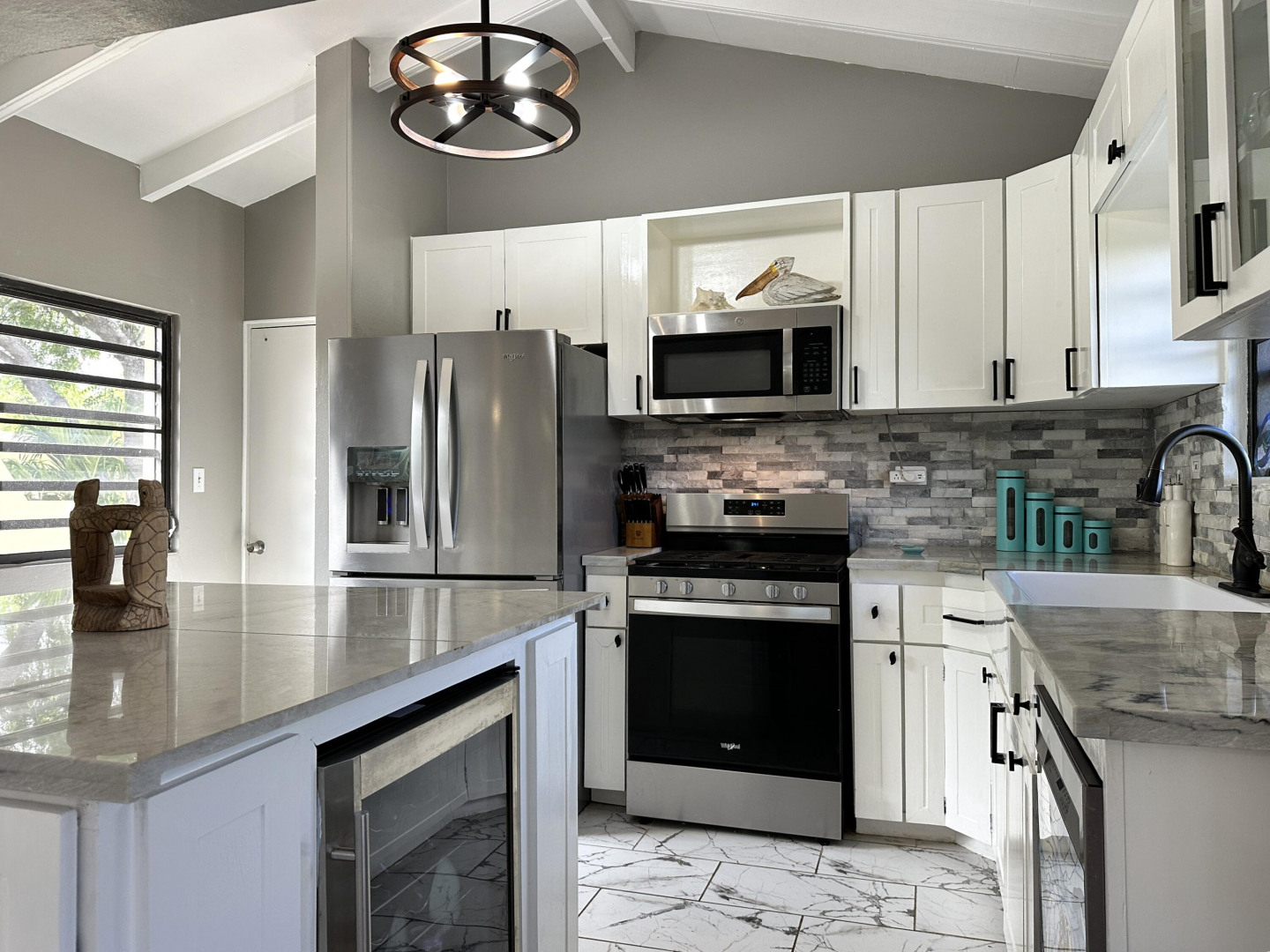 SOLAR with batteries and generator! Nicely designed for the joy and comfort of outdoor living, this home sits just blocks from the seashore. Walk to the shore for mesmerizing views, or relax in your private back yard, all in the security of this gated neighborhood. Watch TV outdoors from your new hot tub, nap in the hammock, or dine al fresco by the fireplace. This lovely home has a spacious floor plan with a large primary suite upstairs and three additional bedrooms on the main floor. The recently remodeled kitchen comes complete with new stainless steel appliances including dishwasher and wine refrigerator. Furnishings included for an easy move. Garage. Partially fenced with a large patio, mature fruit trees and a workshop. Convenient to amazing West End beaches and the airport.2019
