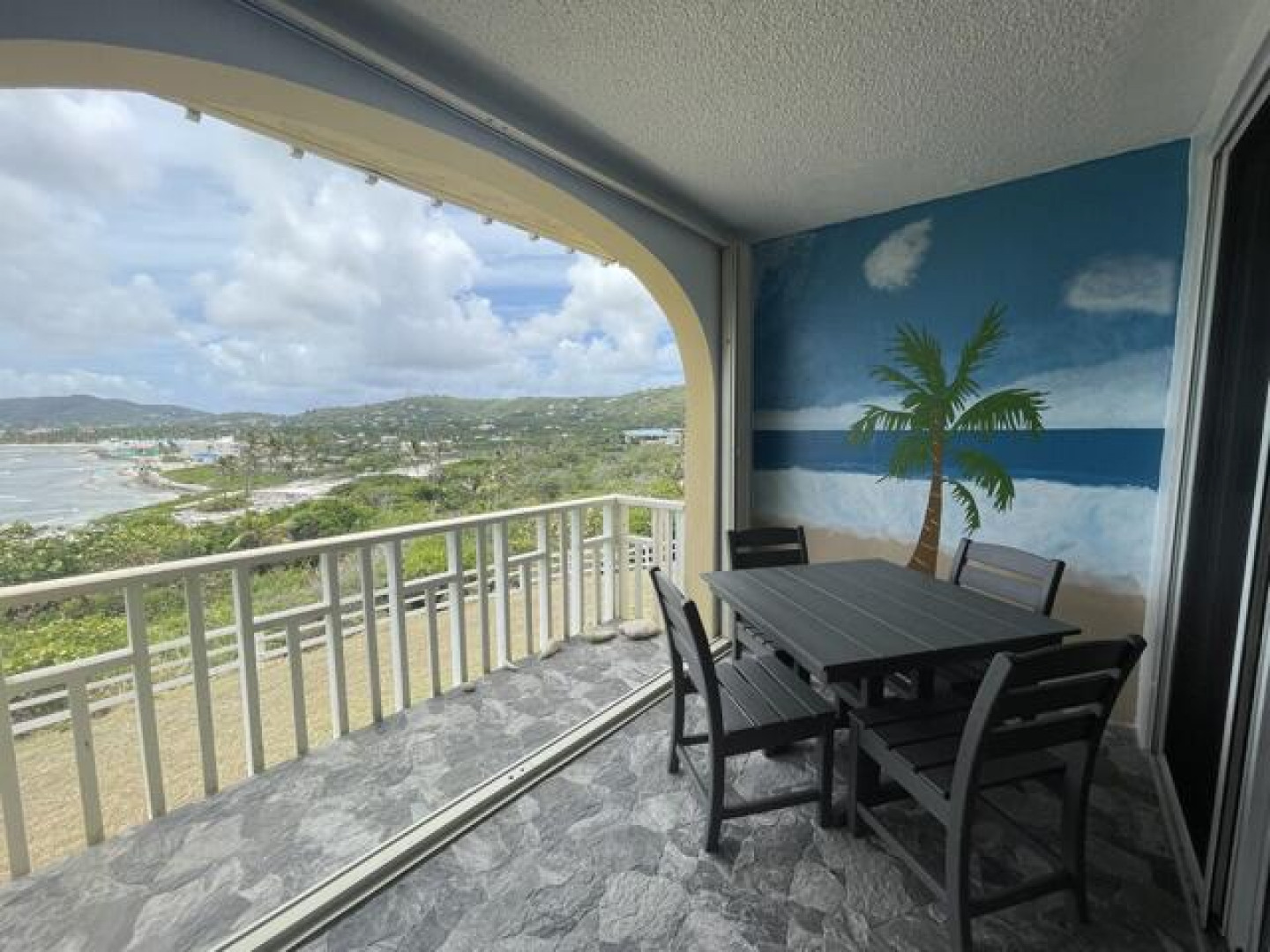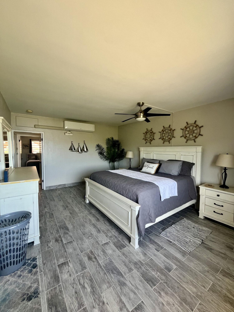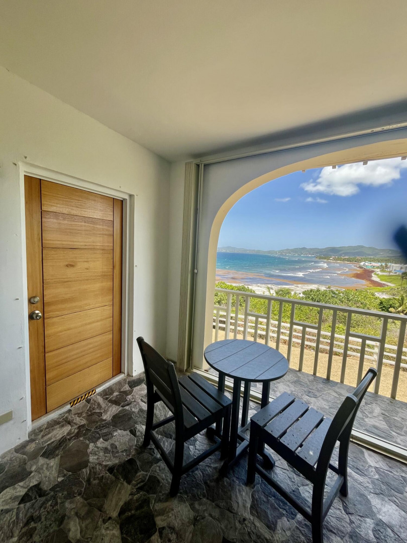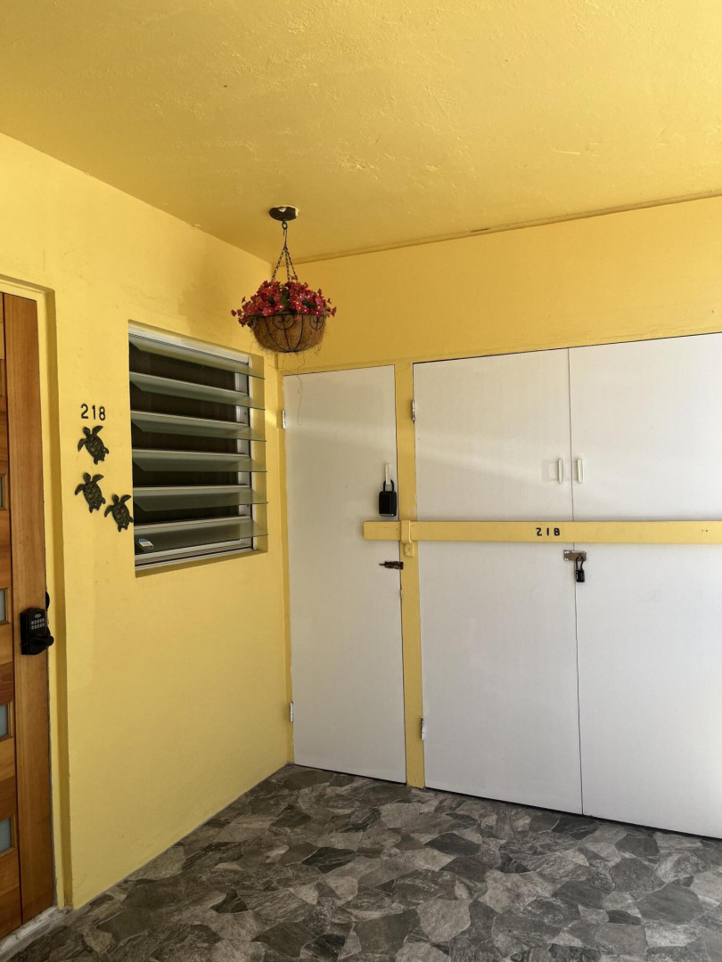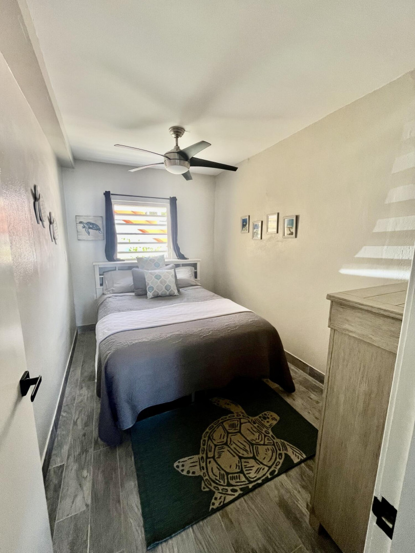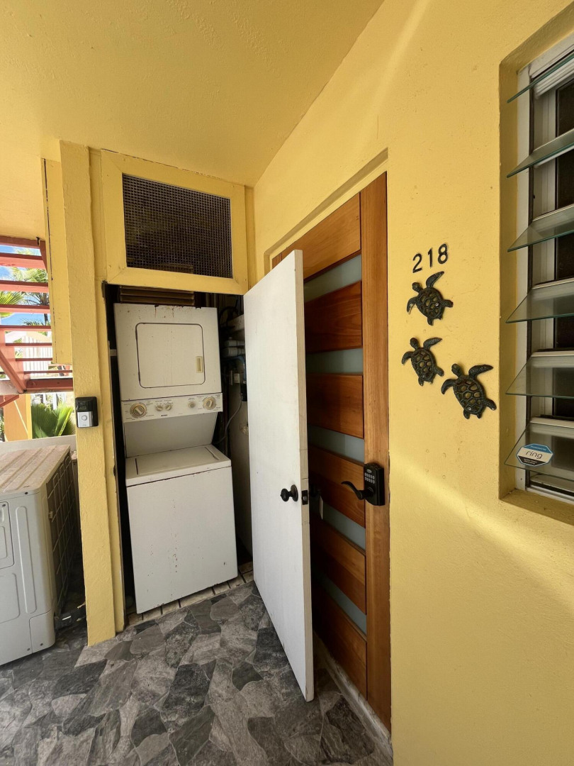 Fully furnished, immaculate, newly renovated, luxurious 2 bedroom condo located in a gated-pool community, offers the perfect blend of comfort, convenience & breathtaking ocean views. This successful VRBO rental could continue to produce income or serve as a perfect primary residence.Situated at street level, this condo provides easy access without any stairs. Upon entering, you'll be captivated by beautiful views from galley patio. Whether enjoying morning coffee or unwinding with a glass of wine, this serene setting is the perfect backdrop for relaxation. The condo features a fully equipped kitchen, with a sleek, modern design and updated appliances.2 comfortable bedrooms allow ample space to relax. The master offers breathtaking views of Buck Island from its picturesque windowwith a separate bedroom entrance. Enjoy the spaciousness and privacy of the newly renovated bathroom, along with a custom lit dressing room vanity and an additional sink.