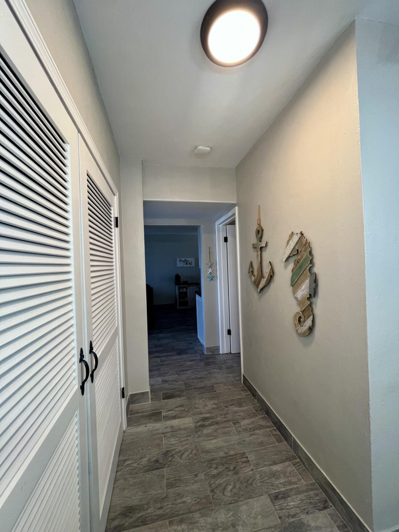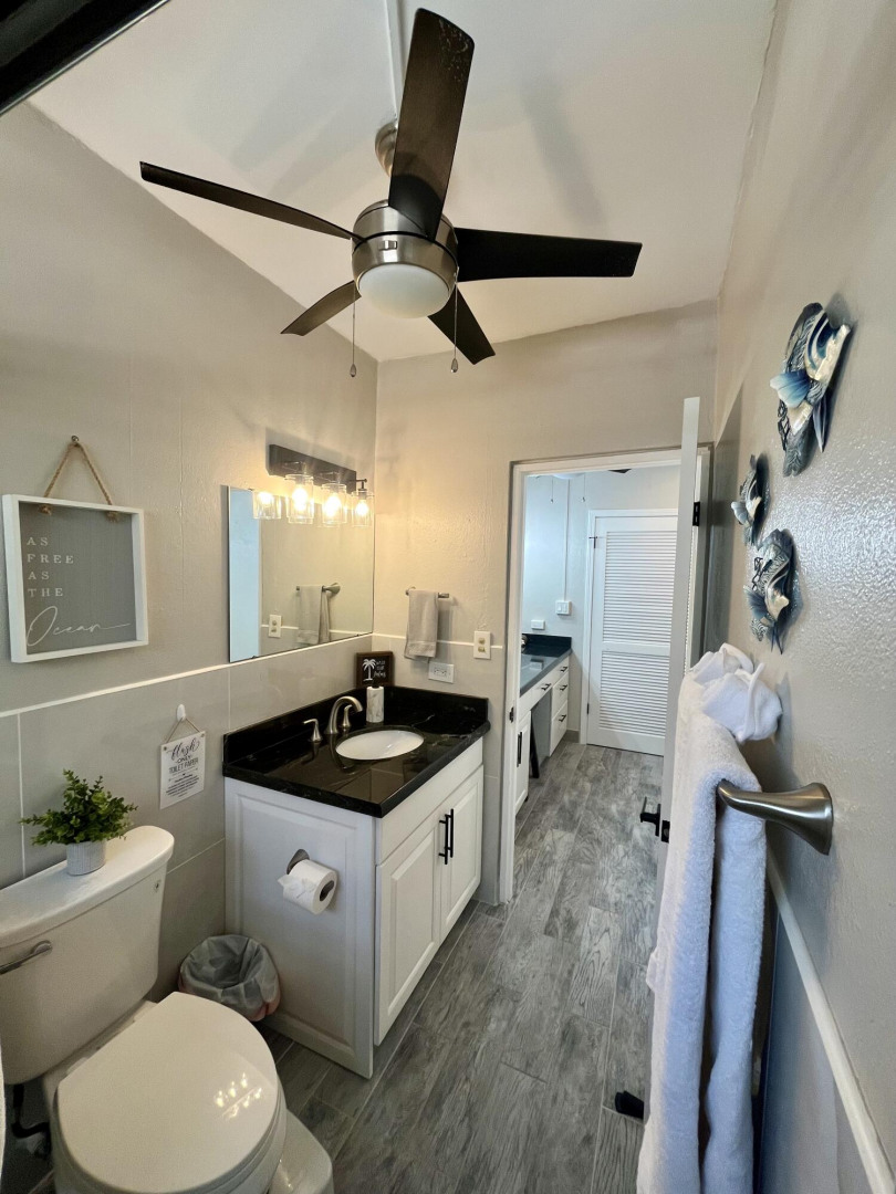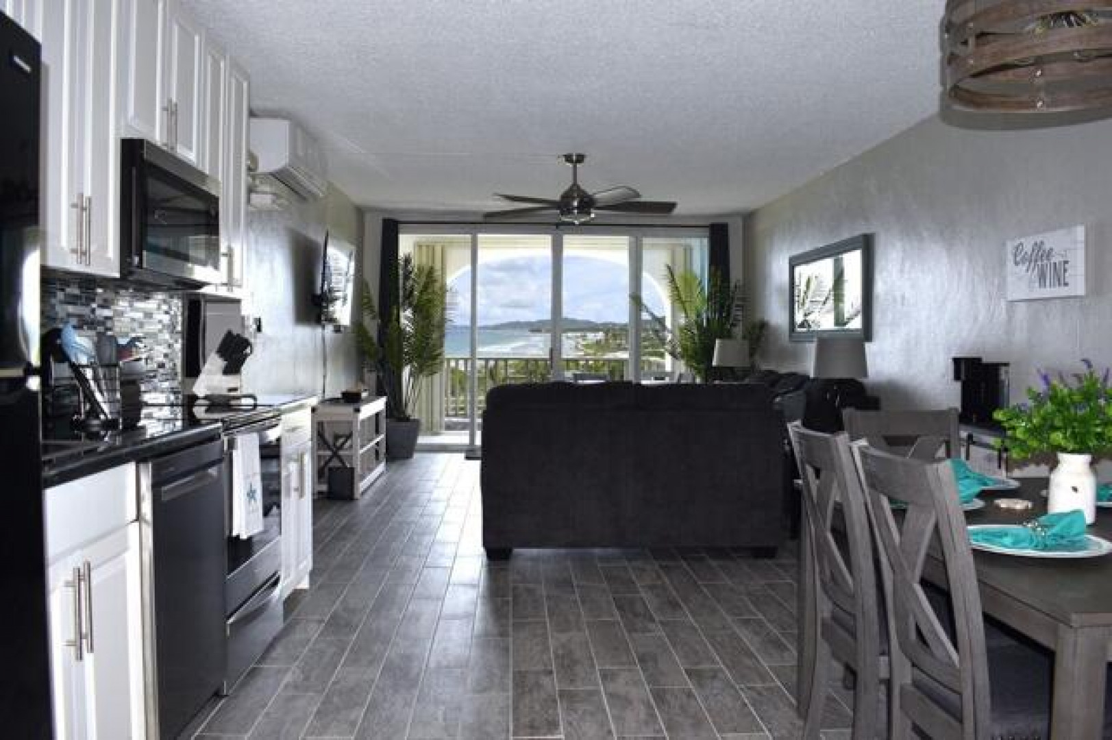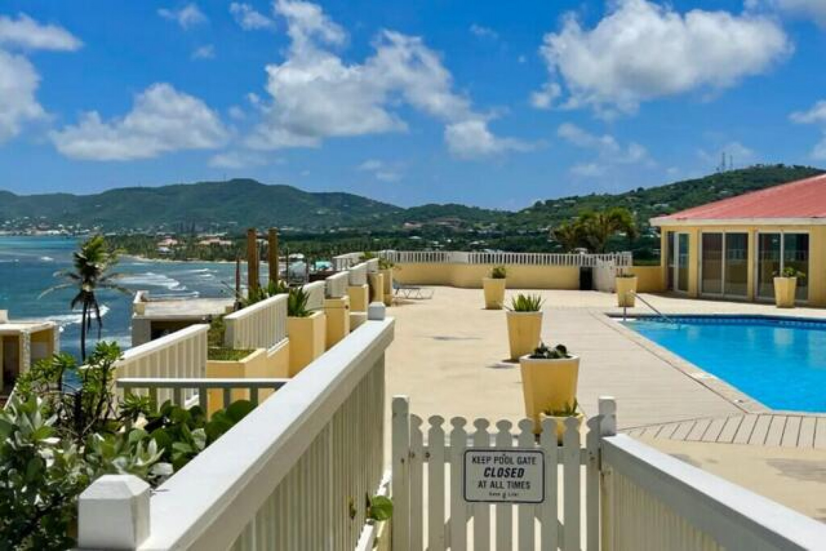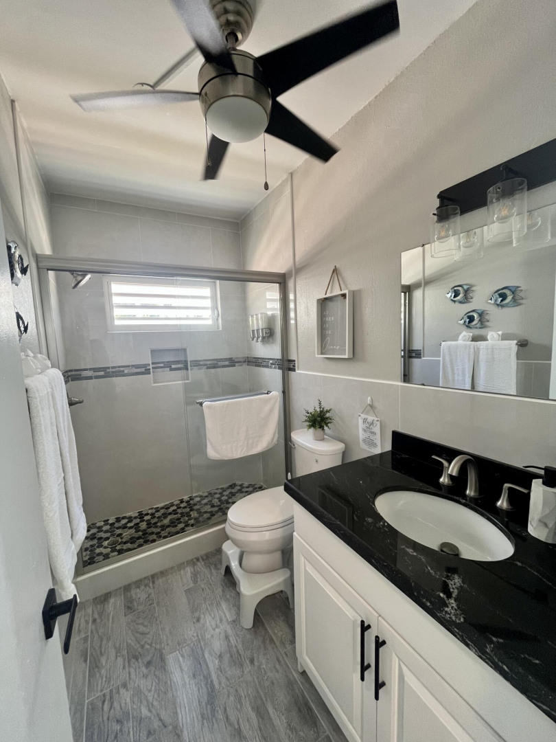 Fully furnished, immaculate, newly renovated, luxurious 2 bedroom condo located in a gated-pool community, offers the perfect blend of comfort, convenience & breathtaking ocean views. This successful VRBO rental could continue to produce income or serve as a perfect primary residence.Situated at street level, this condo provides easy access without any stairs. Upon entering, you'll be captivated by beautiful views from galley patio. Whether enjoying morning coffee or unwinding with a glass of wine, this serene setting is the perfect backdrop for relaxation. The condo features a fully equipped kitchen, with a sleek, modern design and updated appliances.2 comfortable bedrooms allow ample space to relax. The master offers breathtaking views of Buck Island from its picturesque windowwith a separate bedroom entrance. Enjoy the spaciousness and privacy of the newly renovated bathroom, along with a custom lit dressing room vanity and an additional sink.