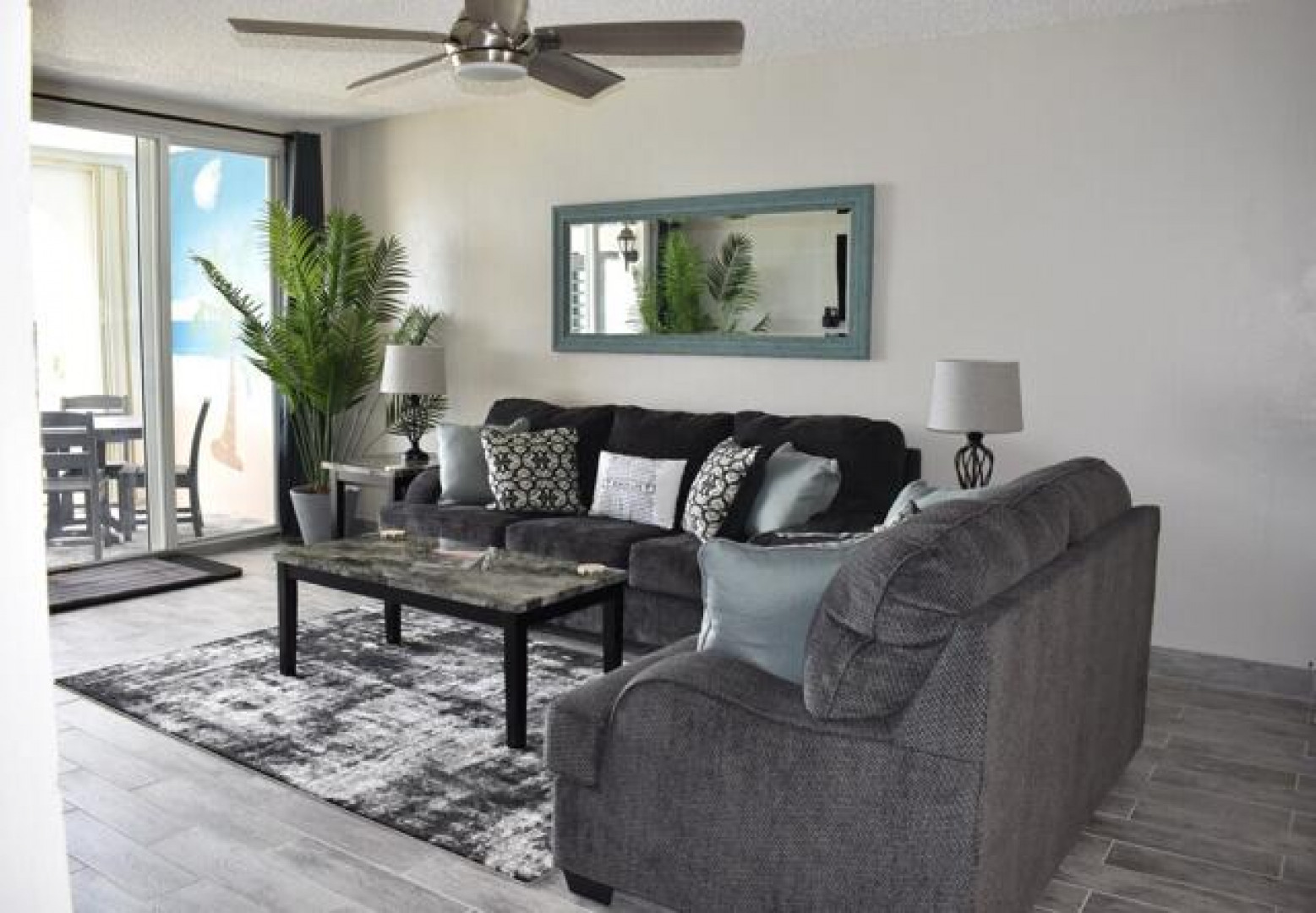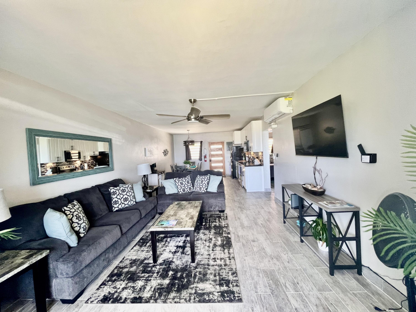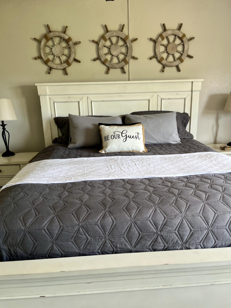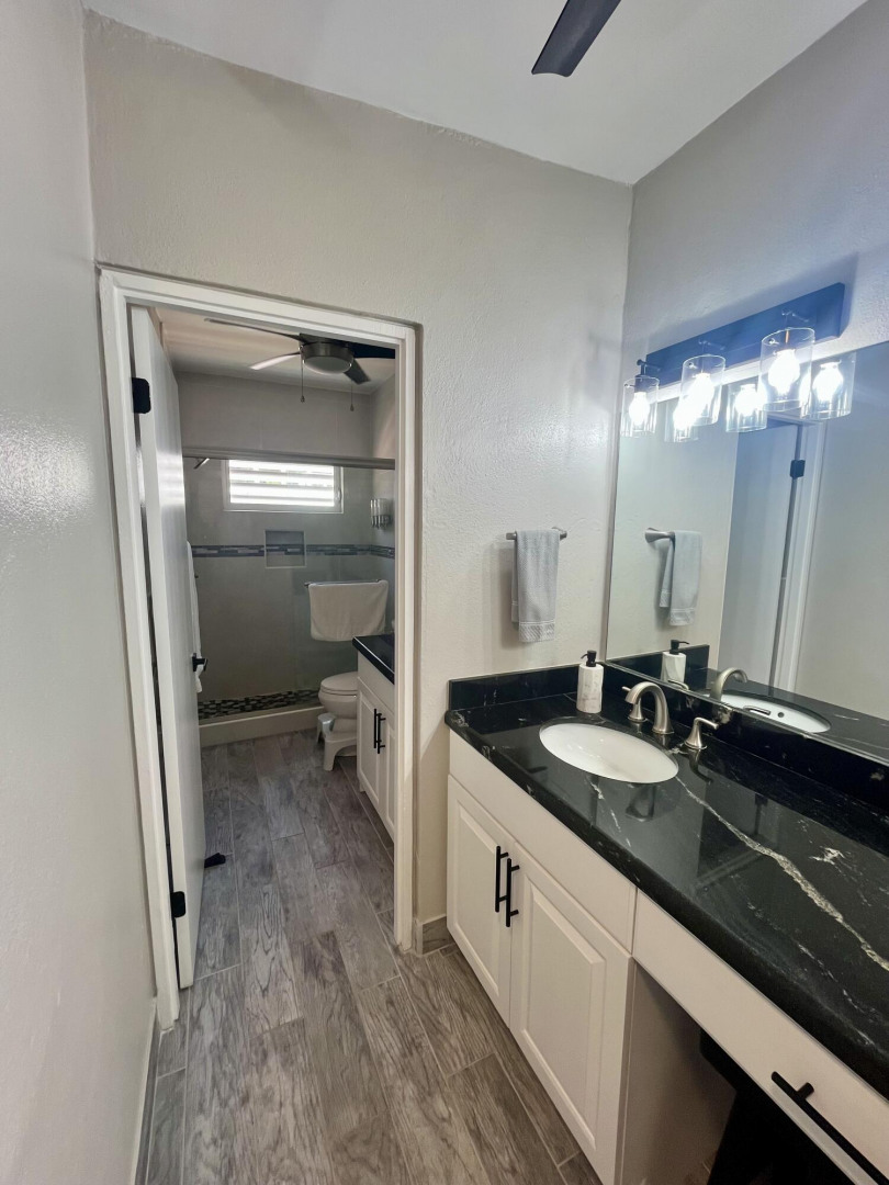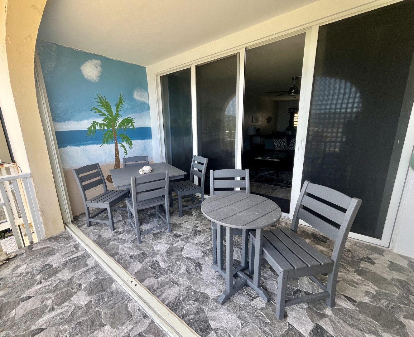 Fully furnished, immaculate, newly renovated, luxurious 2 bedroom condo located in a gated-pool community, offers the perfect blend of comfort, convenience & breathtaking ocean views. This successful VRBO rental could continue to produce income or serve as a perfect primary residence.Situated at street level, this condo provides easy access without any stairs. Upon entering, you'll be captivated by beautiful views from galley patio. Whether enjoying morning coffee or unwinding with a glass of wine, this serene setting is the perfect backdrop for relaxation. The condo features a fully equipped kitchen, with a sleek, modern design and updated appliances.2 comfortable bedrooms allow ample space to relax. The master offers breathtaking views of Buck Island from its picturesque windowwith a separate bedroom entrance. Enjoy the spaciousness and privacy of the newly renovated bathroom, along with a custom lit dressing room vanity and an additional sink.