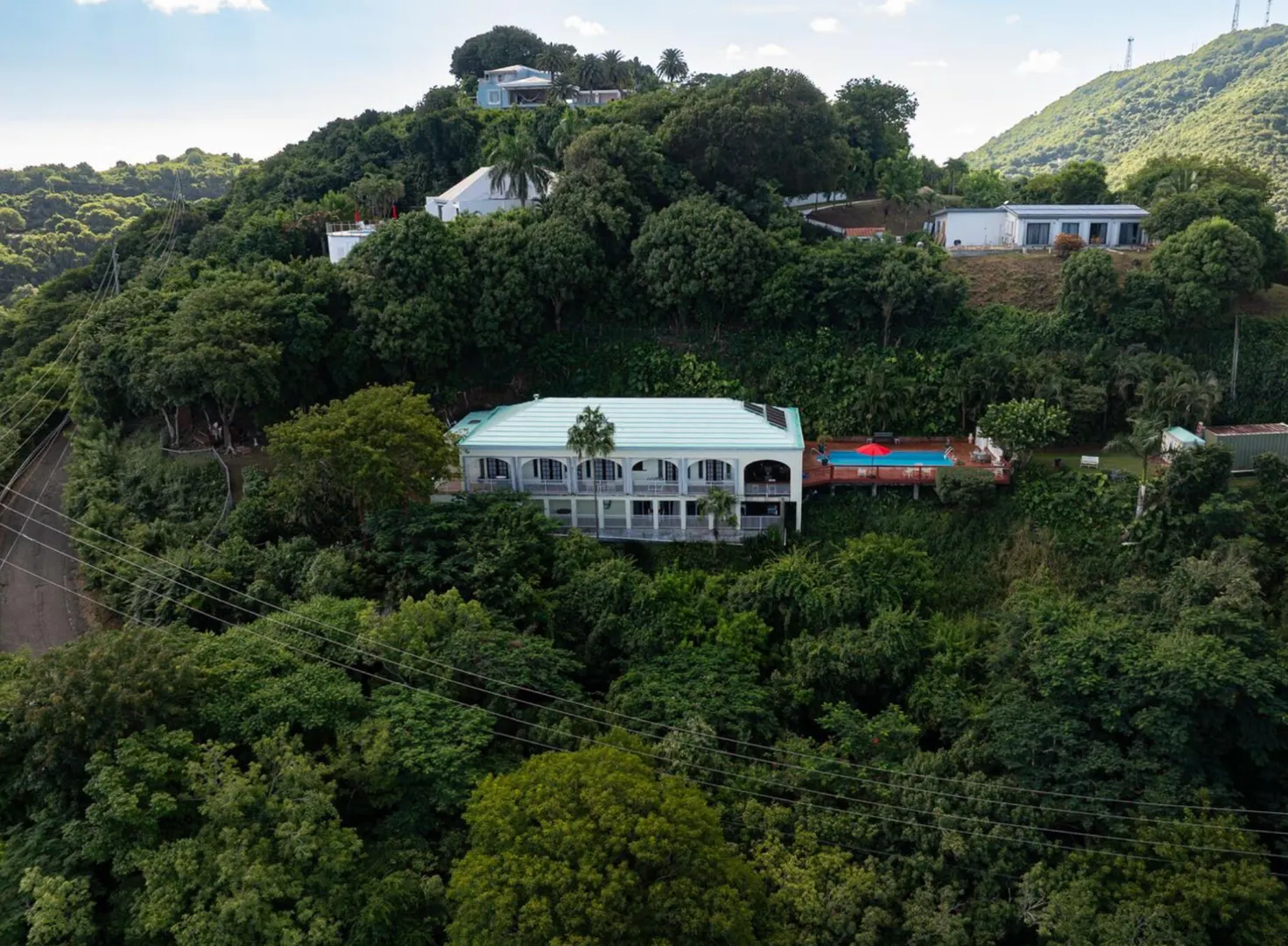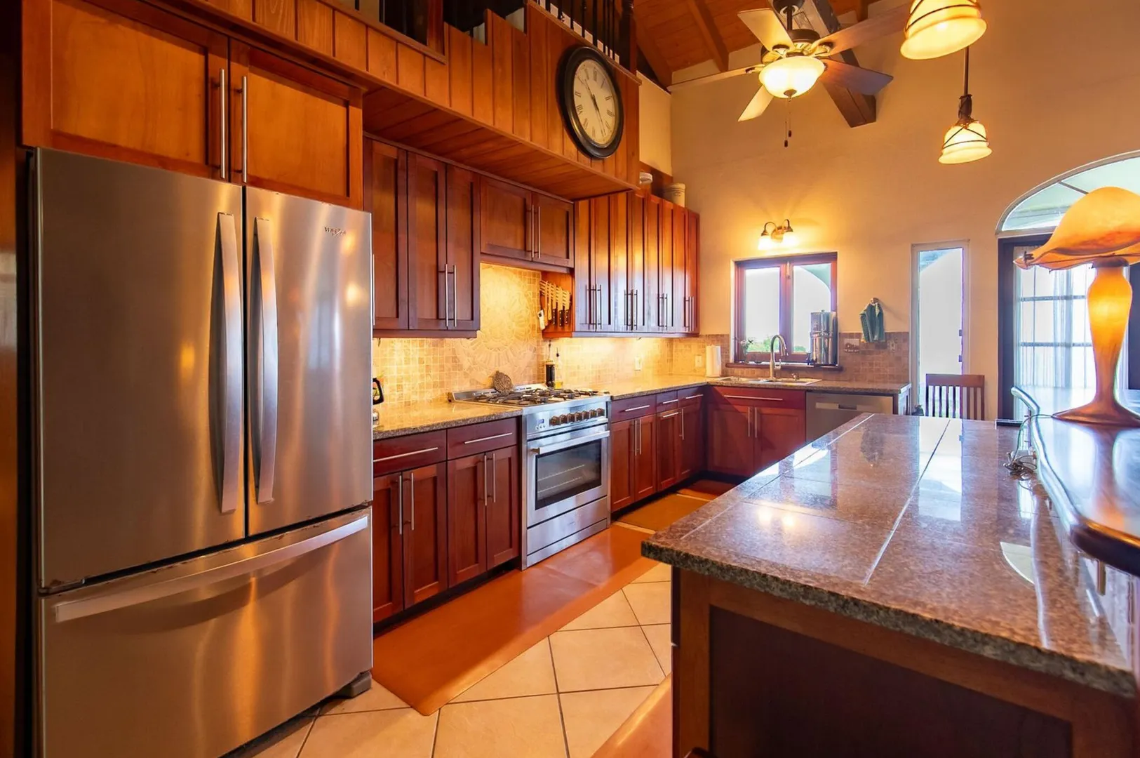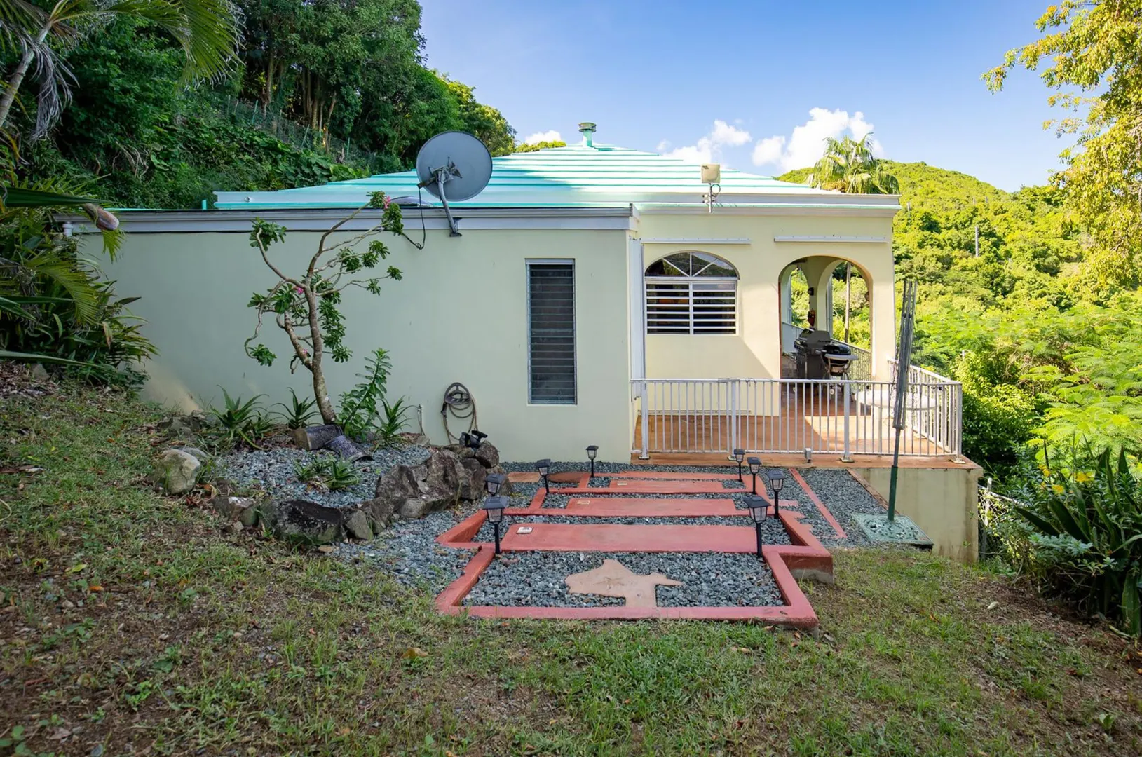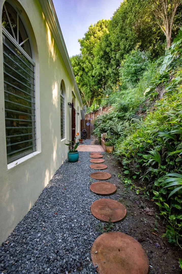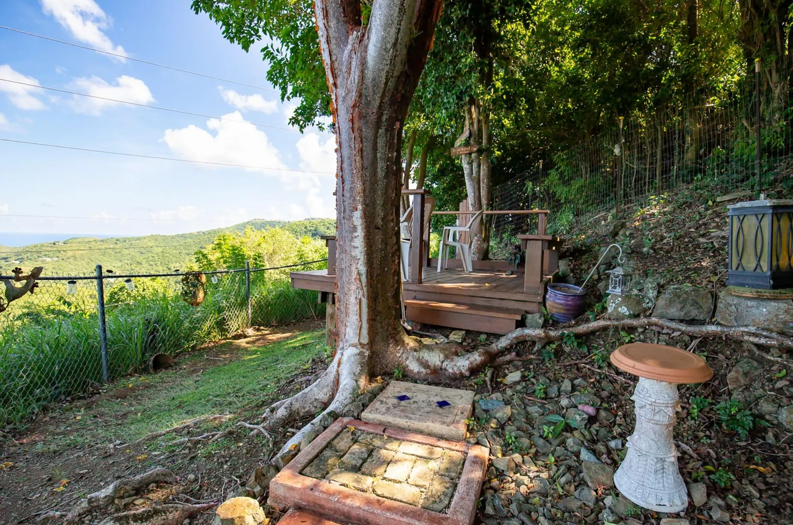 Experience island living at its finest in this poured-concrete 3-bedroom, 2-bathroom home featuring a spacious loft with striking cypress ceilings. The gourmet kitchen showcases Spanish Cedar custom cabinets by Mike Lustig, a mahogany bar, a new 36'' 5-burner gas range with convection, and a new dishwasher. Beautiful mahogany balusters add warmth and craftsmanship throughout. The main house is cooled by two large Mitsubishi split units, both under a 10-year warranty.The expansive 320 sq ft primary suite includes a walk-in closet, double vanity, double shower, skylight, custom tile work, and a luxurious 6-ft cast iron soaking tub. An outdoor shower adjacent to the main suite offers a secluded, spa-like experience.Enjoy seamless indoor-outdoor living with a wraparound deck and an observation deck overlooking the North Shore, offering panoramic views and cooling breezes. The 15x30 tiled saltwater pool features an auto chlorine generator, variable-speed pump, and a new Maytronics robot vacuum, surrounded by a stained concrete deck and an outdoor bar with sink and mini fridge, creating a private resort atmosphere.