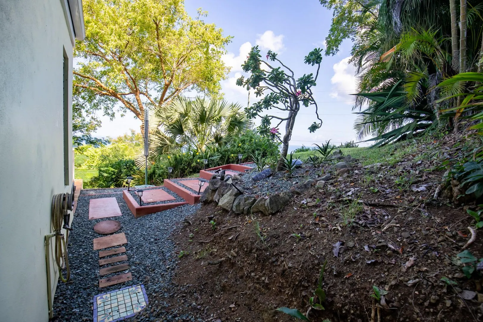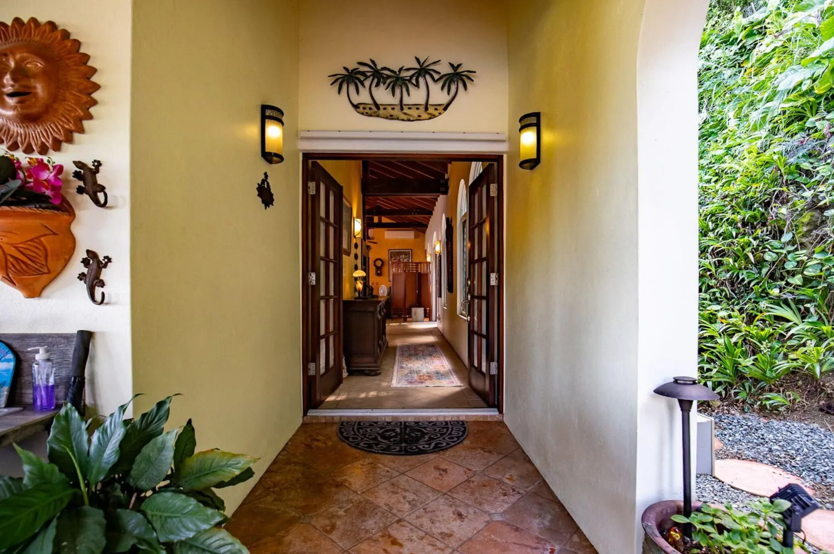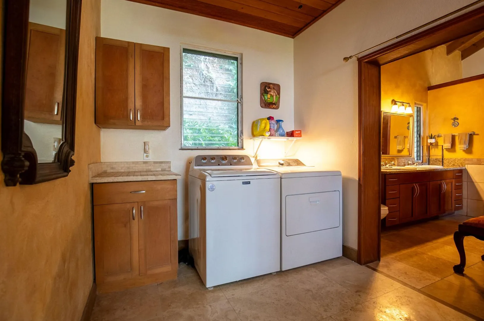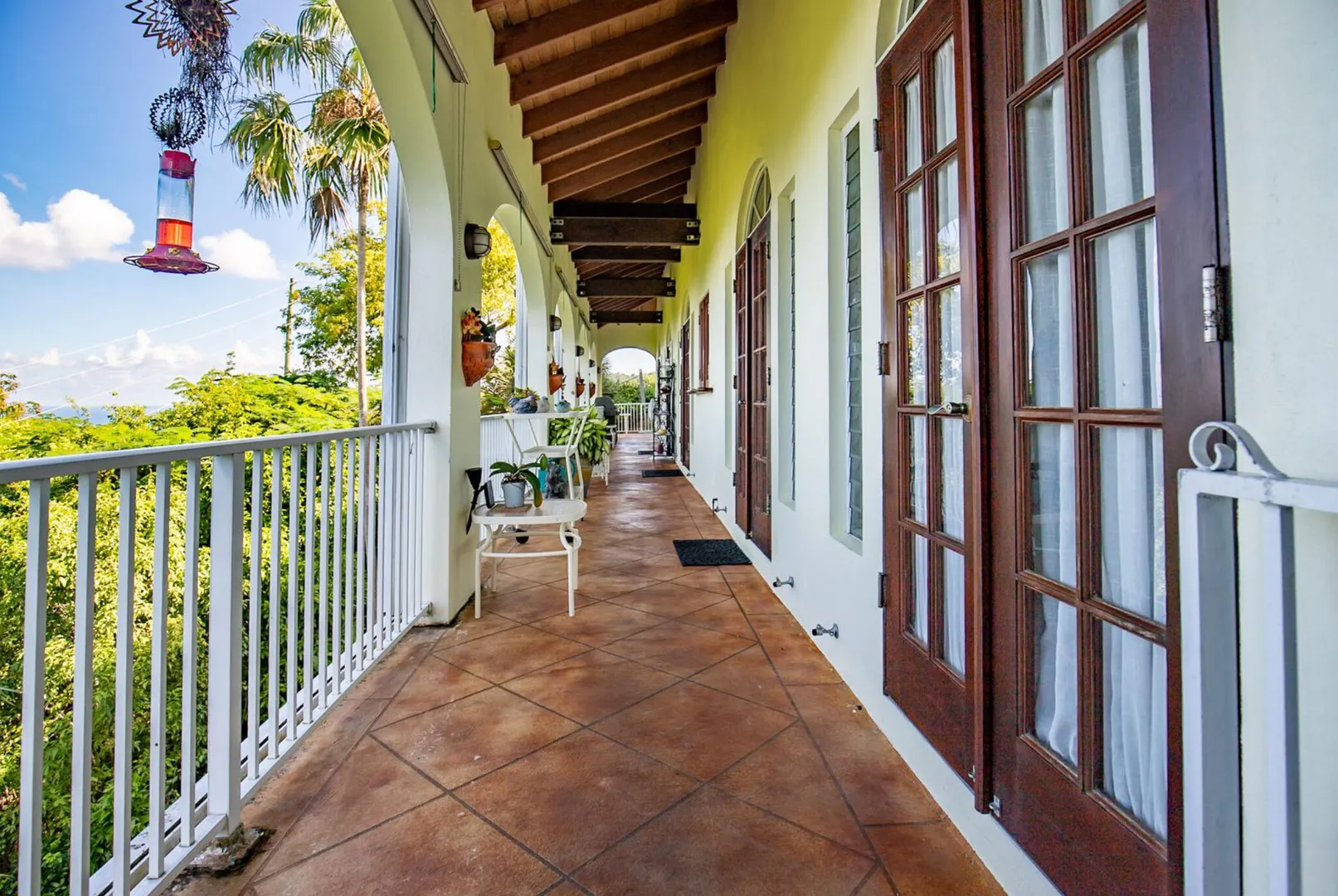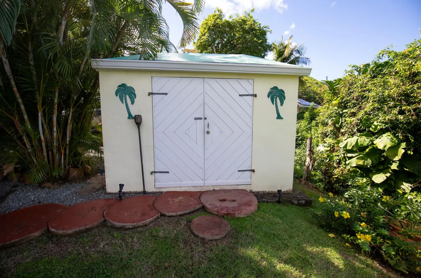 Experience island living at its finest in this poured-concrete 3-bedroom, 2-bathroom home featuring a spacious loft with striking cypress ceilings. The gourmet kitchen showcases Spanish Cedar custom cabinets by Mike Lustig, a mahogany bar, a new 36'' 5-burner gas range with convection, and a new dishwasher. Beautiful mahogany balusters add warmth and craftsmanship throughout. The main house is cooled by two large Mitsubishi split units, both under a 10-year warranty.The expansive 320 sq ft primary suite includes a walk-in closet, double vanity, double shower, skylight, custom tile work, and a luxurious 6-ft cast iron soaking tub. An outdoor shower adjacent to the main suite offers a secluded, spa-like experience.Enjoy seamless indoor-outdoor living with a wraparound deck and an observation deck overlooking the North Shore, offering panoramic views and cooling breezes. The 15x30 tiled saltwater pool features an auto chlorine generator, variable-speed pump, and a new Maytronics robot vacuum, surrounded by a stained concrete deck and an outdoor bar with sink and mini fridge, creating a private resort atmosphere.