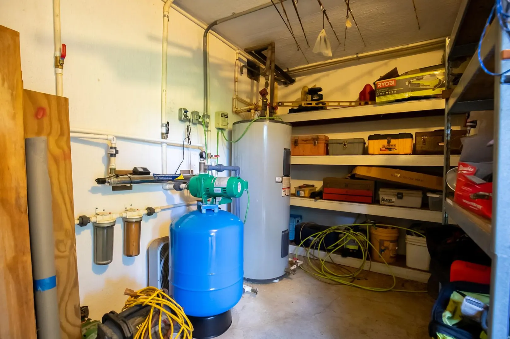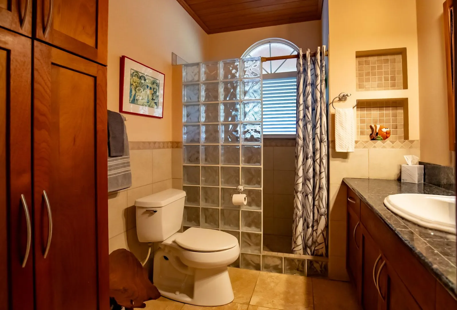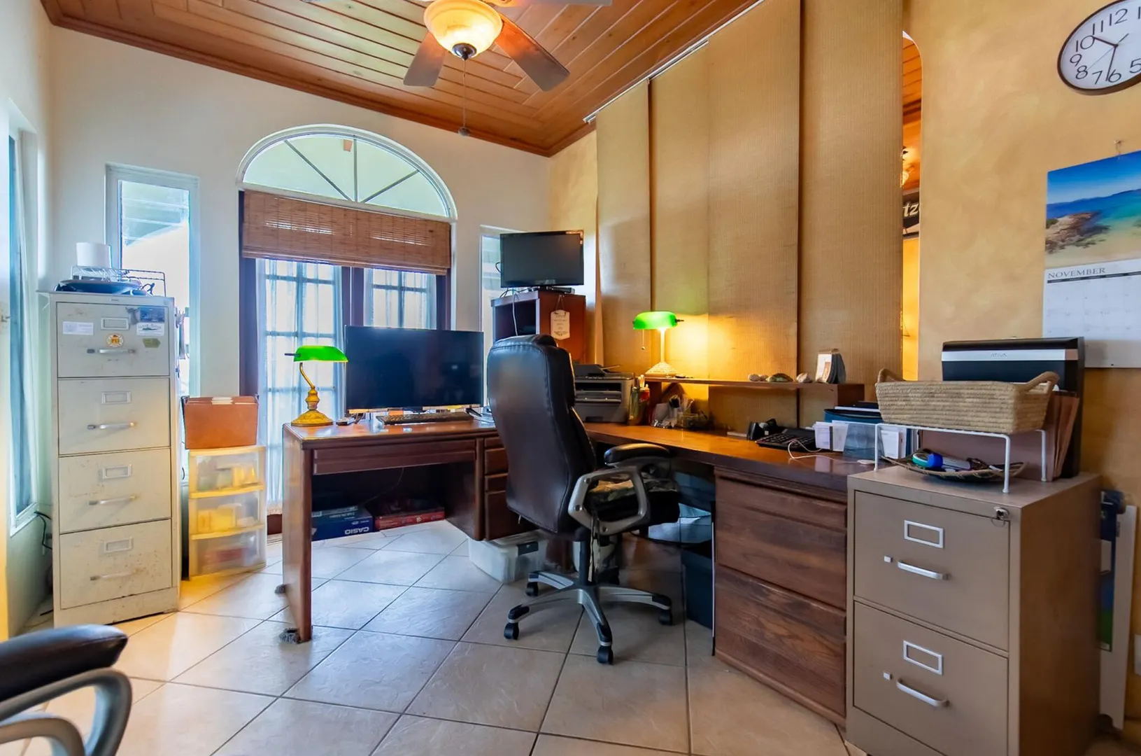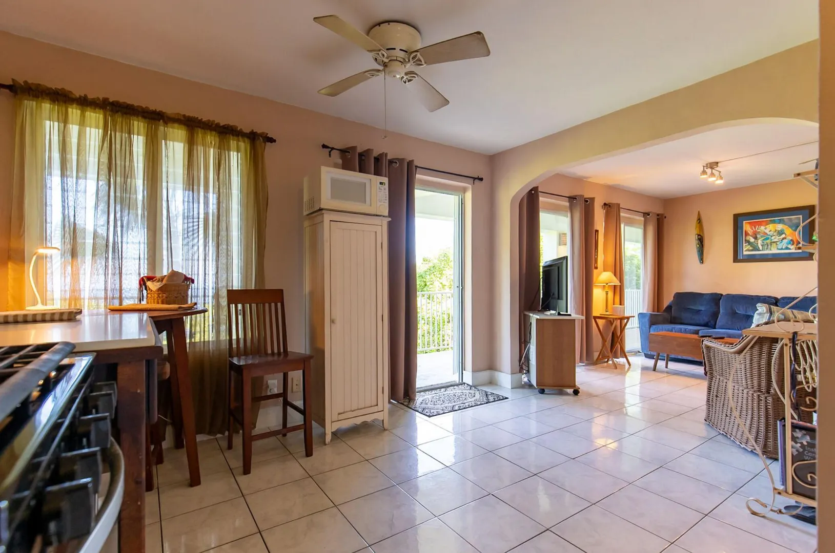 Experience island living at its finest in this poured-concrete 3-bedroom, 2-bathroom home featuring a spacious loft with striking cypress ceilings. The gourmet kitchen showcases Spanish Cedar custom cabinets by Mike Lustig, a mahogany bar, a new 36'' 5-burner gas range with convection, and a new dishwasher. Beautiful mahogany balusters add warmth and craftsmanship throughout. The main house is cooled by two large Mitsubishi split units, both under a 10-year warranty.The expansive 320 sq ft primary suite includes a walk-in closet, double vanity, double shower, skylight, custom tile work, and a luxurious 6-ft cast iron soaking tub. An outdoor shower adjacent to the main suite offers a secluded, spa-like experience.Enjoy seamless indoor-outdoor living with a wraparound deck and an observation deck overlooking the North Shore, offering panoramic views and cooling breezes. The 15x30 tiled saltwater pool features an auto chlorine generator, variable-speed pump, and a new Maytronics robot vacuum, surrounded by a stained concrete deck and an outdoor bar with sink and mini fridge, creating a private resort atmosphere.
