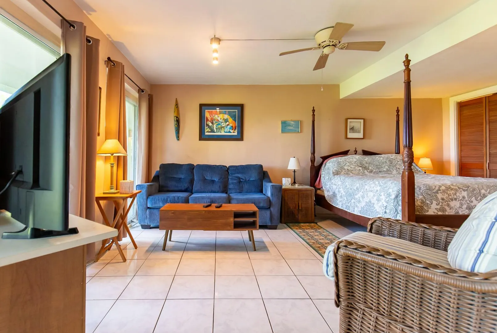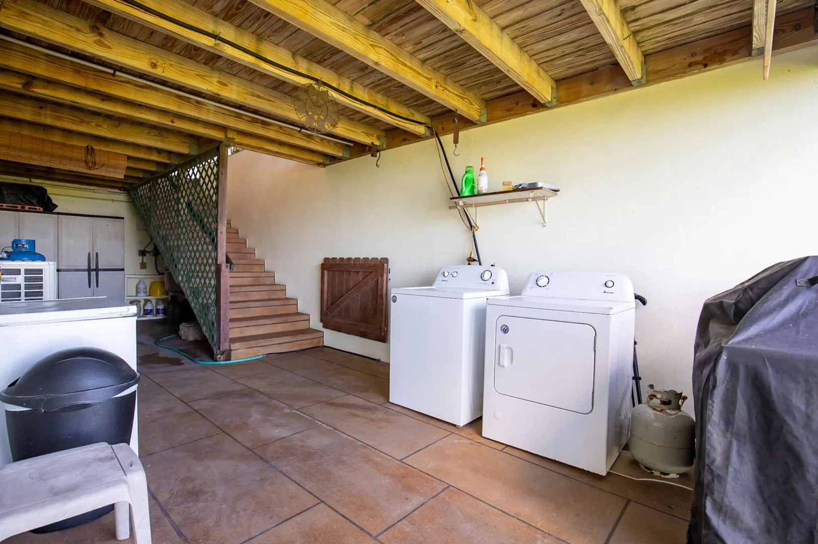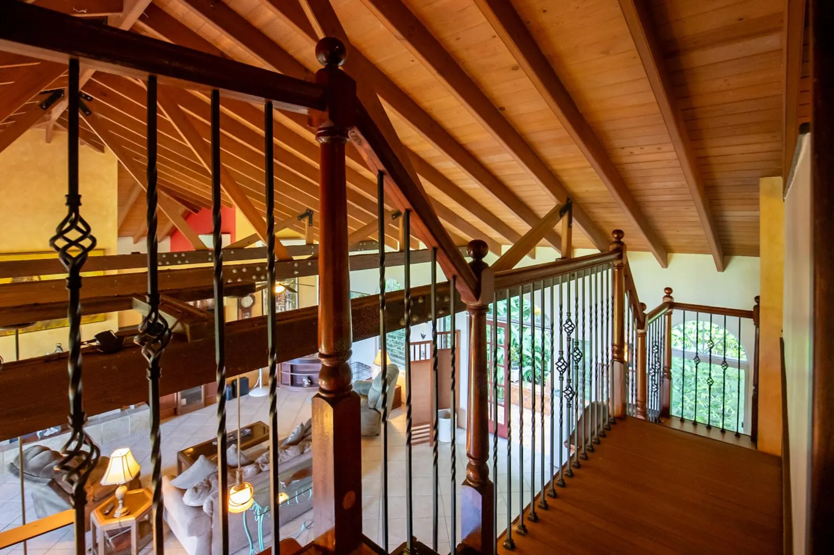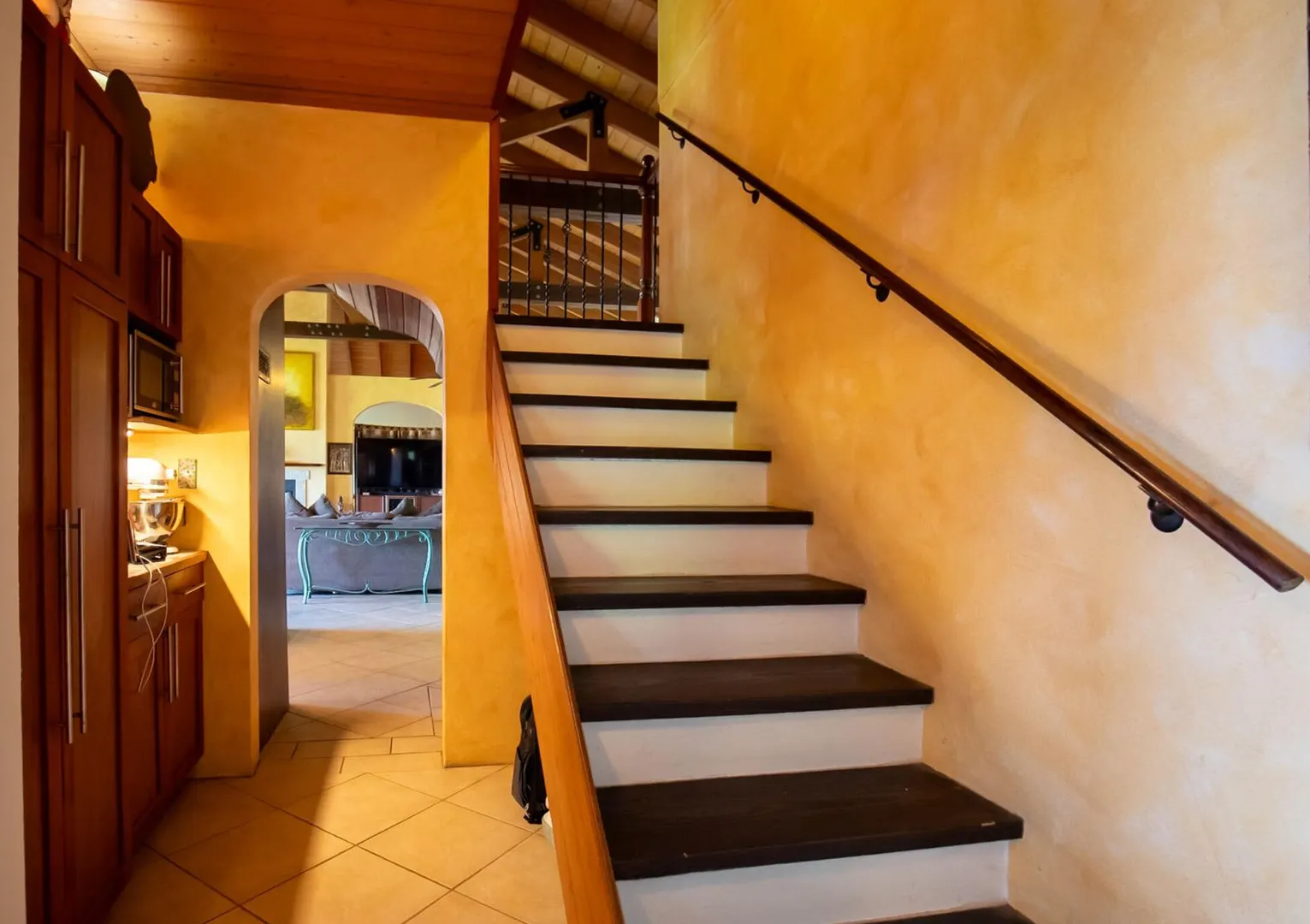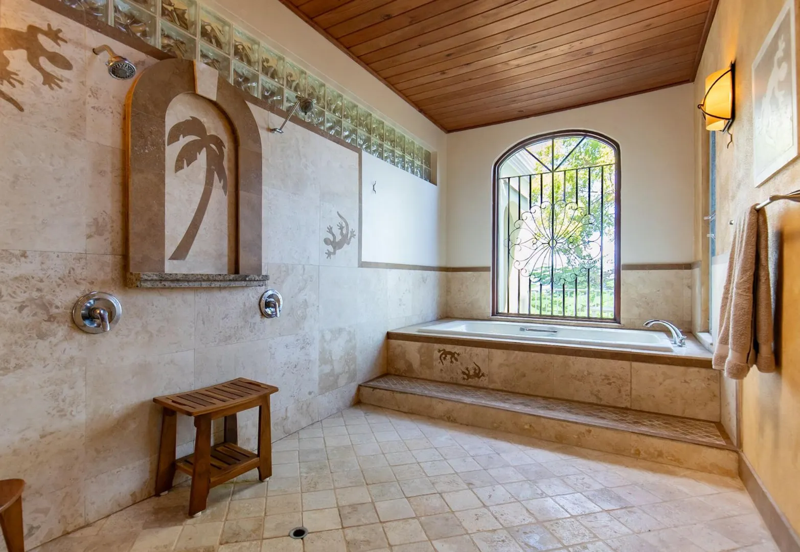 Experience island living at its finest in this poured-concrete 3-bedroom, 2-bathroom home featuring a spacious loft with striking cypress ceilings. The gourmet kitchen showcases Spanish Cedar custom cabinets by Mike Lustig, a mahogany bar, a new 36'' 5-burner gas range with convection, and a new dishwasher. Beautiful mahogany balusters add warmth and craftsmanship throughout. The main house is cooled by two large Mitsubishi split units, both under a 10-year warranty.The expansive 320 sq ft primary suite includes a walk-in closet, double vanity, double shower, skylight, custom tile work, and a luxurious 6-ft cast iron soaking tub. An outdoor shower adjacent to the main suite offers a secluded, spa-like experience.Enjoy seamless indoor-outdoor living with a wraparound deck and an observation deck overlooking the North Shore, offering panoramic views and cooling breezes. The 15x30 tiled saltwater pool features an auto chlorine generator, variable-speed pump, and a new Maytronics robot vacuum, surrounded by a stained concrete deck and an outdoor bar with sink and mini fridge, creating a private resort atmosphere.