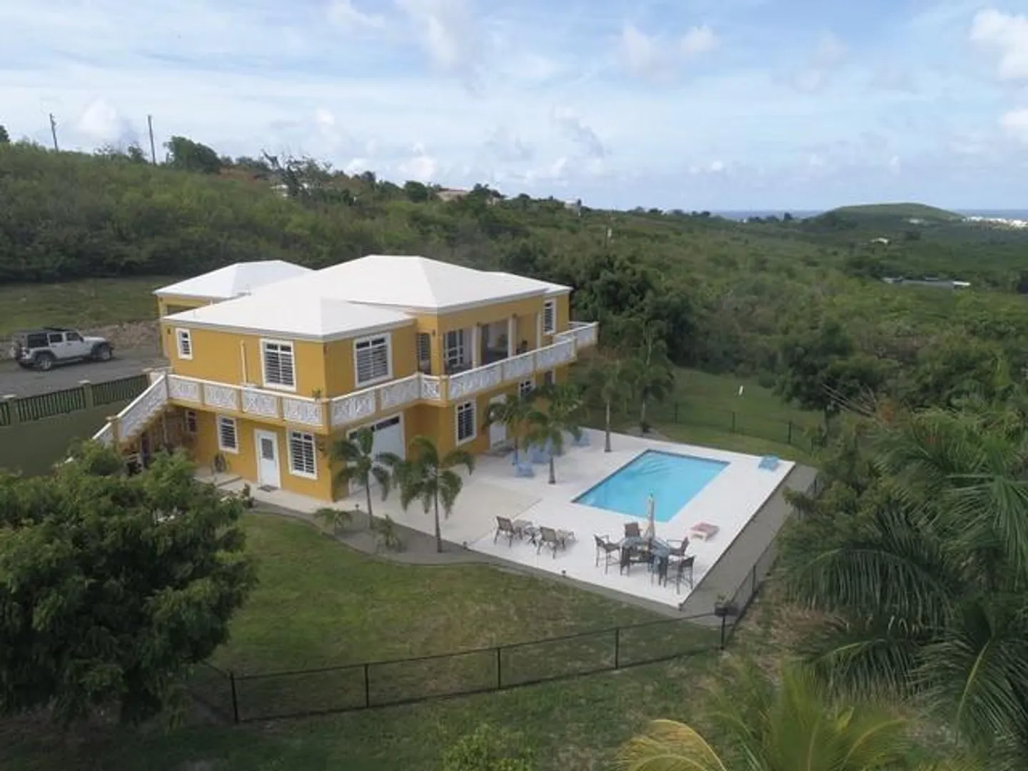 The best of everything. Built new in 2016 and of the finest materials.Living area upstairs has great room and custom kitchen, large master bedroom with gorgeous views of Buck Island and master bath. Guest room and bath, and lovely deck overlooking pool and stunning views. Additional game room with private full bath and full apartment lower level. Beautifully maintained property with fruit trees and 2 acres of privacy. Automatic 22K propane generator. 250 bulk tank, two 20,000 gallon cisterns make this the perfect island home. Sold furnished and Buyer pays stamp tax.