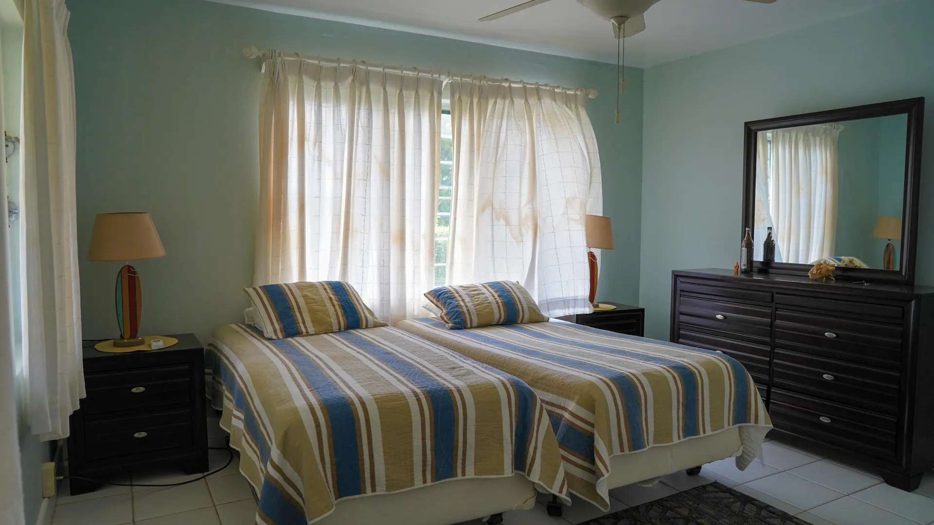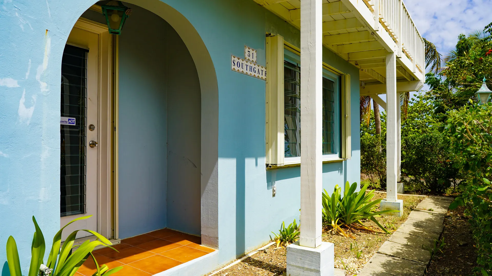 This beautiful 3 bedroom, 3.5 bath Southgate home gorgeously landscaped and surrounded by palm, seagrape and mango trees, is the perfect island home. The driveway is lined with palm trees. Close to 2,300 square feet of outdoor space including a multi layered pool deck, decks circling the bedrooms, dining room and a large patio off the living room. One bedroom, one bath apartment is perfect for rental income or as an in-law suite. One car garage. Views east of the Ms. Bea Road sugar mill and south of Southgate Farms, 7 Hills and All for the Better. Lots of storage space including a shed in back yard.