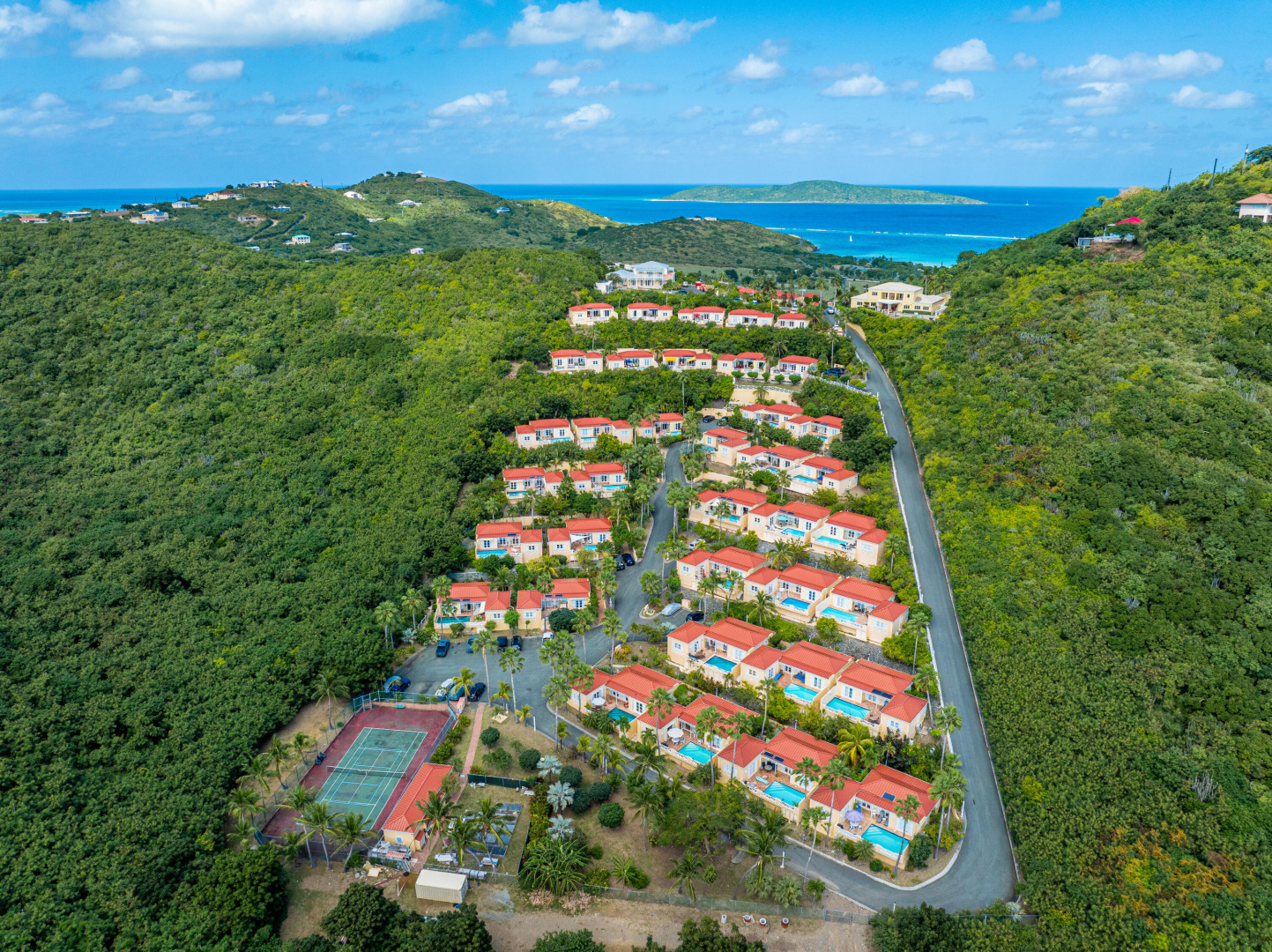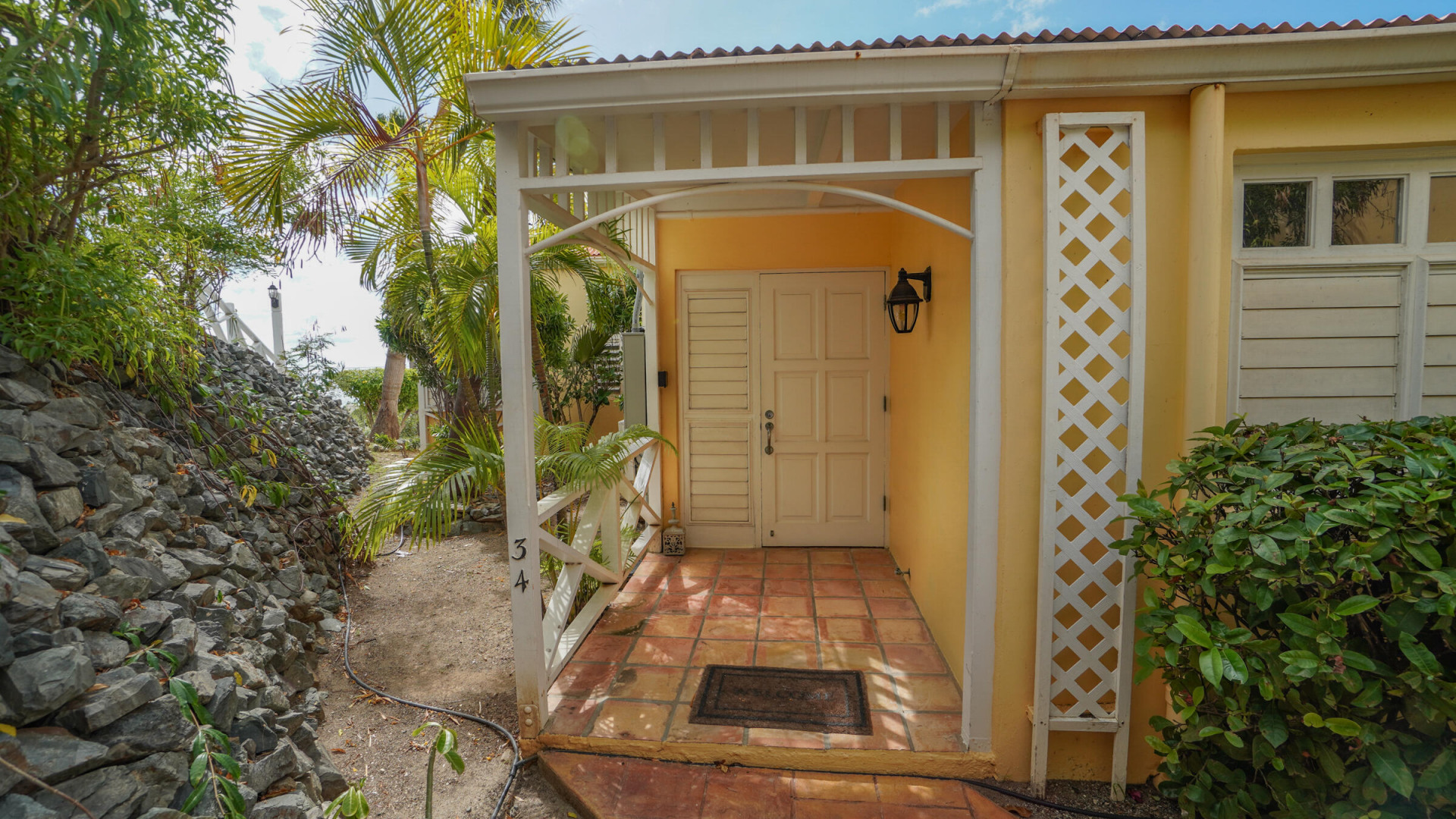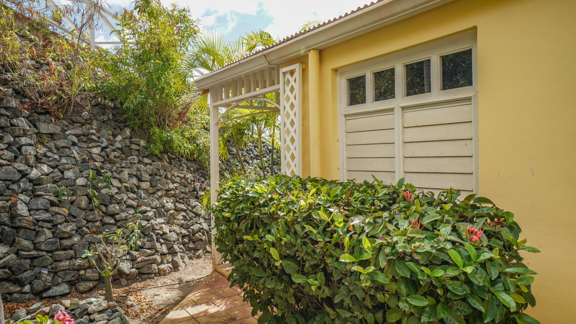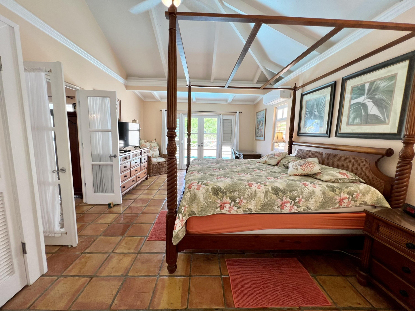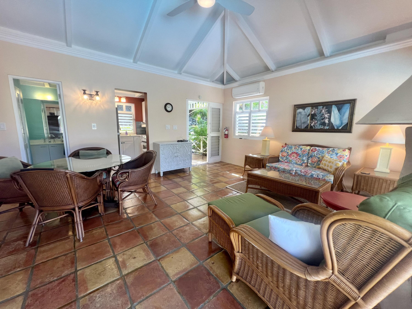 This premier end-unit villa with private pool & generator offers the ultimate in privacy, accessibility, and breathtaking scenery including Caribbean Sea views. With no stairs to navigate inside or out - this 2-BR, 2-Bath retreat is designed for effortless island living. Many thoughtful upgrades include an automatic 11KW Generac generator (only a few units in complex are allowed to have them), solar pool pump, new split AC units in each room, whole house PURA ABUV-8 ultraviolet light water filtration system, built in storage below pool deck, and upgrades to the kitchen including top quality countertops with rich blue tiles as the back splash, and new appliances. This location is ideal for anyone wanting privacy, and no one looking down on their pool, sea views from the pool deck and easywalking access to the tennis courts and the path to the Divi Resort, Casino and Beach. While many units have direct sunlight in the afternoon, making it too hot to enjoy the pool deck, this villa enjoys shade 4 PM on - the perfect time to sit outside to enjoy a cocktail and start up the grill.