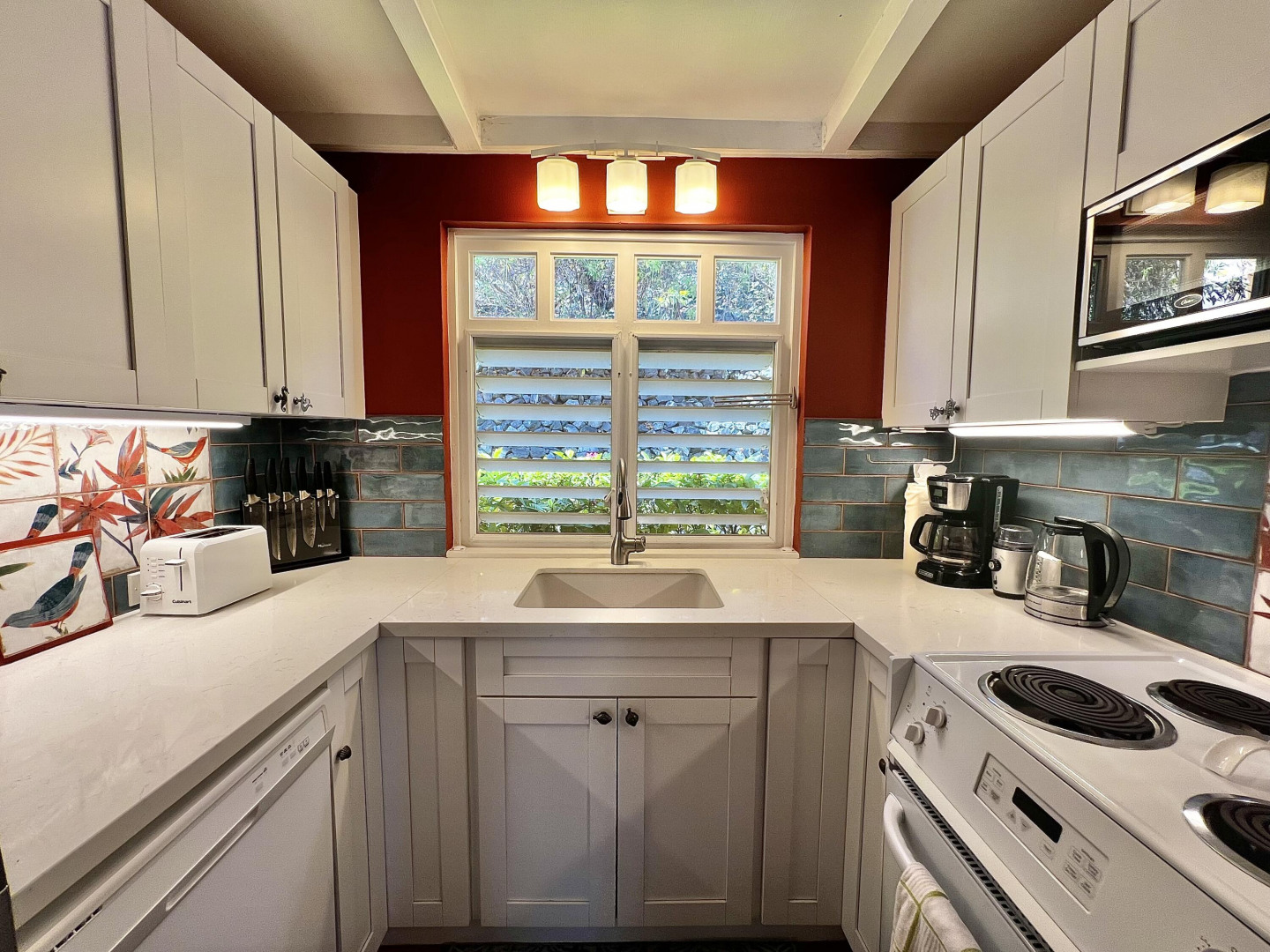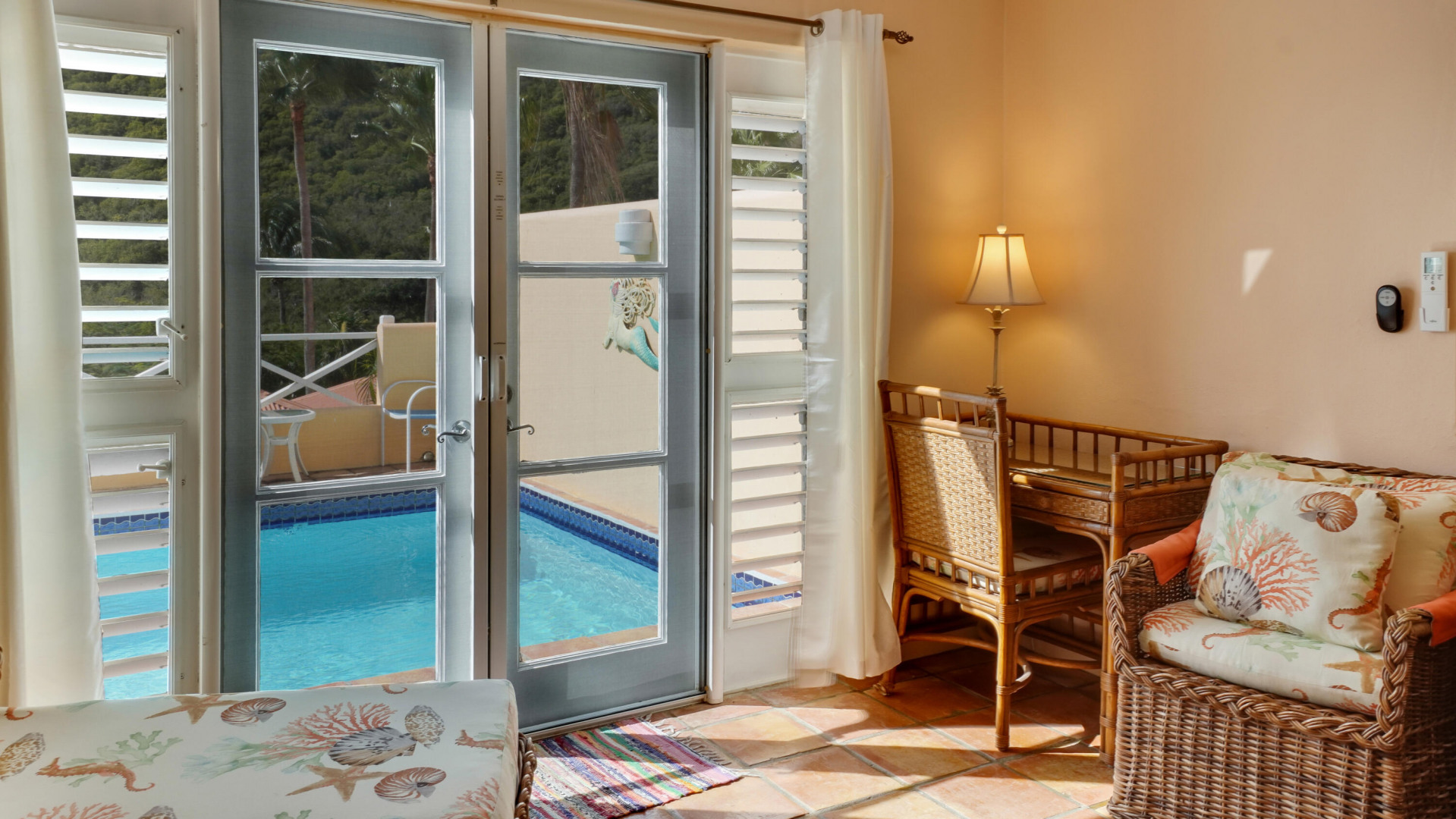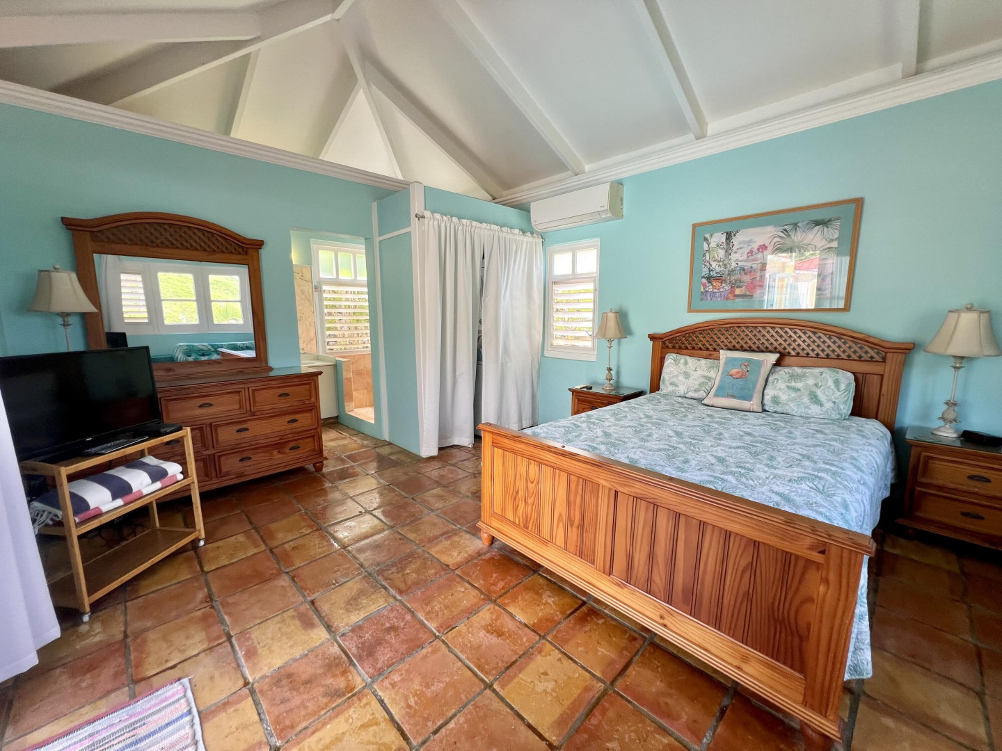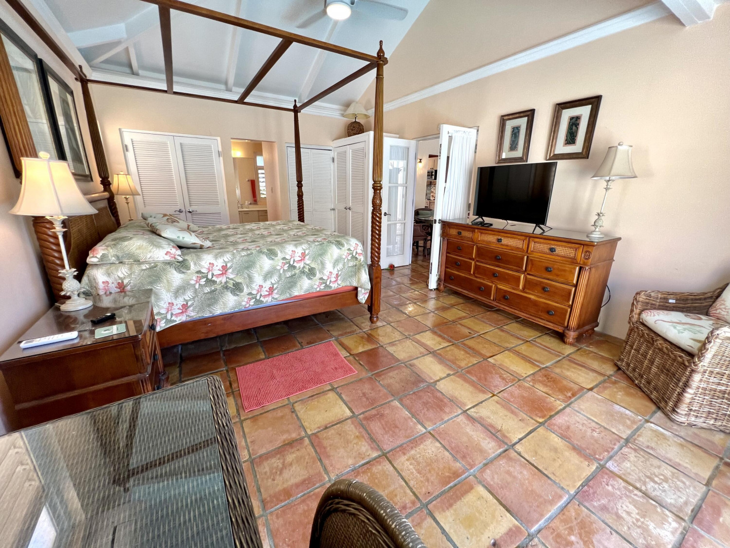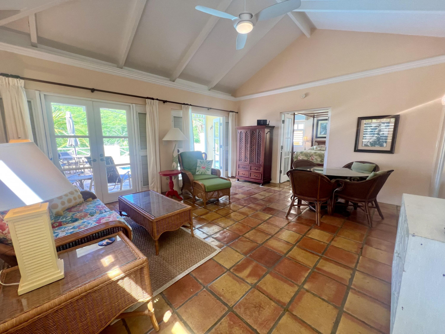 This premier end-unit villa with private pool & generator offers the ultimate in privacy, accessibility, and breathtaking scenery including Caribbean Sea views. With no stairs to navigate inside or out - this 2-BR, 2-Bath retreat is designed for effortless island living. Many thoughtful upgrades include an automatic 11KW Generac generator (only a few units in complex are allowed to have them), solar pool pump, new split AC units in each room, whole house PURA ABUV-8 ultraviolet light water filtration system, built in storage below pool deck, and upgrades to the kitchen including top quality countertops with rich blue tiles as the back splash, and new appliances. This location is ideal for anyone wanting privacy, and no one looking down on their pool, sea views from the pool deck and easywalking access to the tennis courts and the path to the Divi Resort, Casino and Beach. While many units have direct sunlight in the afternoon, making it too hot to enjoy the pool deck, this villa enjoys shade 4 PM on - the perfect time to sit outside to enjoy a cocktail and start up the grill.