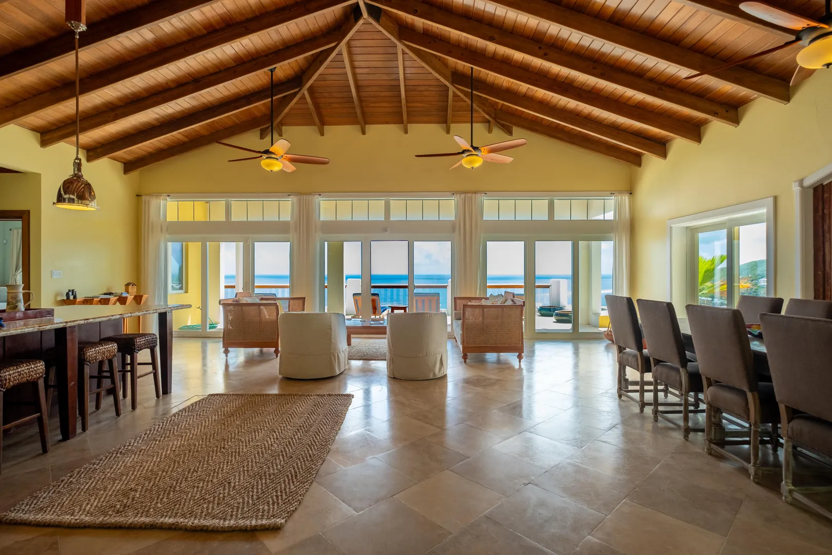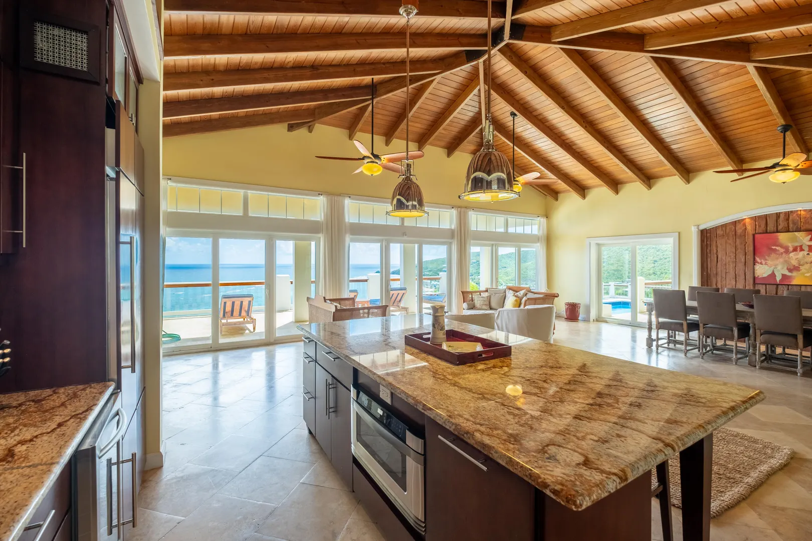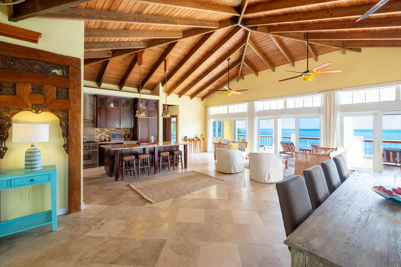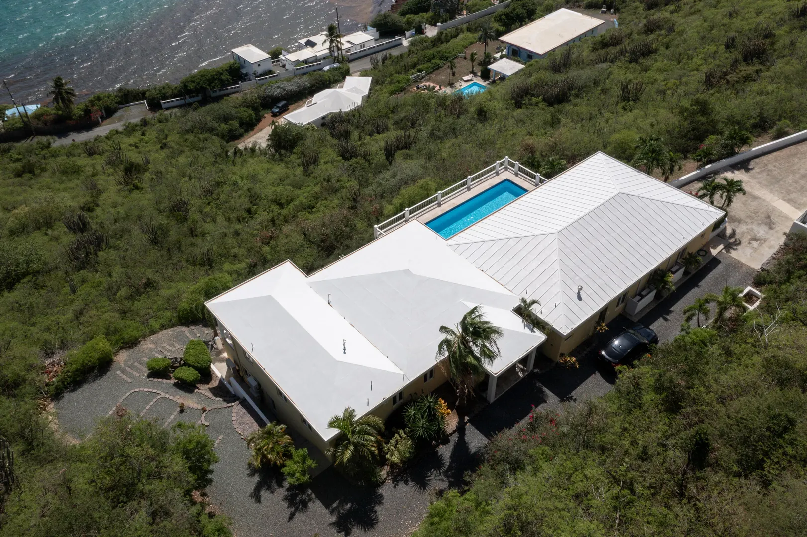 Welcome to your dream Caribbean oasis! This exquisite luxury home on the picturesque East End of St. Croix offers the ultimate blend of comfort, elegance, and convenience. Situated on 2.15 acres with 4 bedrooms, 3.5 baths in the main house, and a fully equipped 1 bedroom, 1 bath apartment, this property is a paradise for families, entertainers, and those seeking the perfect island escape.As you enter the main house, you'll be greeted by an open-concept living space that seamlessly connects the living, dining, and kitchen areas. Soaring cypress ceilings and large impact glass sliding doors lead to a covered terrace, offering awe-inspiring views of the South Shore.