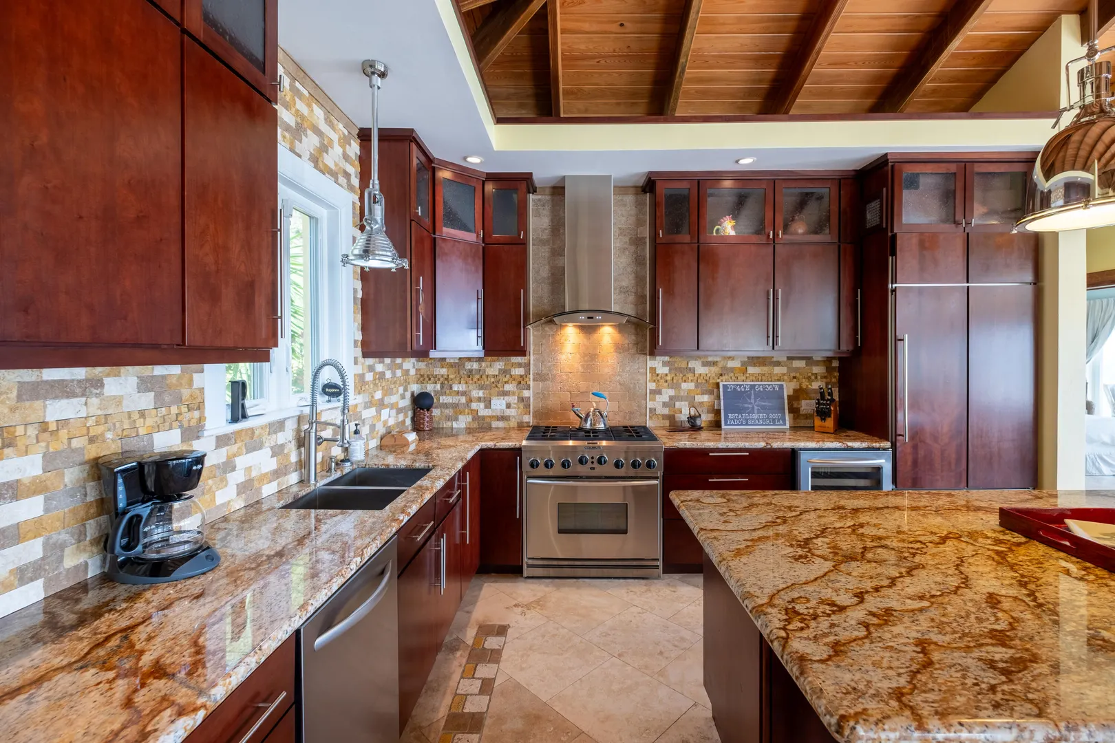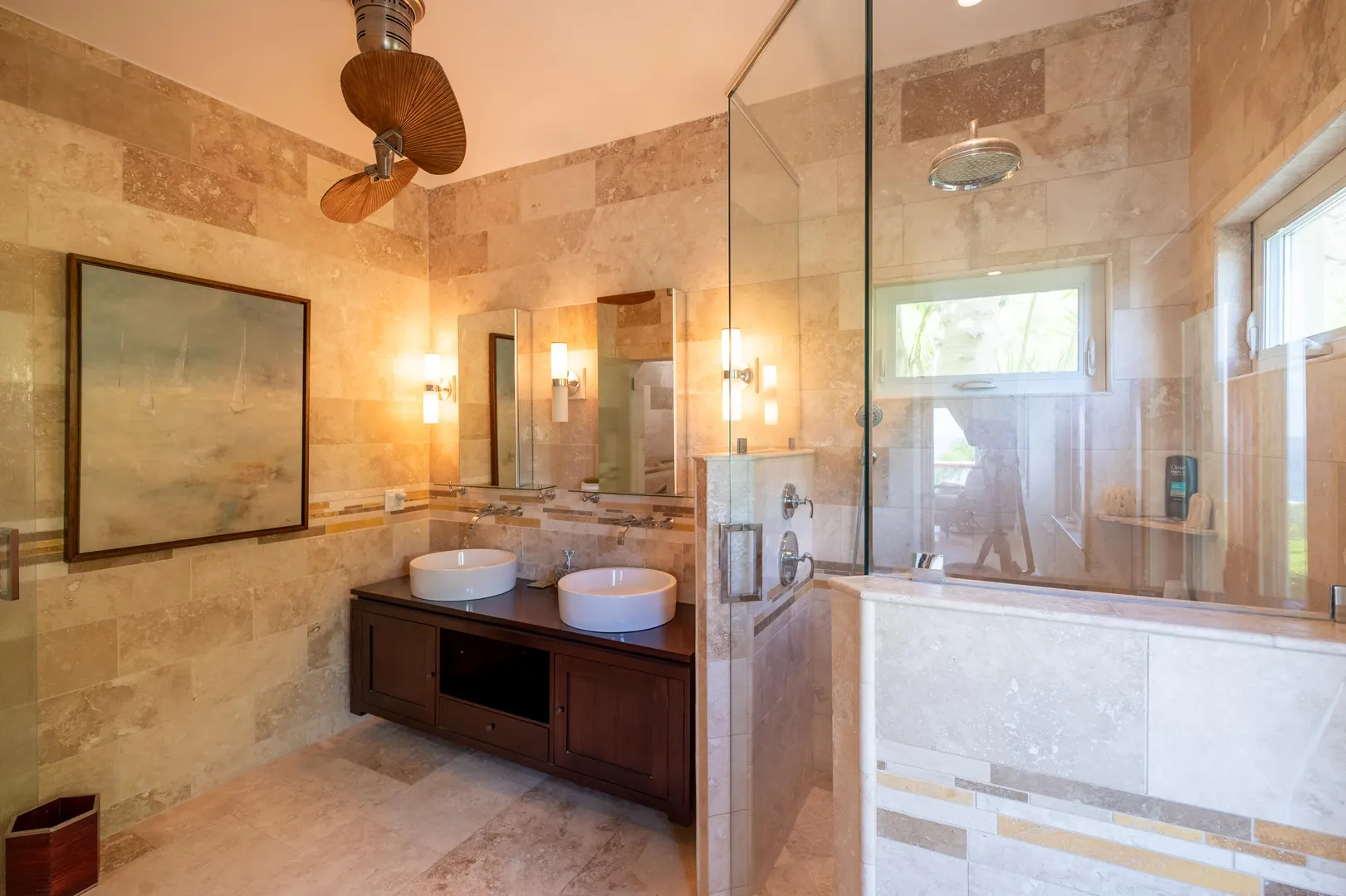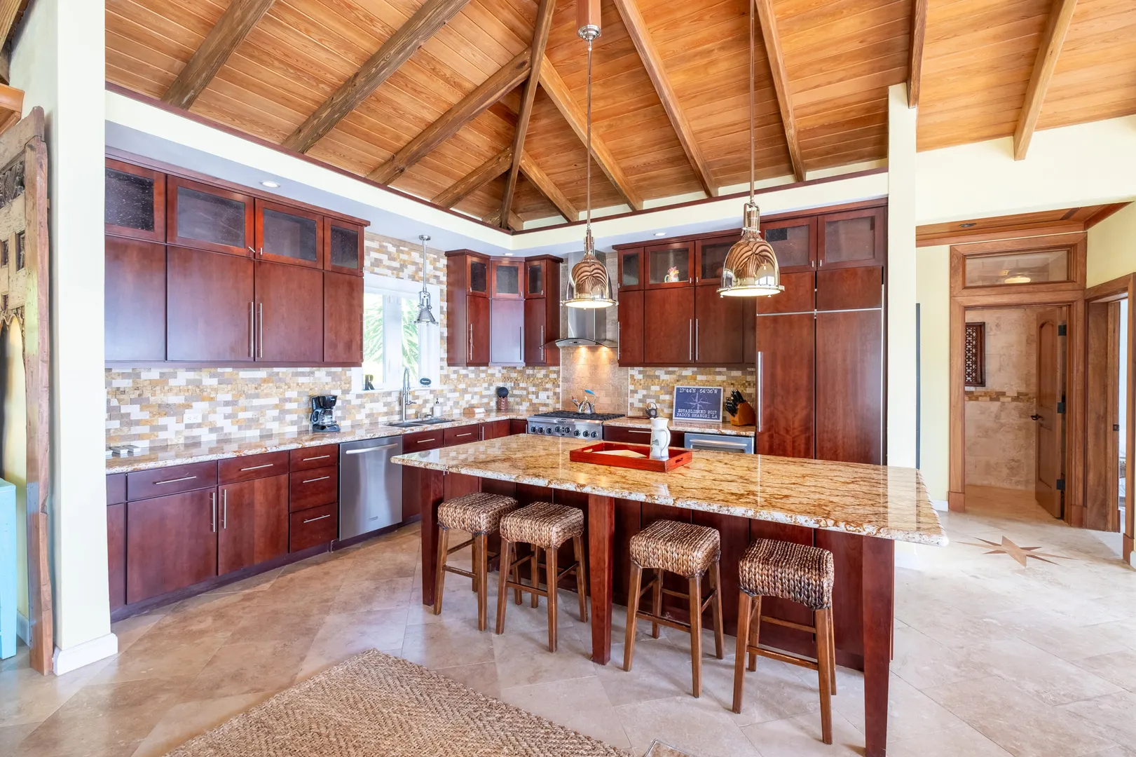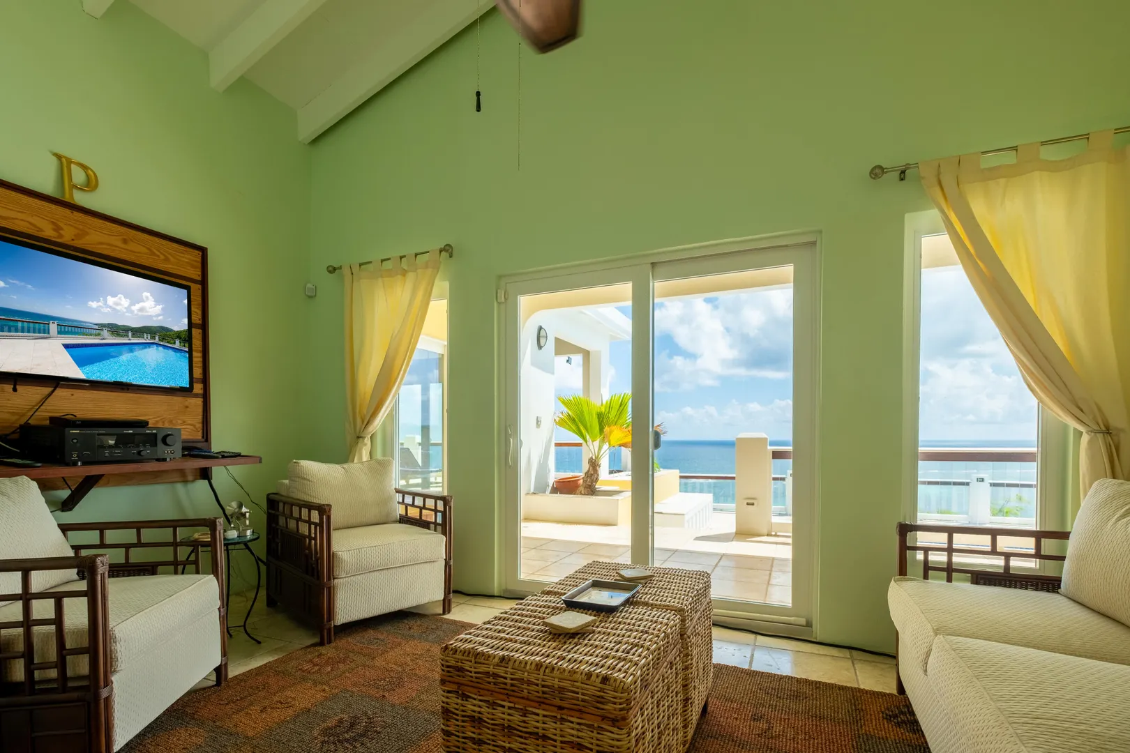 Welcome to your dream Caribbean oasis! This exquisite luxury home on the picturesque East End of St. Croix offers the ultimate blend of comfort, elegance, and convenience. Situated on 2.15 acres with 4 bedrooms, 3.5 baths in the main house, and a fully equipped 1 bedroom, 1 bath apartment, this property is a paradise for families, entertainers, and those seeking the perfect island escape.As you enter the main house, you'll be greeted by an open-concept living space that seamlessly connects the living, dining, and kitchen areas. Soaring cypress ceilings and large impact glass sliding doors lead to a covered terrace, offering awe-inspiring views of the South Shore.