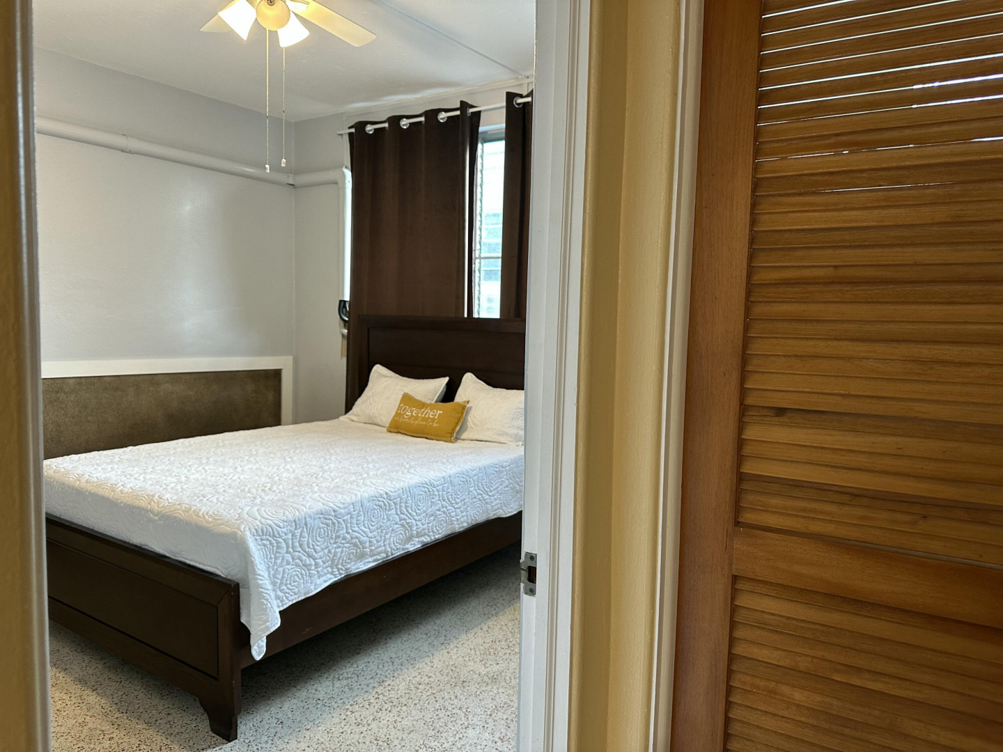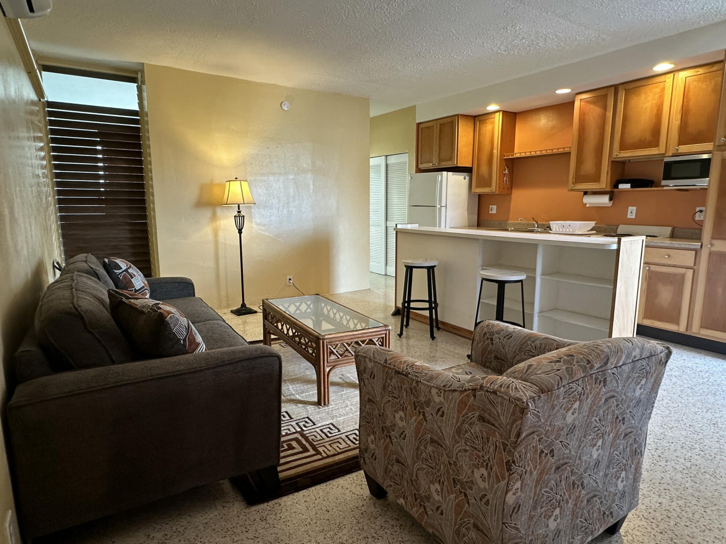Enjoy stunning views of Christiansted, Buck Island, and Green Cay from this updated 1-bed, 1-bath second-floor unit at Bay Garden Condominiums. Features include a renovated bathroom, new microwave, refreshed bedroom, and brand-new living room furniture. Located in a quiet gated community just minutes from town, with shared pool access, on-site laundry, and beautiful green space. Parking available below or behind the unit. Utilities not included.