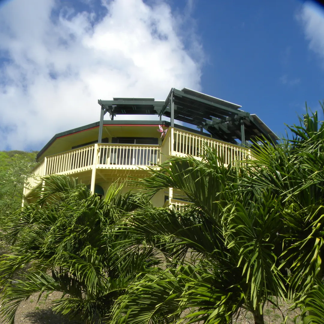 If you have ever done the East End loop, you know this house! This architectural wonder has stunning ocean views yet is tucked into a protective hillside on St Croix's Southeast shore. Located across the street from the beach, enjoy not only the gorgeous colorful sea views, but the Sun! No Wapa bills thanks to 17 solar panels! Versatile floor plan lends itself to enjoying a rental apartment!