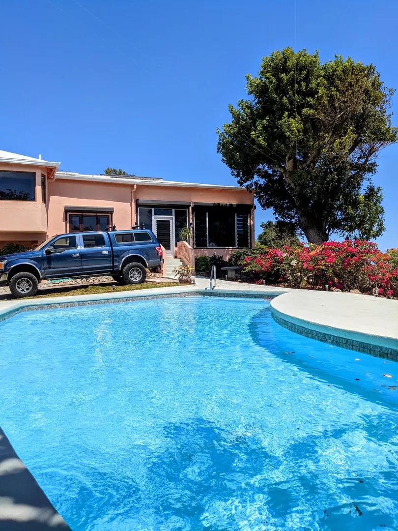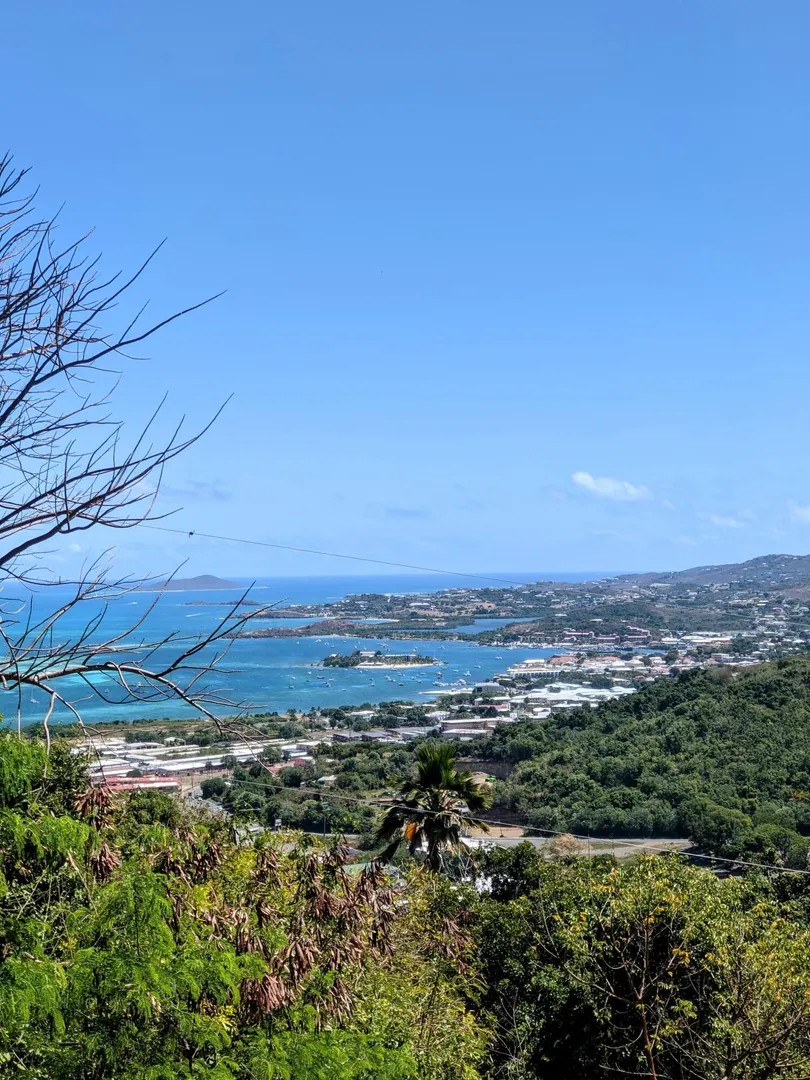 ***Price reduced $65,000!!!***Gorgeous hilltop home with rare dual shore views! 3 bed 2.5 bath, with a garage. Huge sweeping views of both the North and South Shores, including Christiansted Harbor and Buck Island! Fantastic soaring ceilings with a wall of windows to enjoy the view and amazing breezes. Sit out by the private pool and soak in the beauty all around. Privacy abounds in this hilltop retreat, yet minutes to beaches, grocery stores, and downtown Christiansted. Owner has made significant upgrades since 2021 including...new electrical wiring from the street to the house with new breaker boxes, New Ac's, fridge, dishwasher and kitchen floor. Roof re-coated, cistern cleaned and re-coated, Water heater and pump new since 2021.