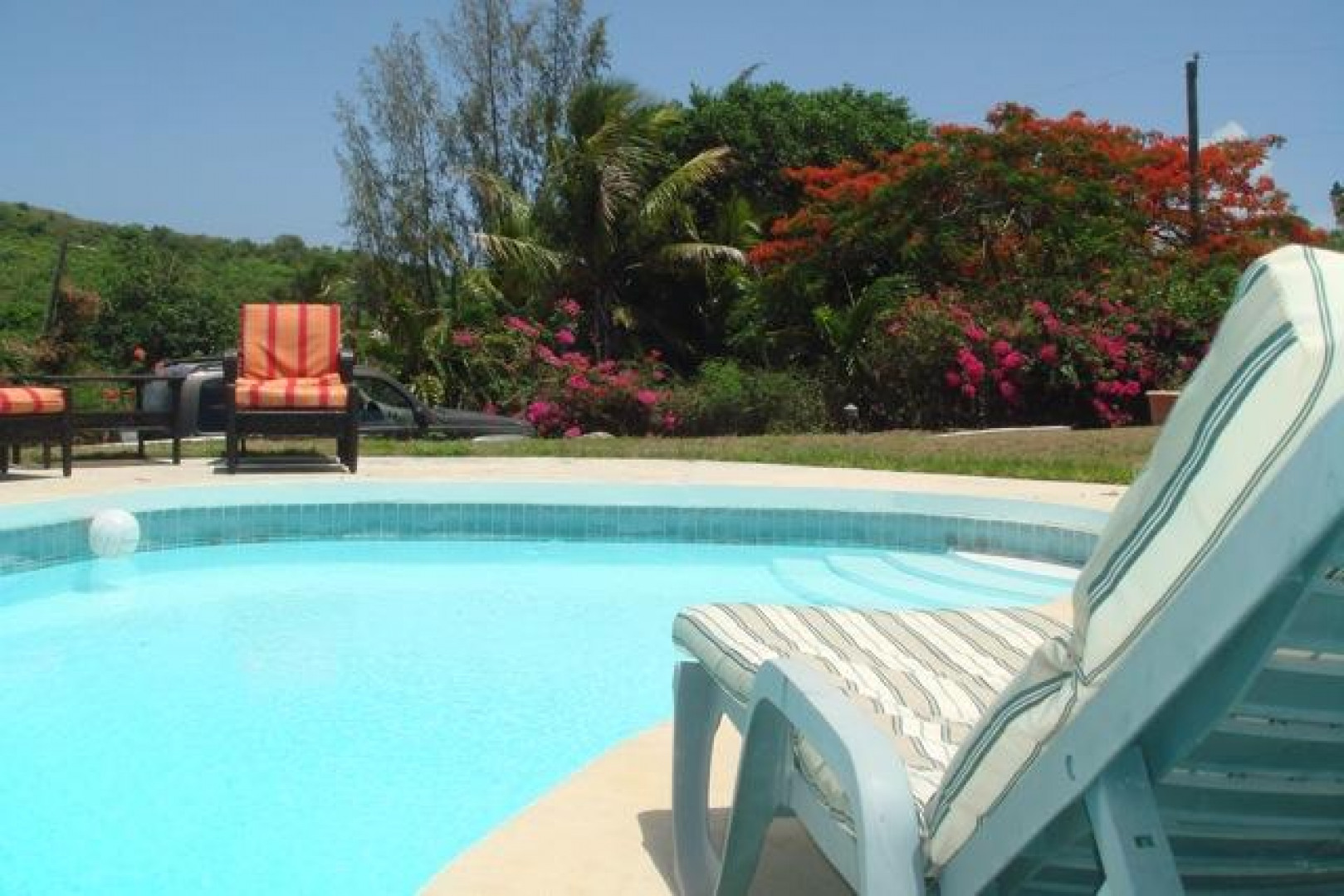 Beautifully furnished turn-key cottage with splendid views of Christiansted, Hotel on the Cay, Green Cay and Buck Island. Lounge by the deep blue pool to enjoy all of it. Easterly trades are plentiful, but cottage is fully air-conditioned. Pet-friendly with deposit and includes wi-fi, DISH, basic cable, lawn and pool care. New appliances include a chef's dream- a gas stove. Washer/dryer in unit.