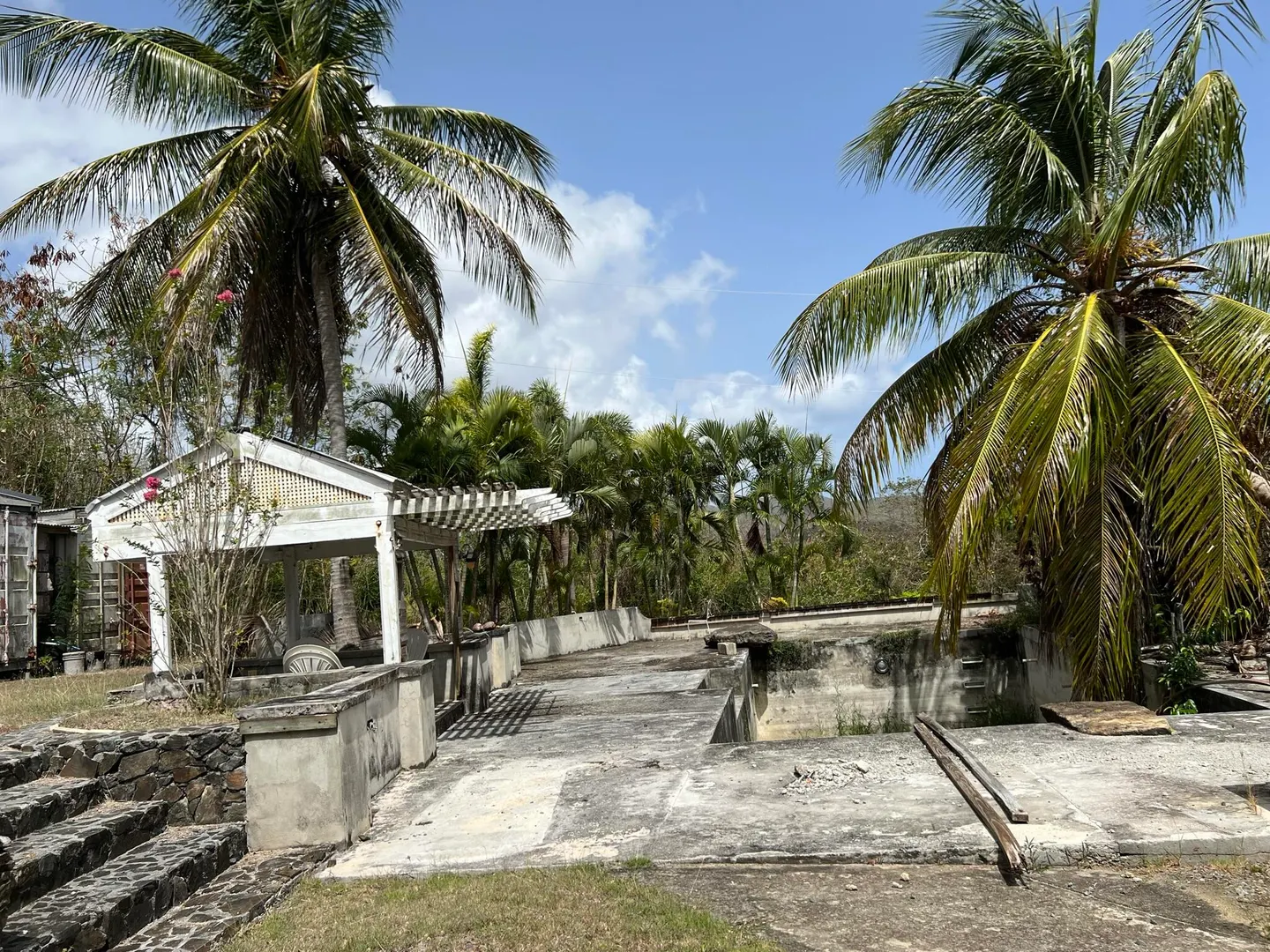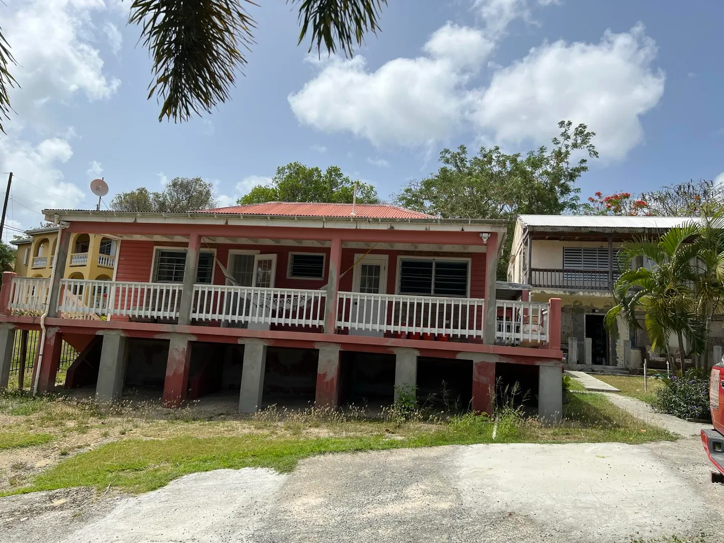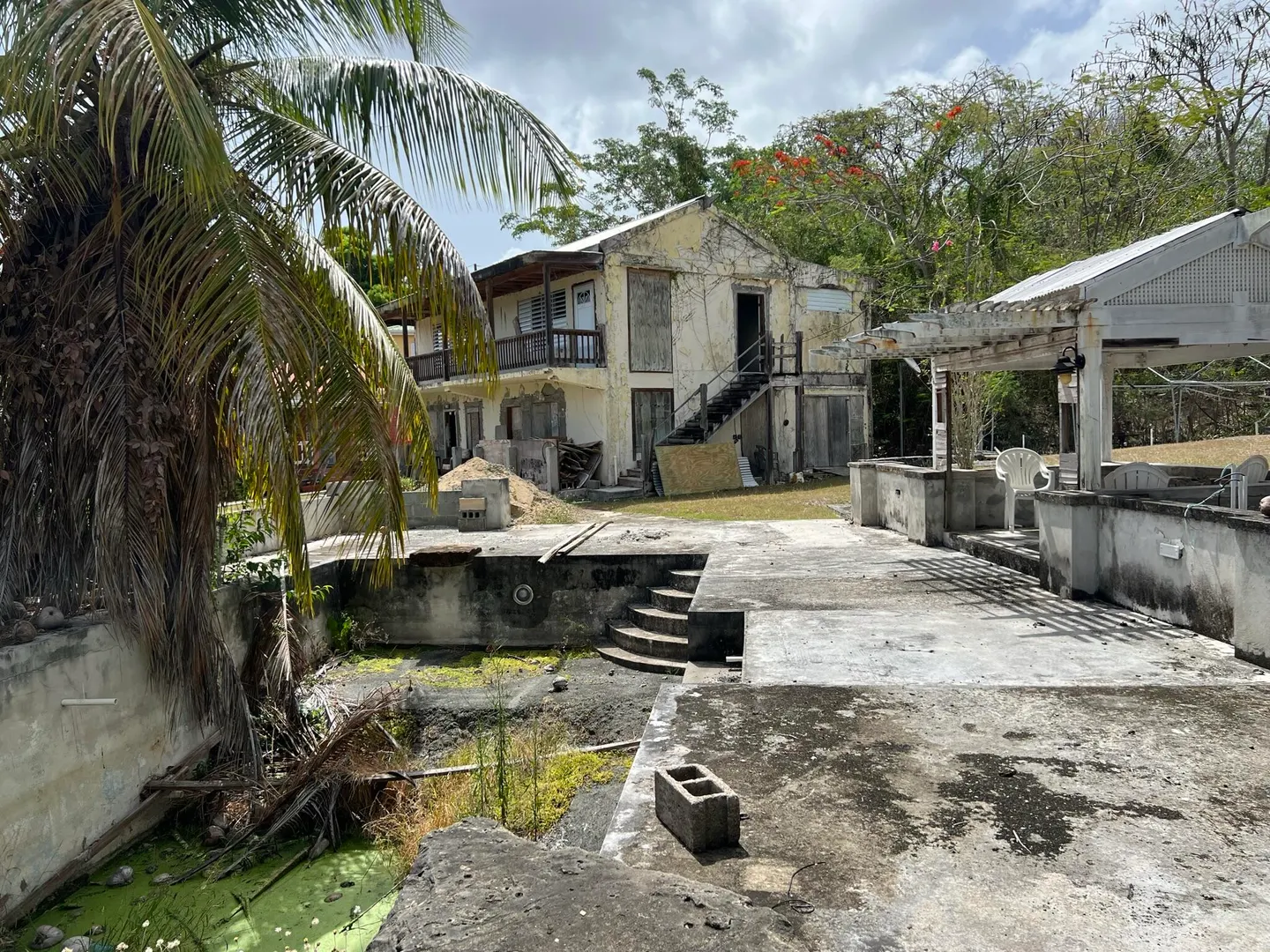 Contractors ! Investors ! Project Lovers !Move right into this West Indian style two bedroom two bath cottage with new kitchen, SS appliances , vaulted ceilings and central air system in place although Seller never used it! On weekends, get your tools out and finish off the 2 story Building that appears to have contained at least two apartments in the past .judging by the rough plumbing. .Separate WAPA meters exist . Also on the one acre plot are a concrete slab intended to become a big garage by former builder/owner, an oldie but goodie concrete swimming pool, changing room, a set of stairs with interesting stonework and so ,many beautiful trees, flowers and plantings not to mention the delightful BIRDS!! Call/TEXT Pamela for more info and to schedule appointments- thank you !