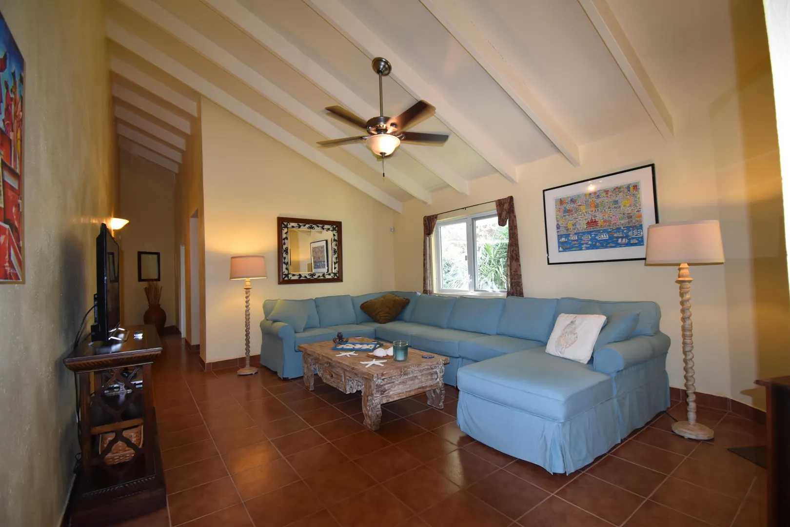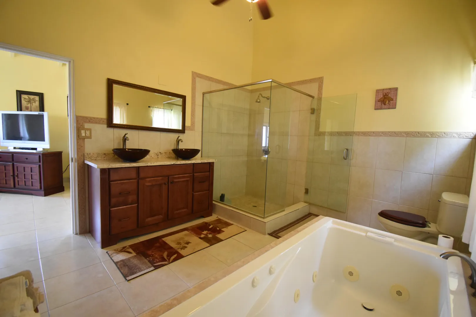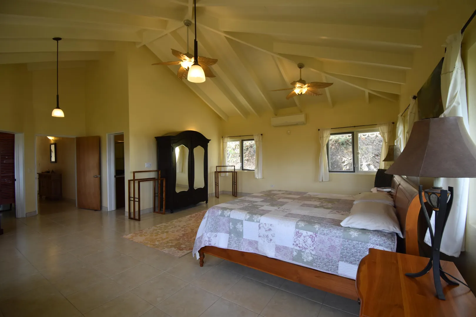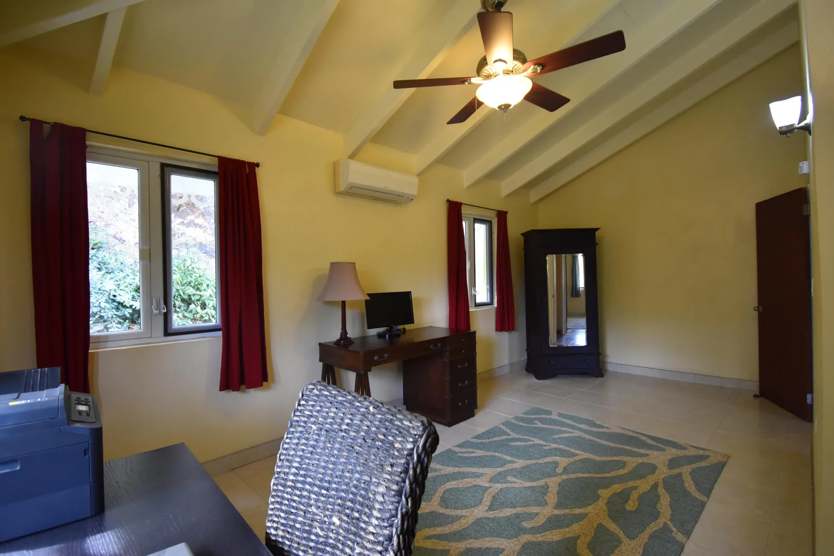 New SOLAR! Exquisite interior design with fabulous custom kitchen and gorgeous views make this home one of a kind. Every detail in this home has been addressed with high quality fixtures and workmanship. Custom mahogany doors open to the tasteful cut coral deck overlooking a beautiful valley and a West facing sea view with unbelievable sunsets. The kitchen is a work of art with custom teak cabinets and mahogany island handmade by a famed local artist, decorative wood carvings from Indonesia, leather-finish granite counters, professional-grade gas range, in-drawer microwave, and large stainless steel French door refrigerator. The fabulous master suite boasts a spacious bedroom overlooking the sea, a large bath with glassed shower, Jacuzzi tub and double vessel vanity, and 2 walk-in closetClosets are maximized with John Louis Home shelving. Vaulted ceilings throughout add an open spacious feeling. To the East of the kitchen is a formal dining room, currently used as a den, but would also make a wonderful Study. Beyond that is a large living room. At the far East end of the house are two bedrooms separated by a beautiful full bath with a very large glassed shower. Off the kitchen is a large laundry/utility room with a rear entry door, and pump and pressure tank for the two Cisterns totaling approximately 15,000 gallons. Cisterns were recoated this year. Additional details include: Windows are hurricane-rated glass protected by beautiful custom made awnings that convert into storm shutters. The mahogany deck entrance doors and the windows on each side are protected by metal storm shutters. Deck is 40 X 12 cut coral stone, surrounded by low maintenance composite railing. Sidewalks are cut coral stone. Nicely landscaped with many palms and fruit trees including mango, carambola, avocado, banana, and coconut. Retaining walls, Solar hot water, 3 Split A/C Units, 8 Ceiling Fans, Washer, Dryer, Alarm system, Internet, Dish/Cable TV, Off-street parking, Entrance Gate. Construction: Concrete, Concrete Block, ICF Block, Wood. Galvanized roof and gutters less than 5 years old covers entire house. Cummins 13K generator is auto start with a 250-gallon propane tank. Kitchen Appliances: DCS Professional 36 inch 6-burner gas range, Sharp Drawer Microwave, Kenmore refrigerator. Flooring: Ceramic Tile, Sewer: Septic On a clear day, you can see Puerto Rico and Vieques! Close to beautiful west end beaches including Sandy Point and many dive sites. Too many details to list. You must see this property to appreciate it!