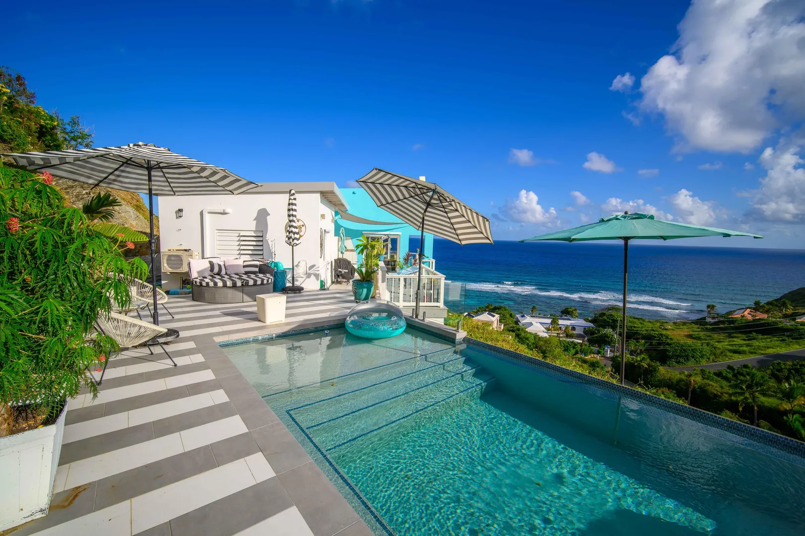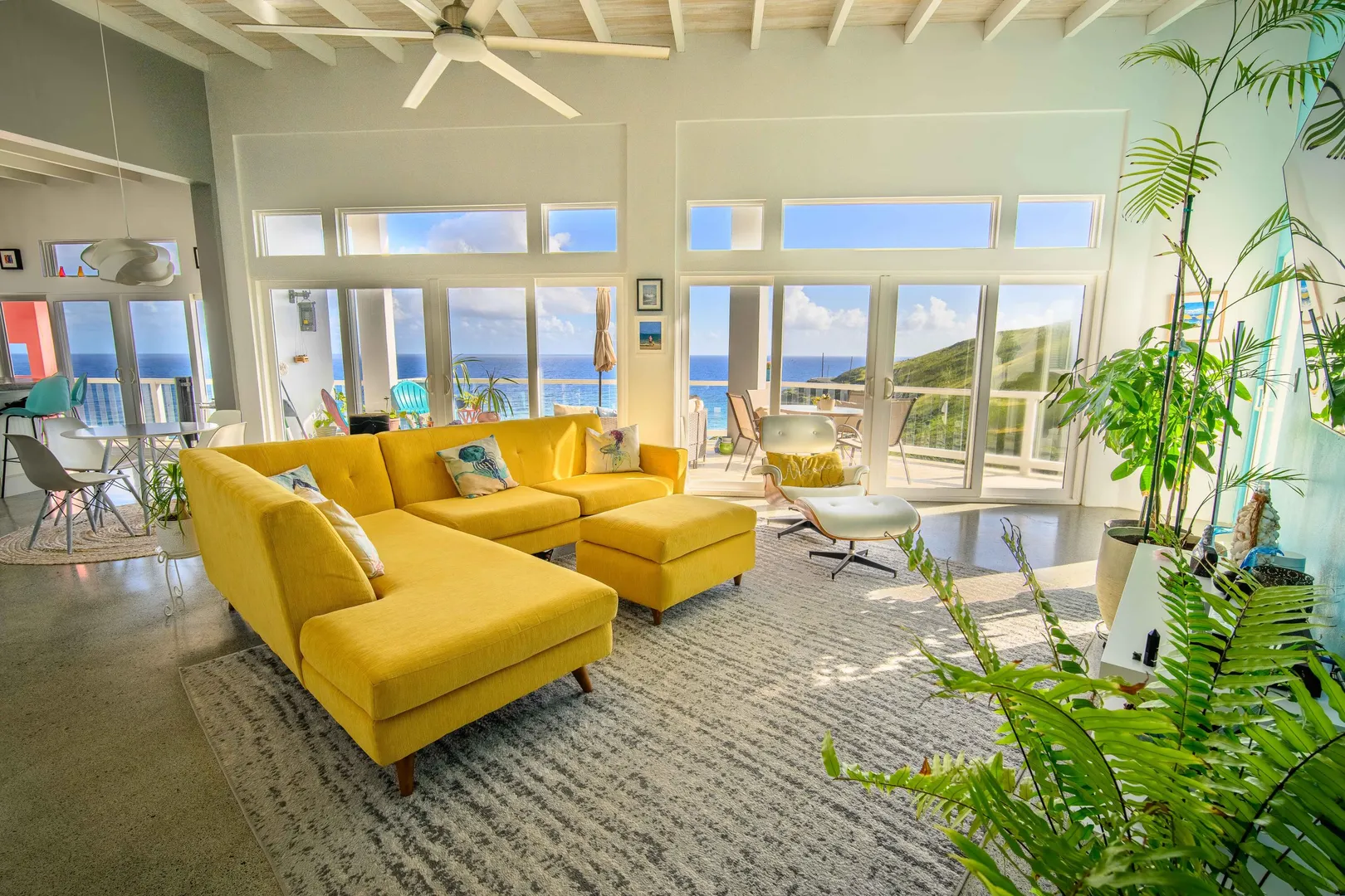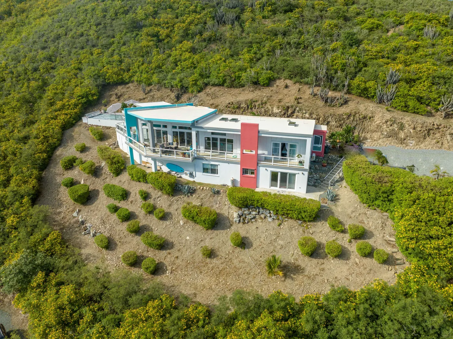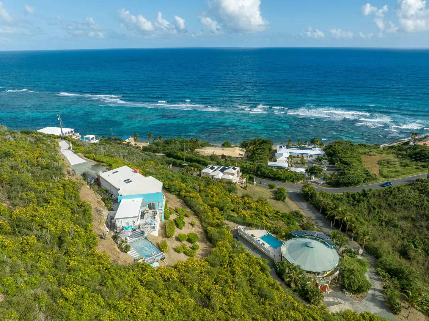 This contemporary home, with expansive views of the Caribbean Sea and the verdant hills of the south shore, was artistically designed by the owner, a renowned architect, Steve Crane. This gem of a home is situated on a quiet and peaceful plot at the end of a road. Relax to the tranquil sound of the waves and watch for the migration of whales from the gallery. Completed just 5 years ago, thoughtful planning went into the design of this three bedroom, three bath home with pool and large galleries. The open concept kitchen with large windows and living space flows out to the gallery and amazing views. The primary bedroom also opens out to the gallery. The bathrooms are artfully designed (see supplement)