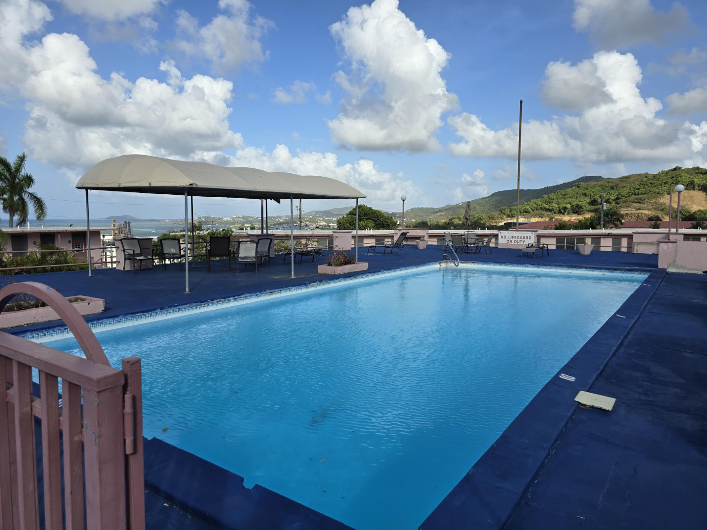 This charming 1 bedroom, 1 bathroom condo is move in ready. Freshly painted, has elegant wooden floors, a cozy yet spacious living area and inviting kitchen. Enjoy the convenience of living close to the pool, where you can lounge and enjoy a day of sunshine. Wake up to breathtaking sea views, Buck Island and of Christiansted. Close to town, beaches, and shopping area. Gated complex. Don't miss this opportunity to embrace island living at its finest!