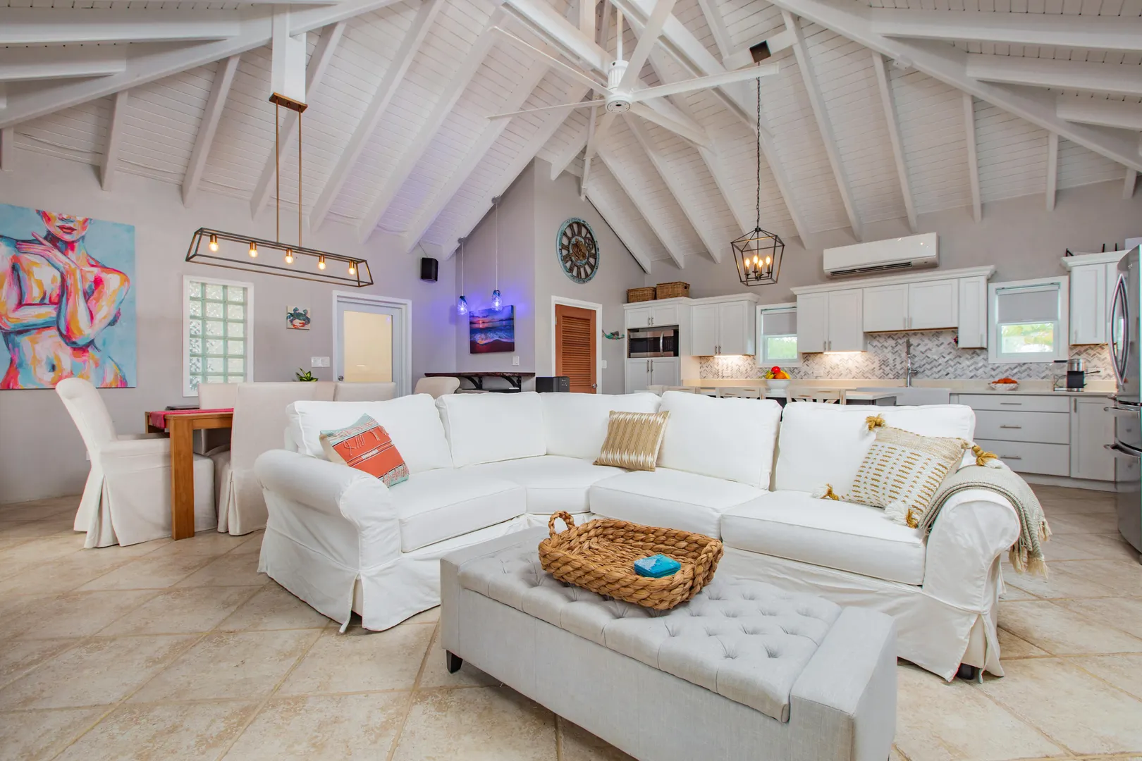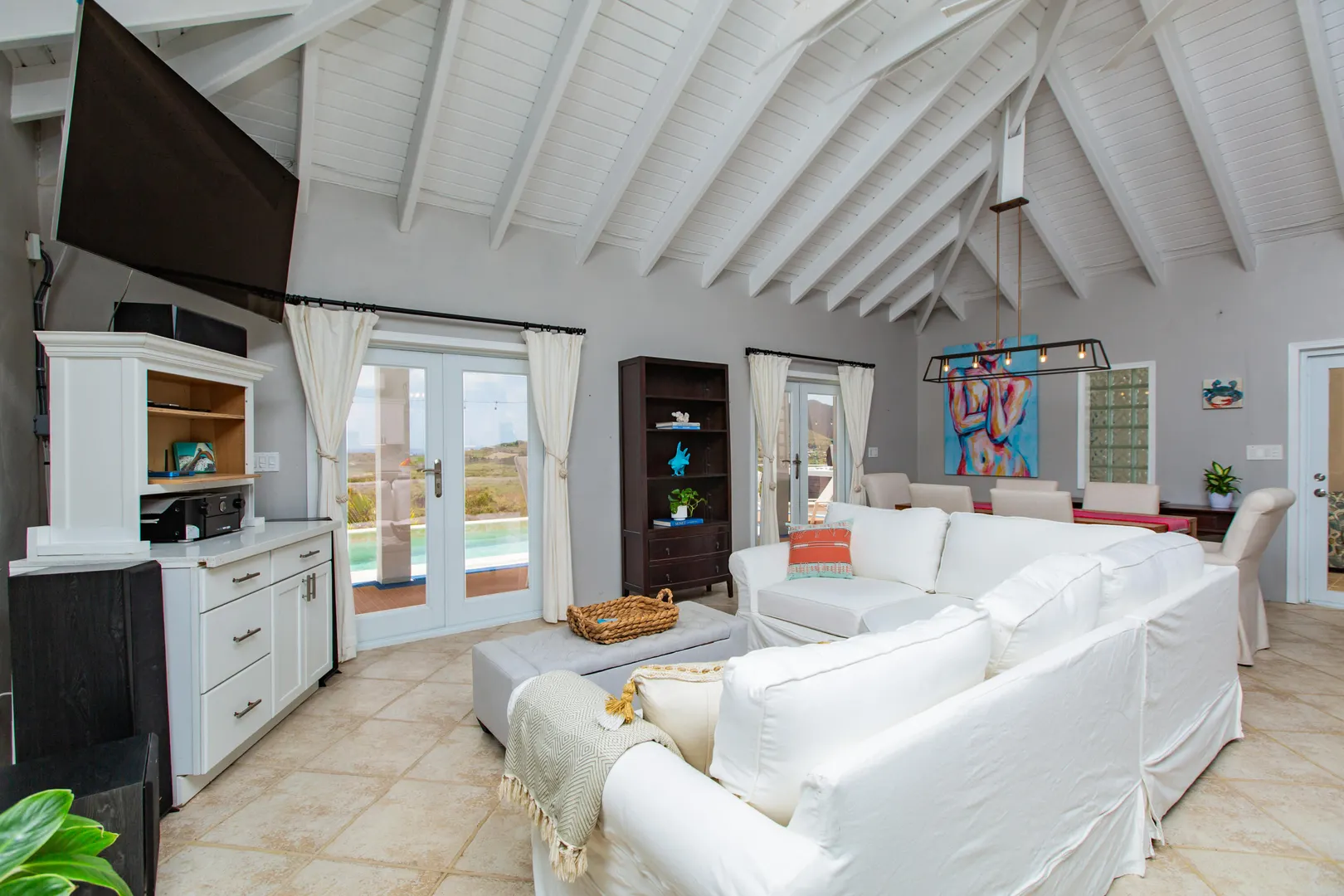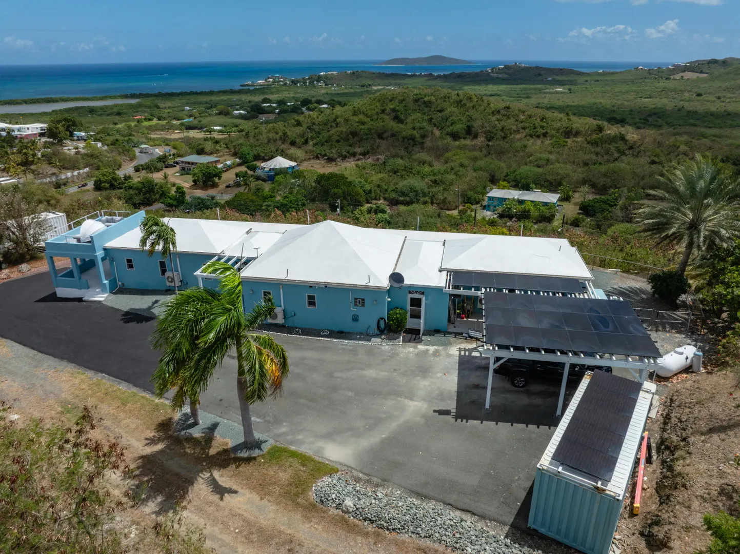 Perched on a breezy East End hilltop, this totally remodeled 2-bedroom, 2.5-bath home has it all -- from panoramic sea views to smart upgrades that make island living easy and fun. Inside, you'll find vaulted ceilings, an open layout, and stylish finishes throughout. Step outside and choose your favorite chill zone -- the brand new upper and lower lounge areas are perfect for sunset dinners, morning coffee, or stargazing under Caribbean skies. This home is set up for comfort and peace of mind with solar panels, TESLA batteries, and a propane generator - practically off grid!. Cool off in the pool, soak in the hot tub, or get creative in your own workshop space -- there's truly something for everyone.