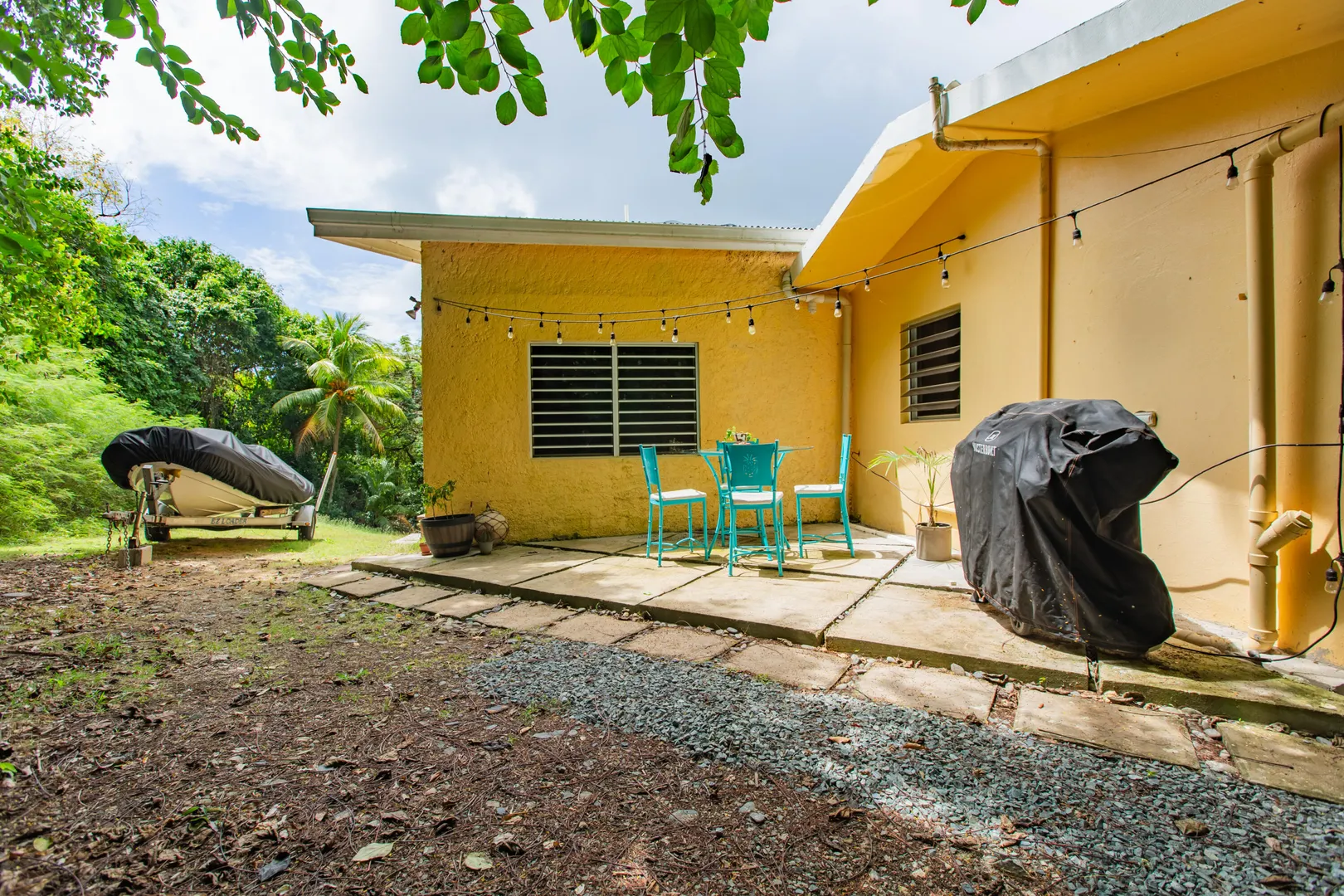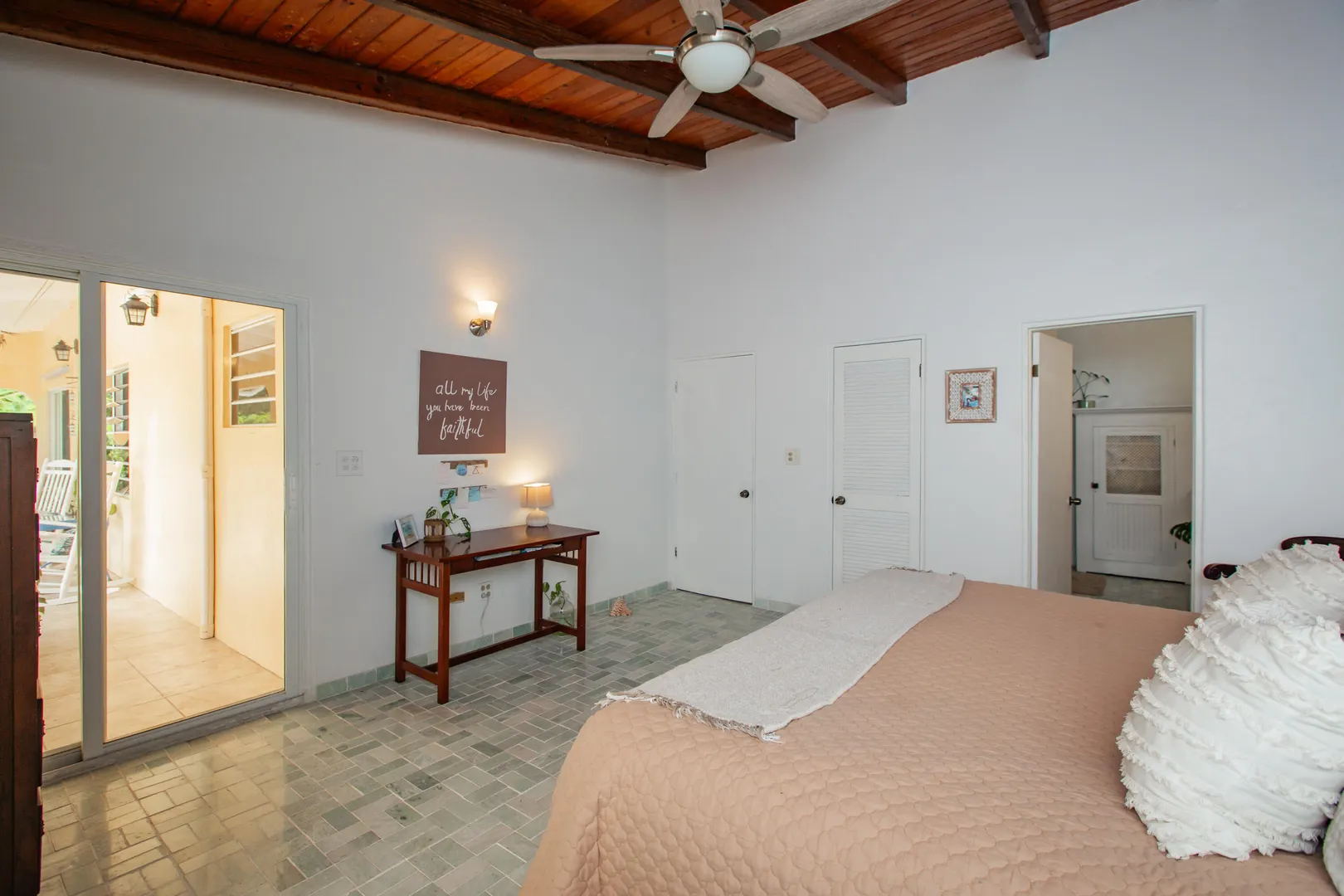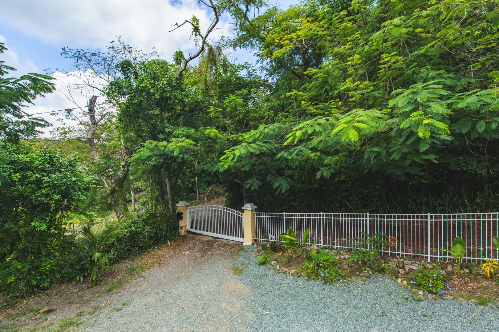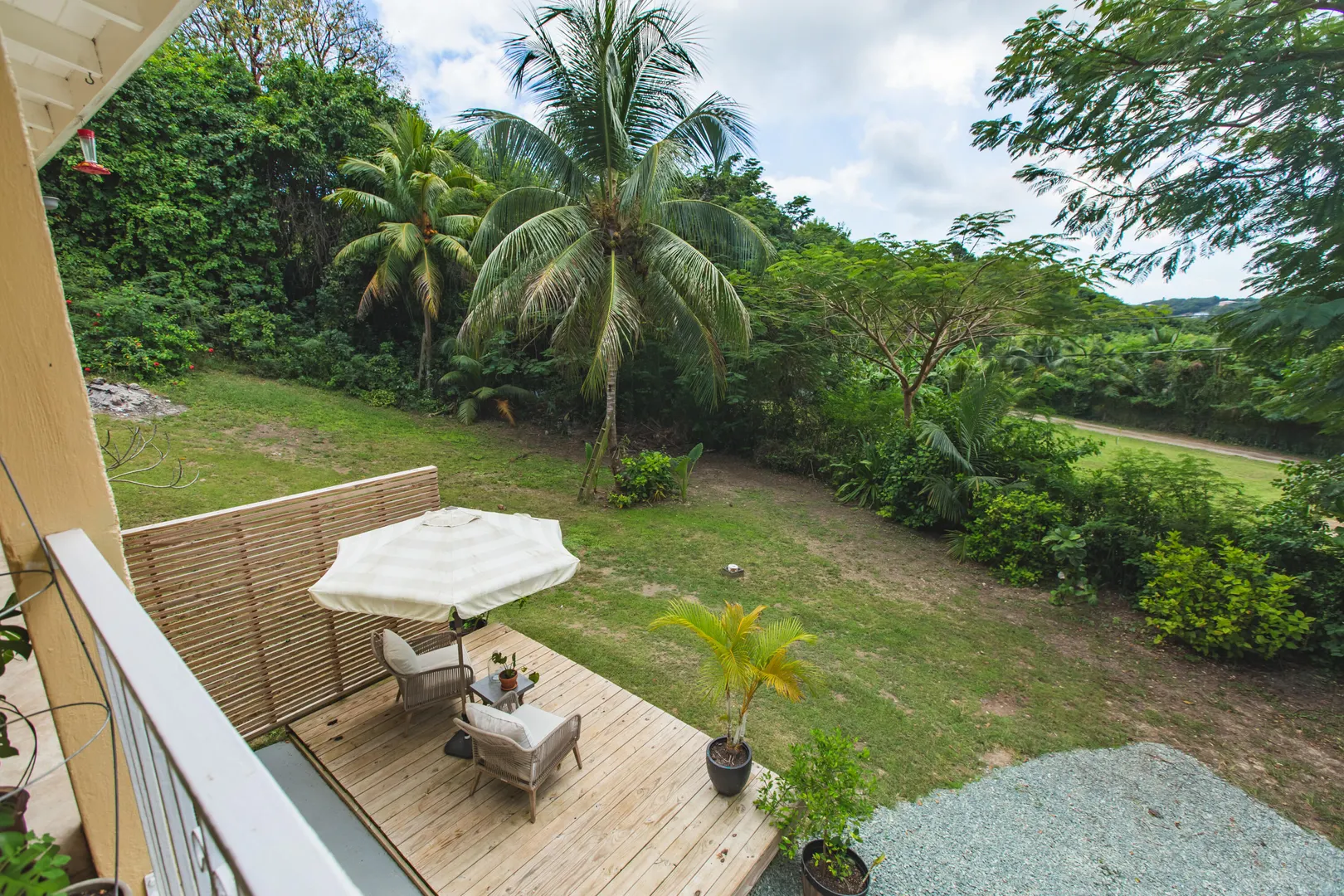 This mid-island oasis truly embodies island life! Tucked away in the hills of La Grande Princess you will find a beautifully updated 3 bedroom 2 bathroom concrete home with an adorable apartment below- nearly 2700 square feet of interior living space! Perfect for a family or make this a wonderful investment property. Gated and fenced, the home offers privacy with lush landscaping and conveniently located to nearby beaches and shopping. Beautiful vaulted ceilings and lovely natural light greet you as you enter. This spacious home is well appointed with AC in all bedrooms, updated appliances, whole house filtration and gorgeous bathroom updates. Most furnishings will convey. Updated sliders and windows can also be found.The kitchen features granite countertops, stainless appliances, plenty of space for entertaining, a large pantry and laundry room.