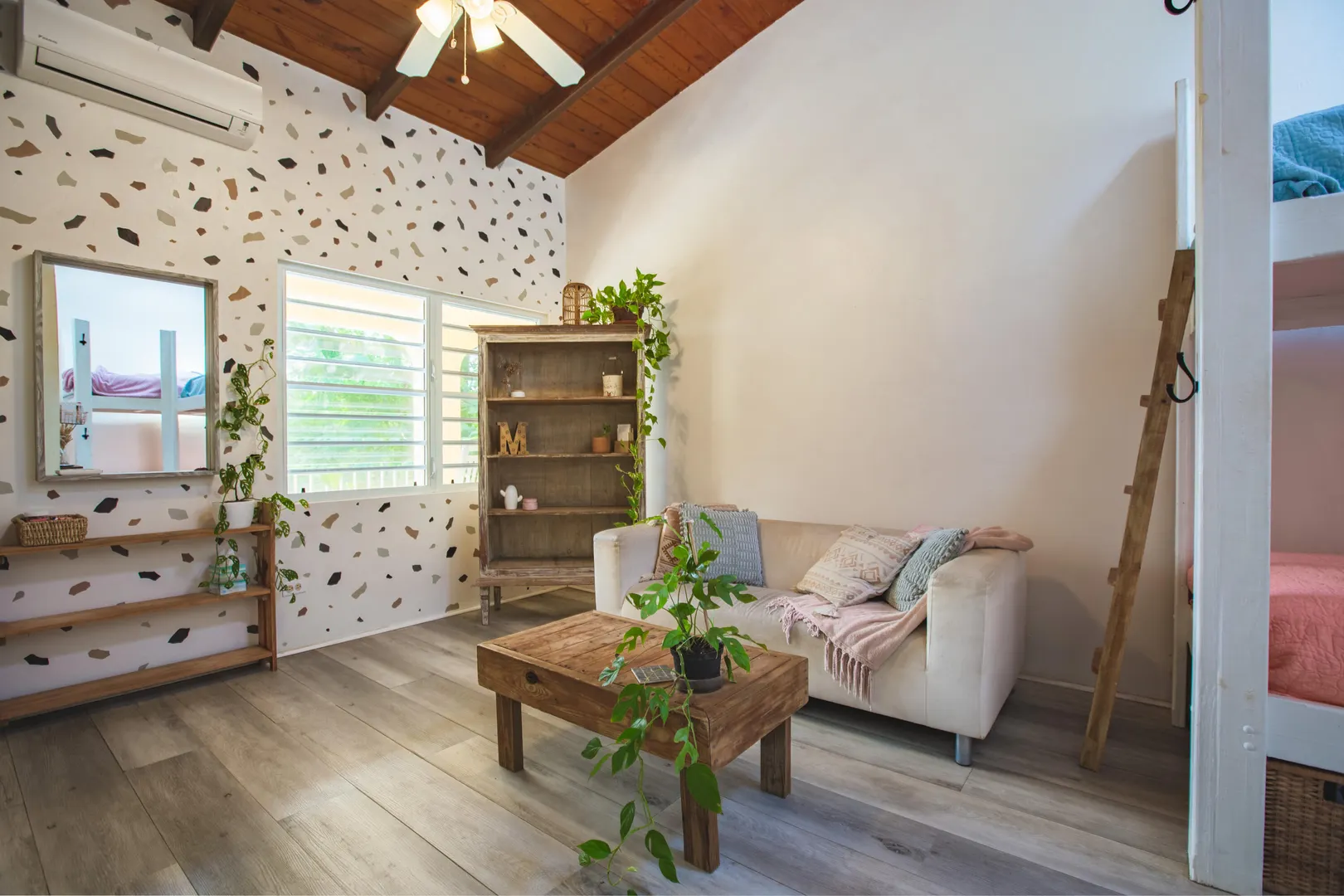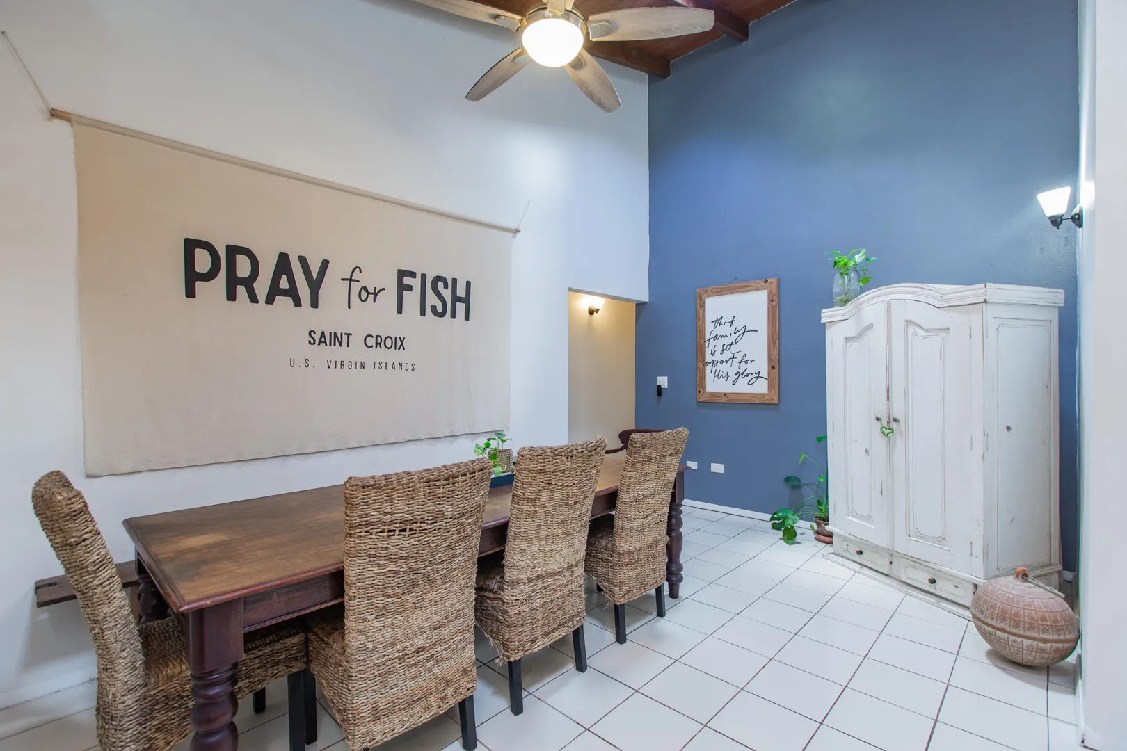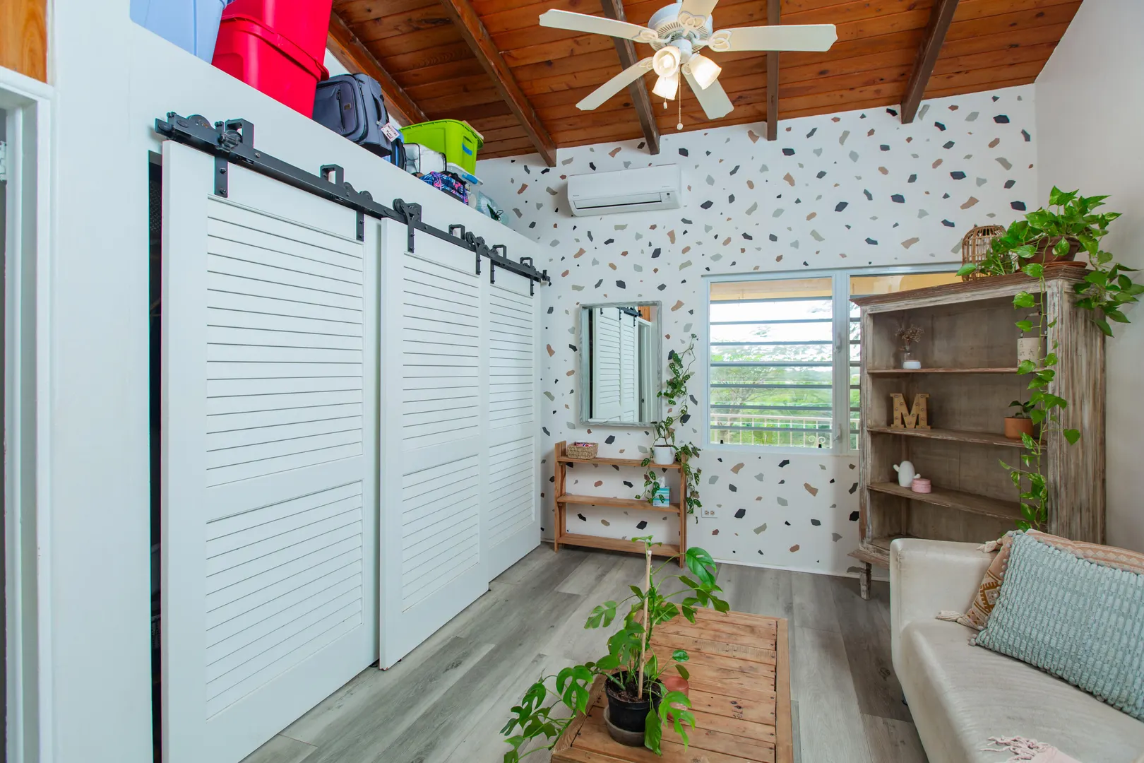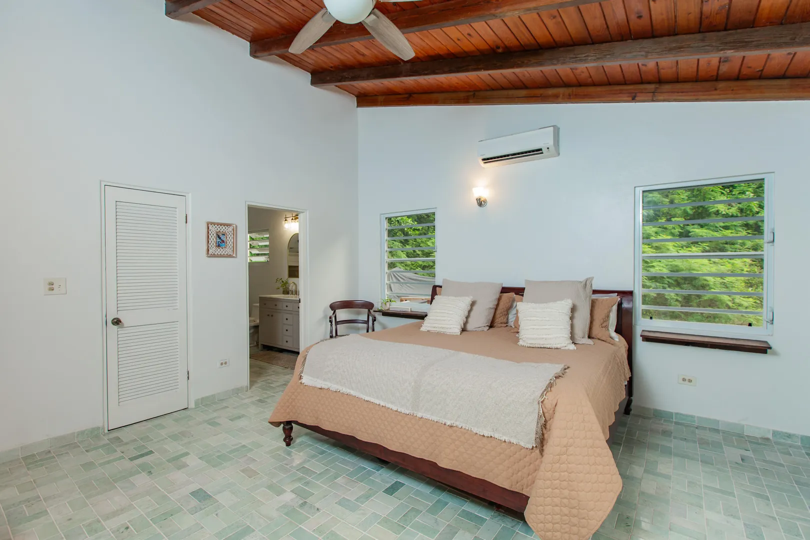 This mid-island oasis truly embodies island life! Tucked away in the hills of La Grande Princess you will find a beautifully updated 3 bedroom 2 bathroom concrete home with an adorable apartment below- nearly 2700 square feet of interior living space! Perfect for a family or make this a wonderful investment property. Gated and fenced, the home offers privacy with lush landscaping and conveniently located to nearby beaches and shopping. Beautiful vaulted ceilings and lovely natural light greet you as you enter. This spacious home is well appointed with AC in all bedrooms, updated appliances, whole house filtration and gorgeous bathroom updates. Most furnishings will convey. Updated sliders and windows can also be found.The kitchen features granite countertops, stainless appliances, plenty of space for entertaining, a large pantry and laundry room.
