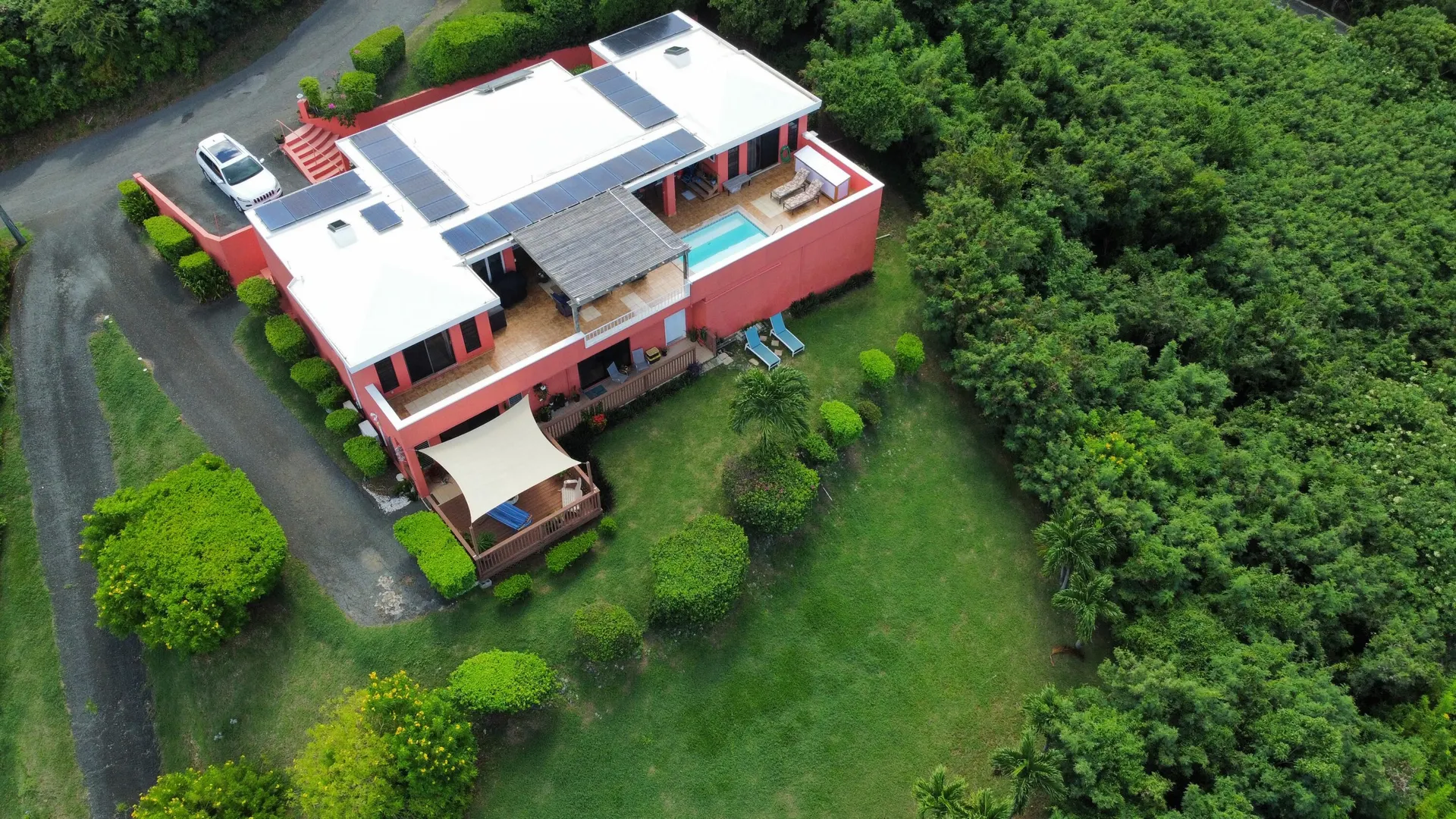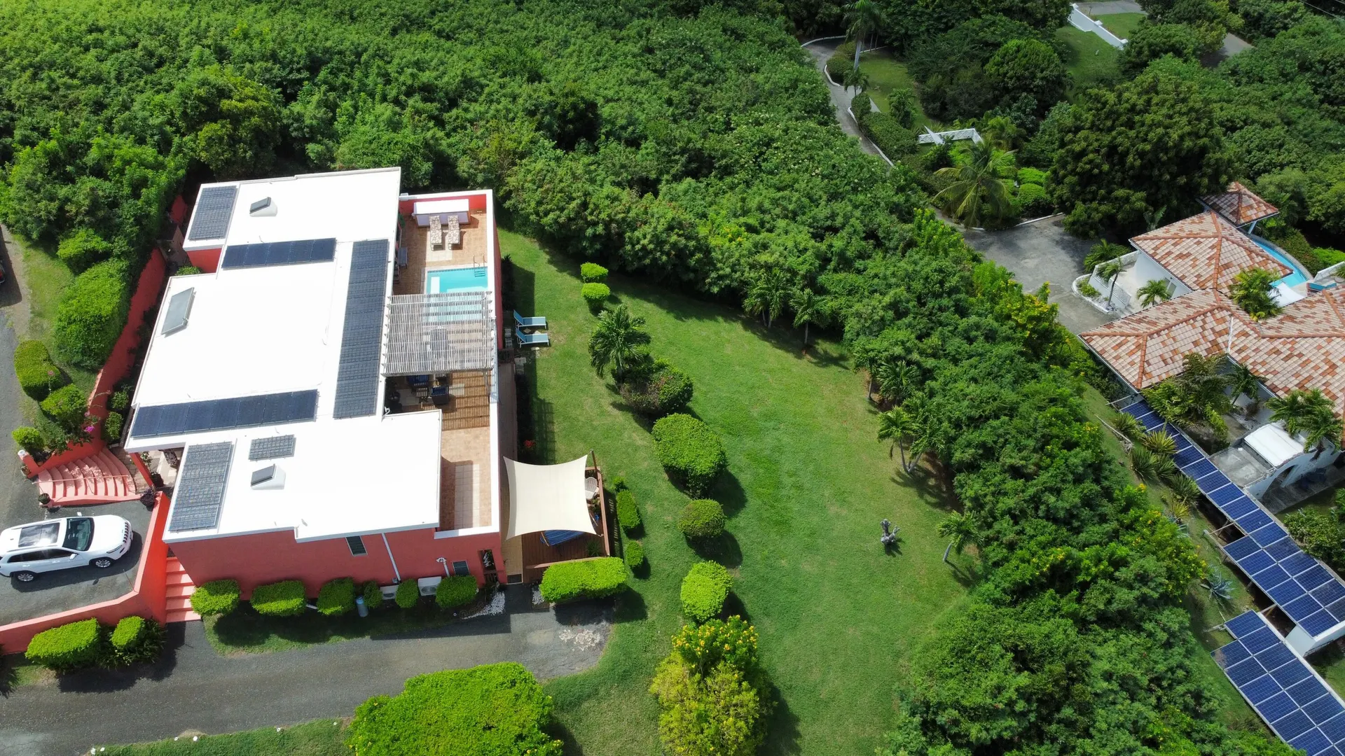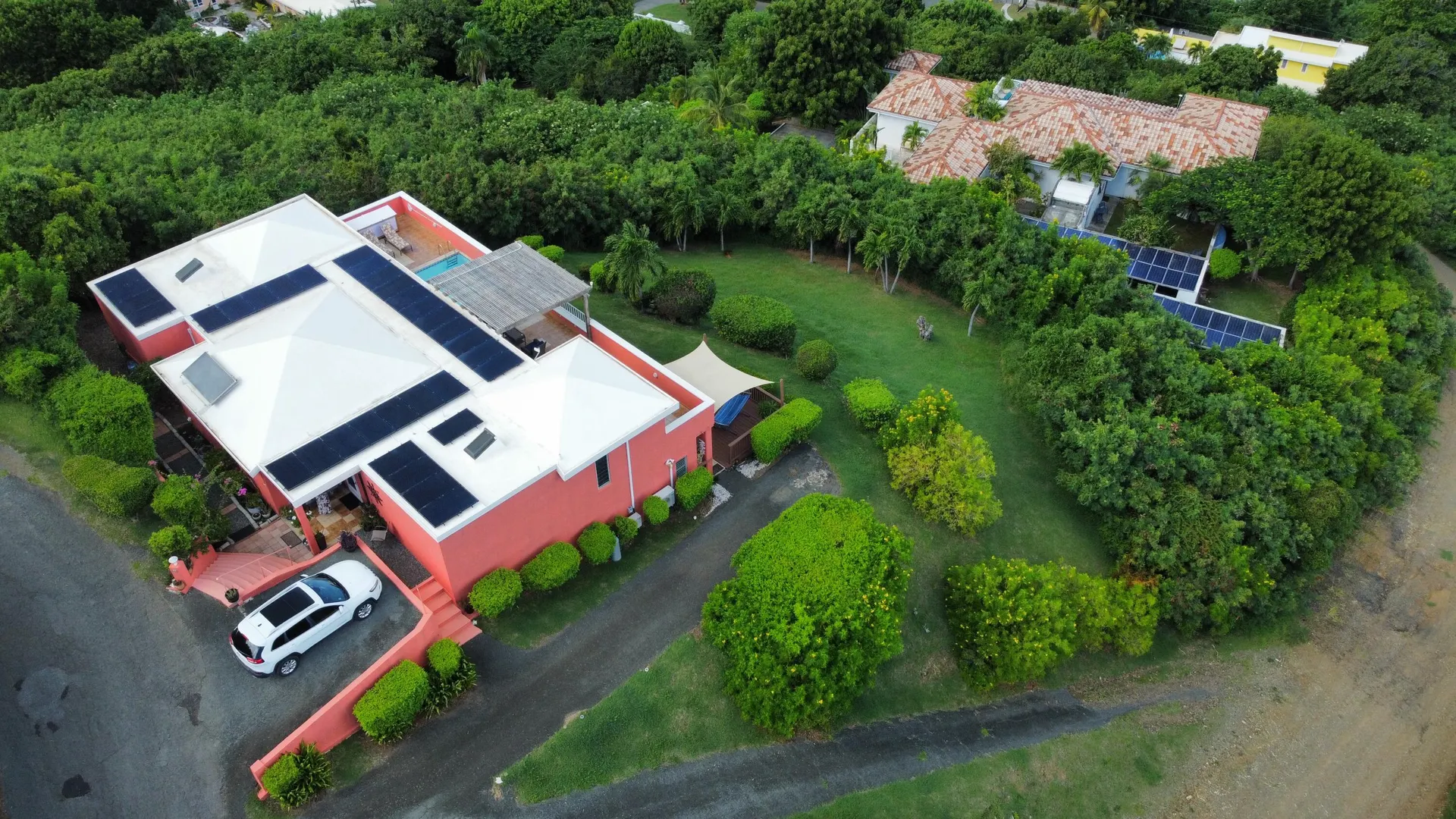 Show Stopper! Sparkling Gem. Immaculate, Pristine & Private. This is your dream villa. Matching 2 bedroom, 2 bath ensuite bedrooms, overlooking the panoramic views of Green Cay and the memorizing Caribbean Sea. Dreamy new kitchen with center isle, granite solid surface counter top and SS appliances. So many bells and whistles, solar, AC, dipping pool, magazine worthy exterior seating, generator, shutters, storage galore. Adorable apartment with its own private, shaded deck. and parking. Move in ready. Fully furnished and equipped. See amenities list in Supplement Remarks.9 Parara Amenities