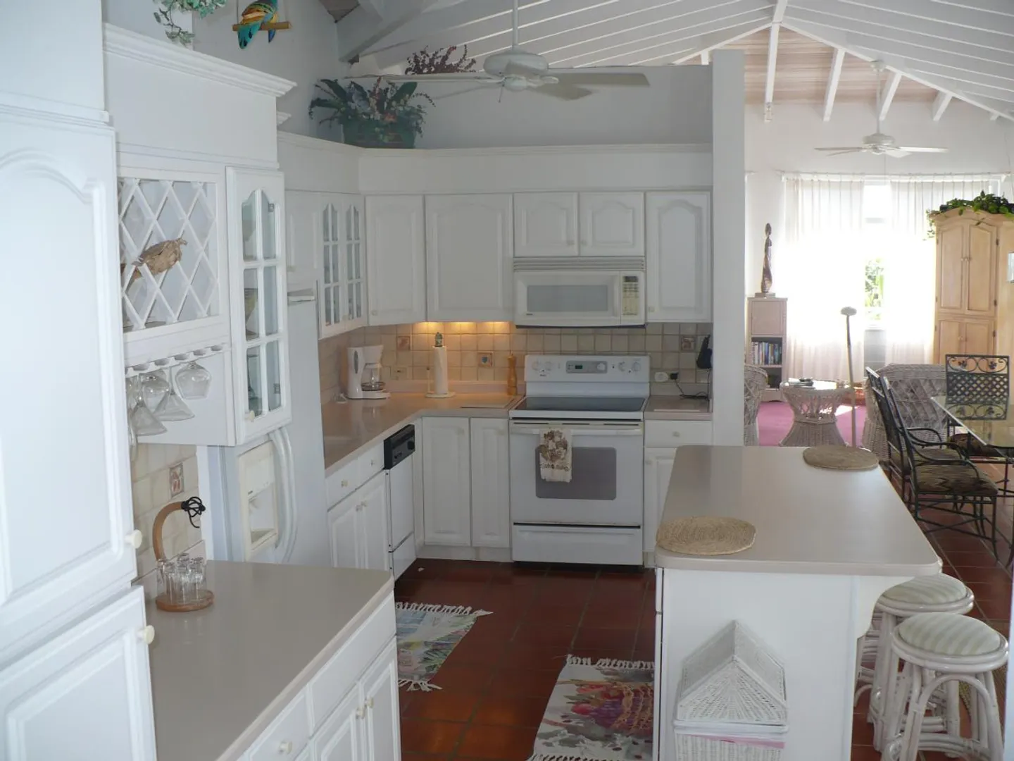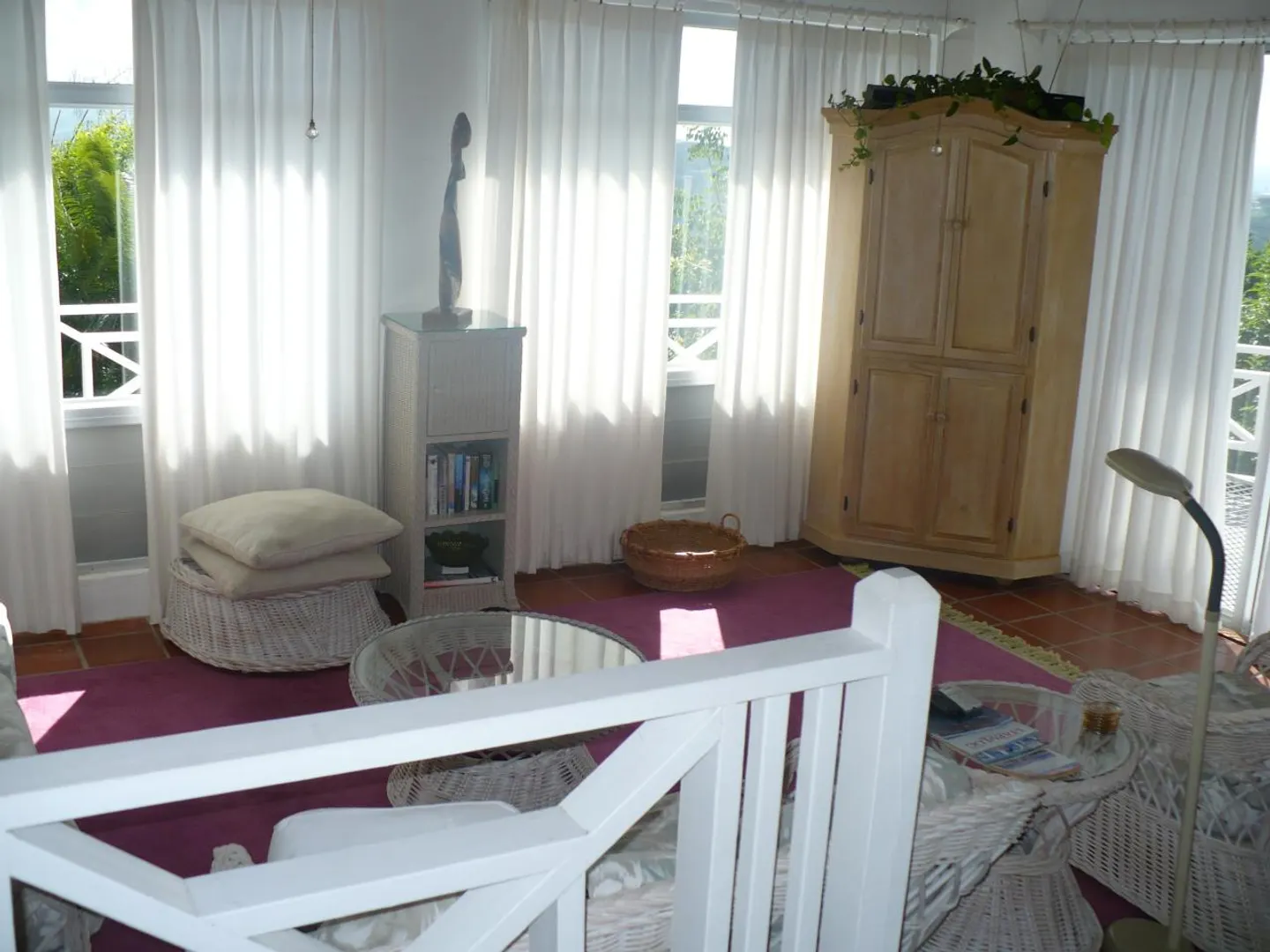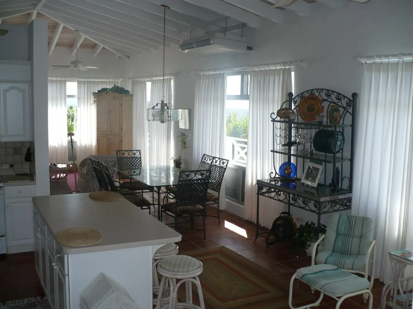 Charming Caribbean full-time or vacation home, lends a brilliance of seaviews, breezes, and tropical surroundings. The home has a long flowing design with bedrooms away from the main living area. Each bedroom has it's own private bathroom. Located in the mountains off of Scenic Rd.come and escape to much privacy and tranquility.
