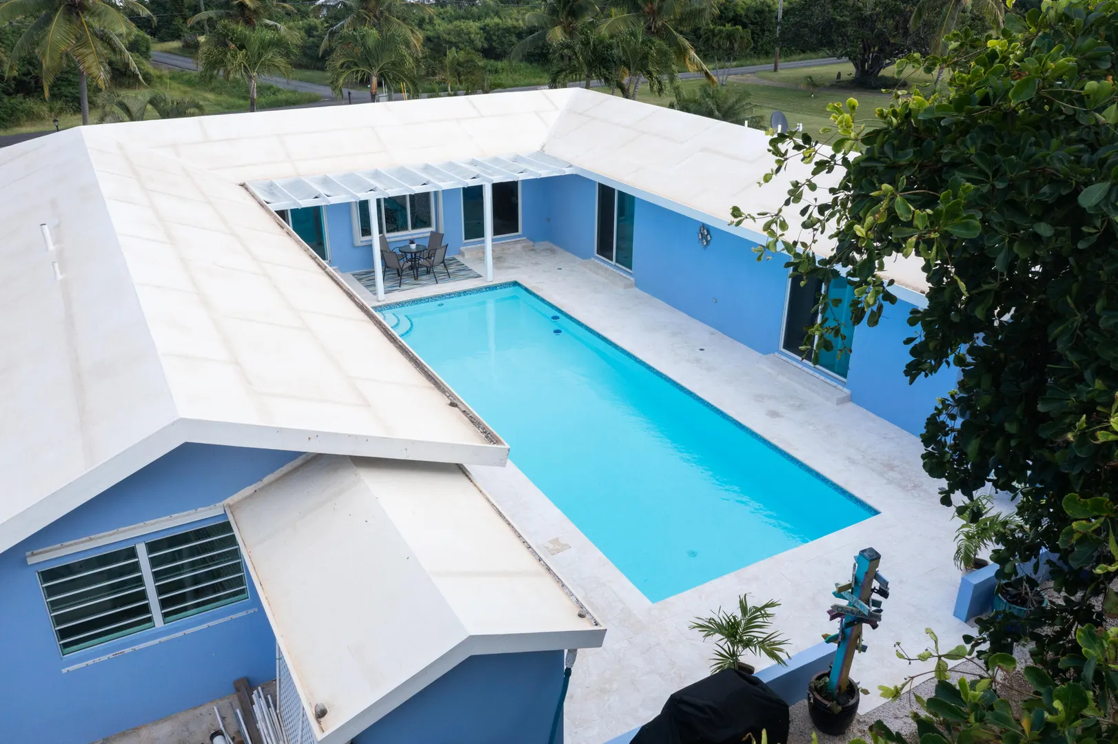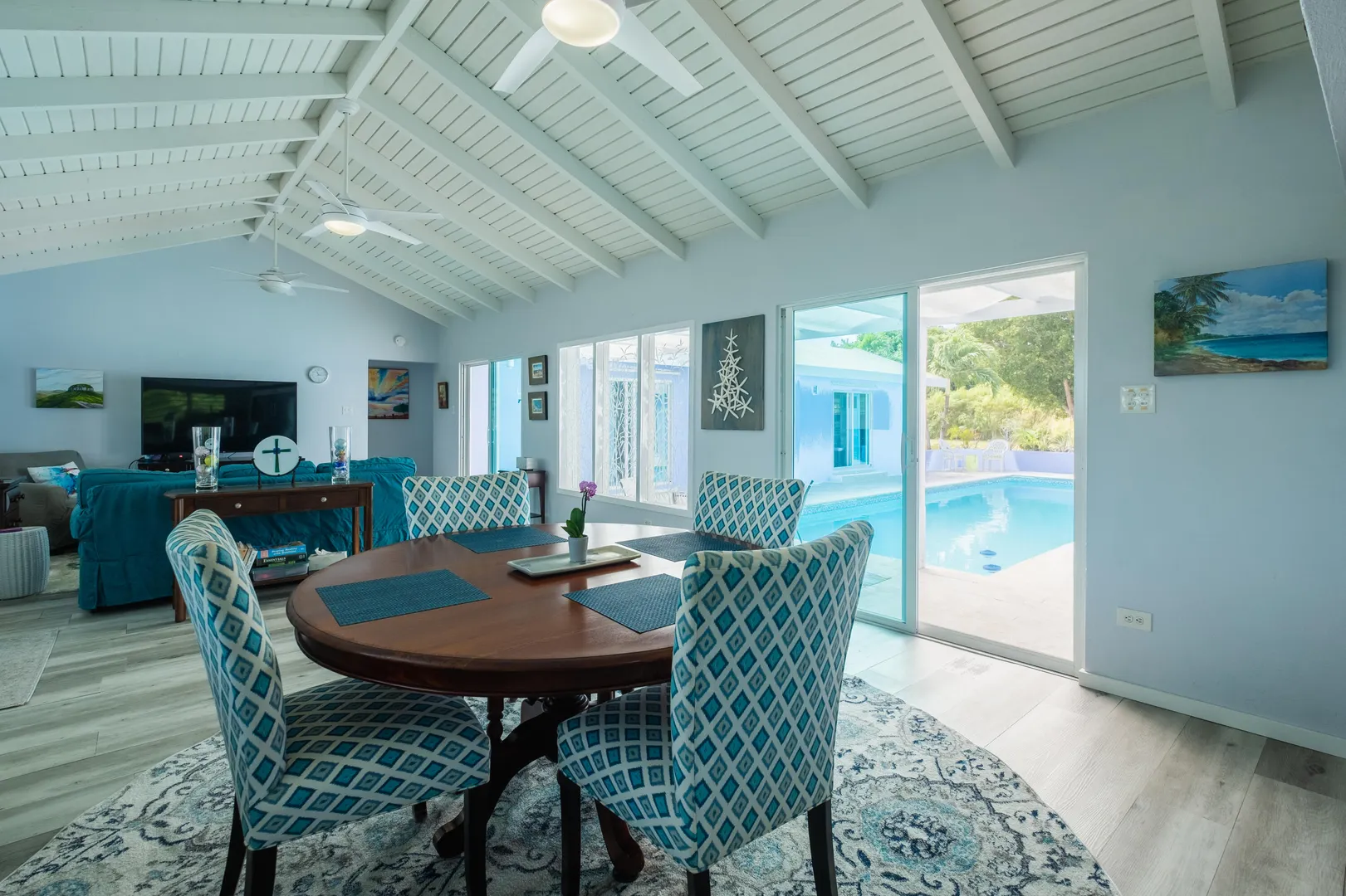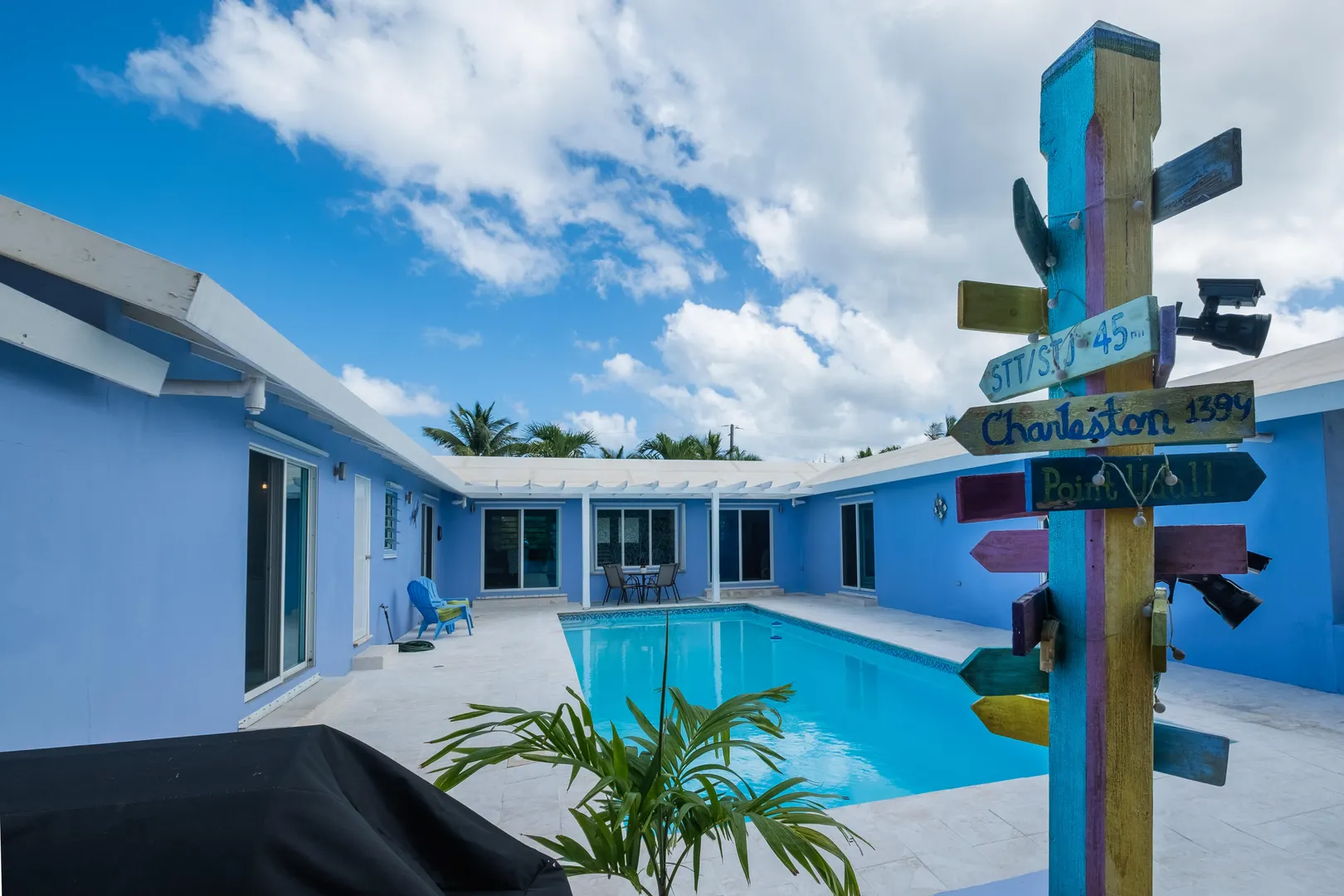 Beautiful 4-bedroom home in the gated beach community of Judith's Fancy, has been lovingly updated with new windows and doors, flooring, electrical panel, smart pool with new water-line tiles, and a fantastic large open kitchen boasting tons of storage and counterspace. Stainless steel appliances, large gas stove, pot filler, stainless farm sink, and so much more. The fourth bedroom is ideal as a mother-in-law suite, with its own breakfast refrigerator and sink. You will love the comfortable one-level living, the very private pool and close proximity to the beach for morning walks. This home is offered furnished and includes a 14KW propane generator and a ''Zero Turn'' Mower.
