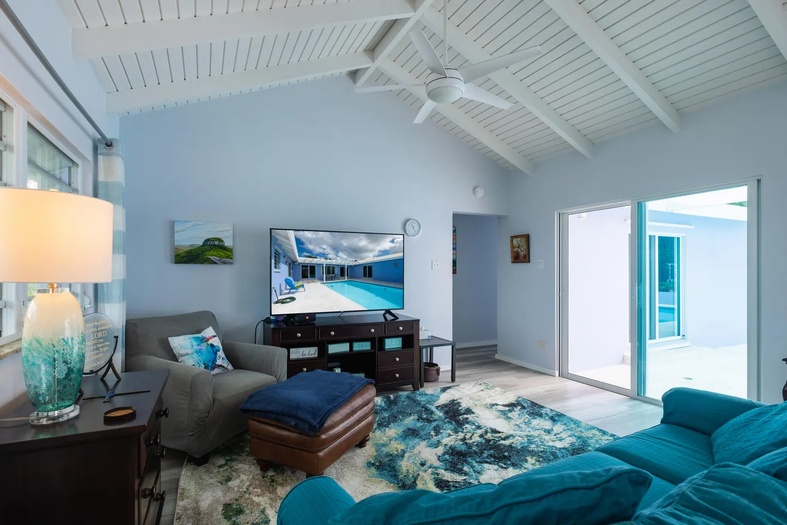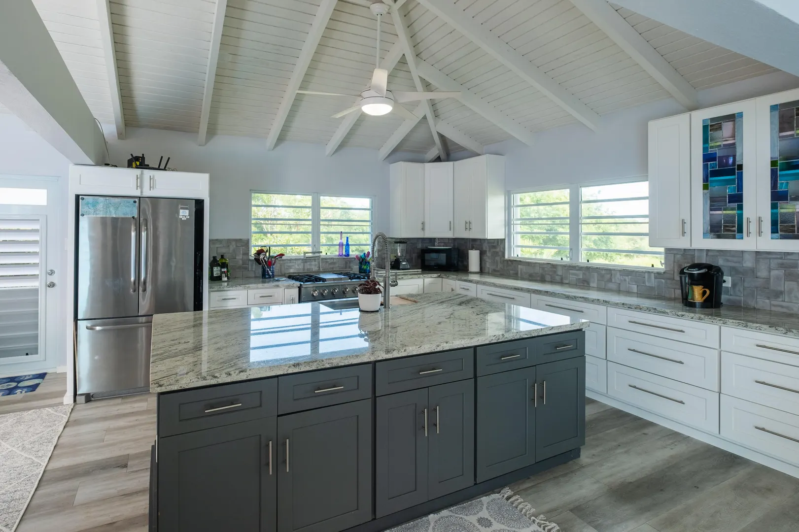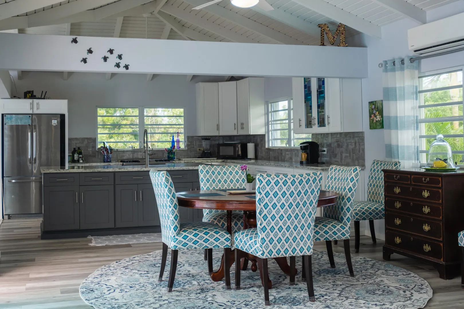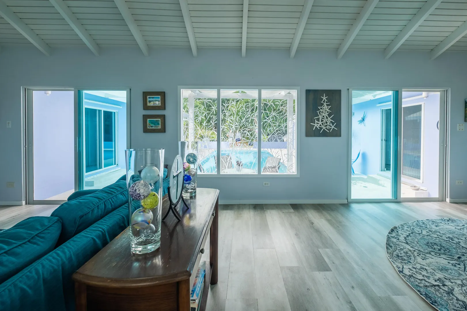 Beautiful 4-bedroom home in the gated beach community of Judith's Fancy, has been lovingly updated with new windows and doors, flooring, electrical panel, smart pool with new water-line tiles, and a fantastic large open kitchen boasting tons of storage and counterspace. Stainless steel appliances, large gas stove, pot filler, stainless farm sink, and so much more. The fourth bedroom is ideal as a mother-in-law suite, with its own breakfast refrigerator and sink. You will love the comfortable one-level living, the very private pool and close proximity to the beach for morning walks. This home is offered furnished and includes a 14KW propane generator and a ''Zero Turn'' Mower.