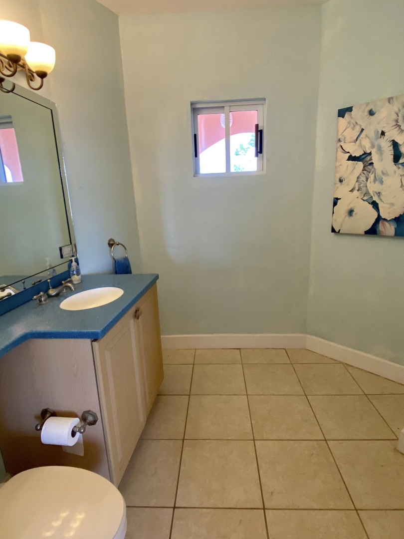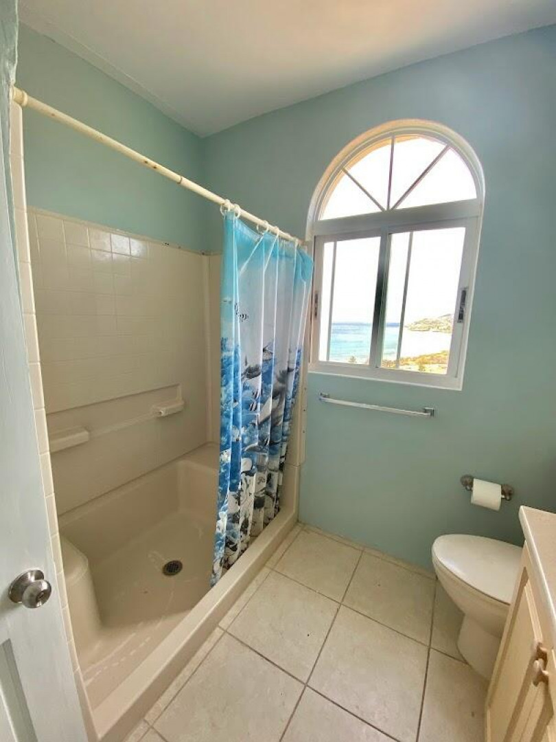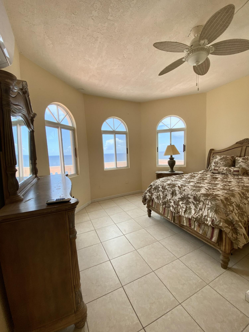 Huge prviate home with lots of space for everyone. This is a 4 bedroom furnished home, each bedroom with it's own bath and AC unit. Enjoy the majestic seaviews from the vast galleries off of the living area. Dine al fresco on the gallery. Popular dive spots and sandy beaches, and restaurants are just down the road.