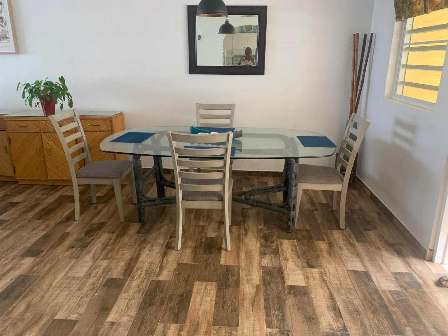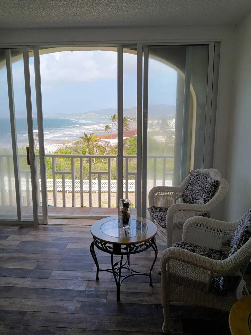 Condo has been recently renovated. New flooring, kitchen counters. and backsplash, Windows have been replaced. Fully air-conditioned. Apartment is nicely furnished. The view is breathtaking-all the way to Buck Island, the Buccaneer and Christiansted town.