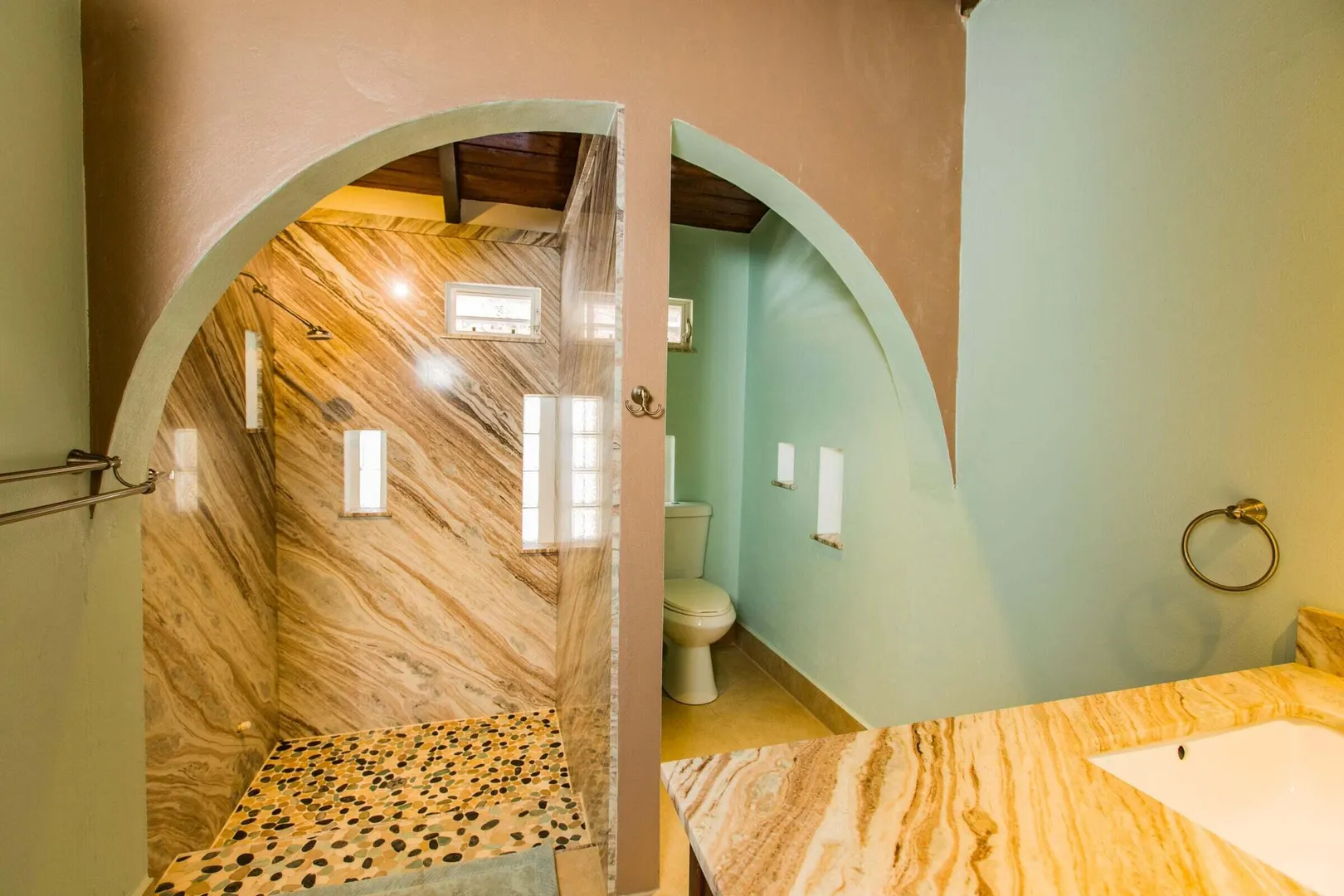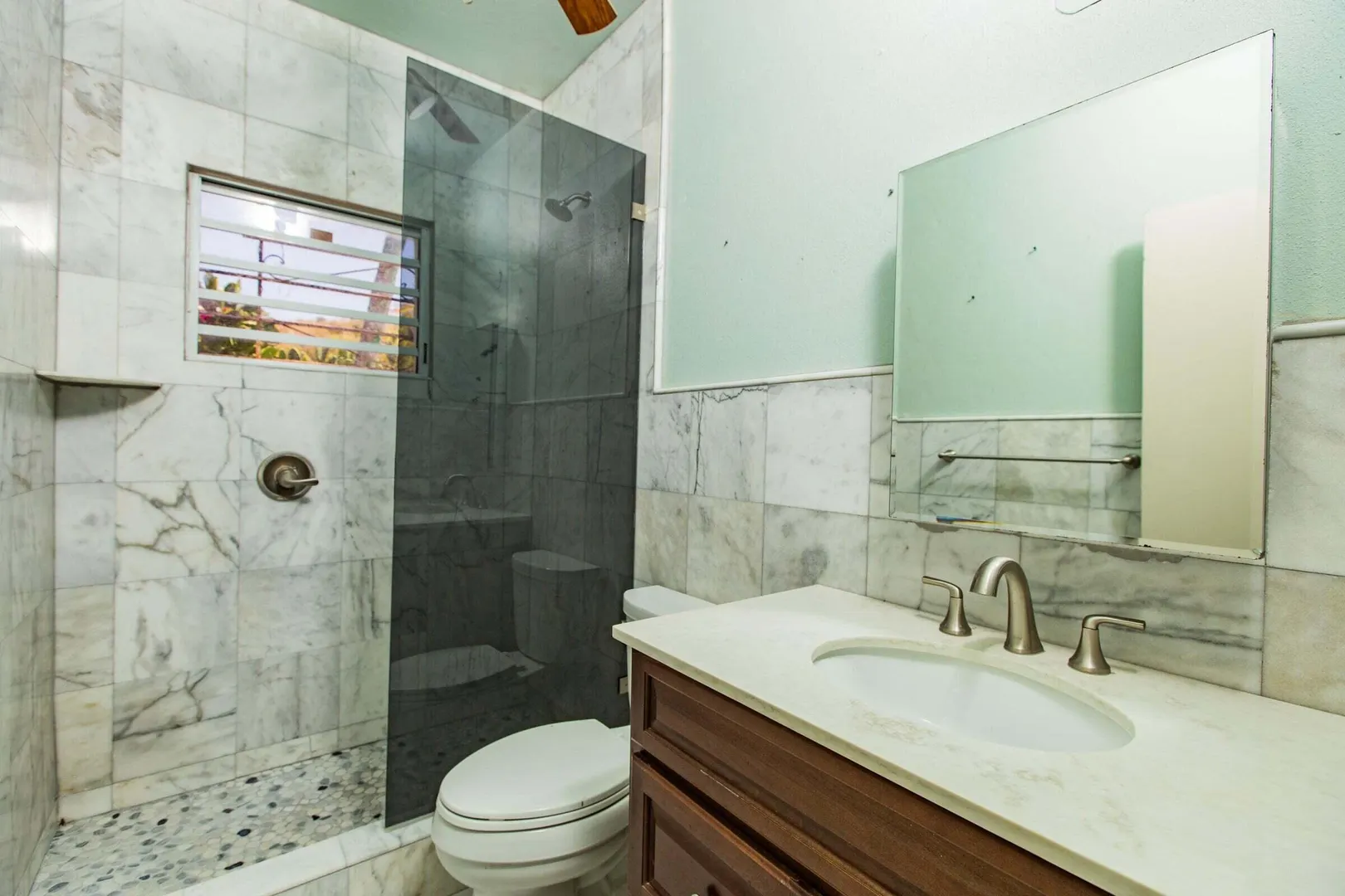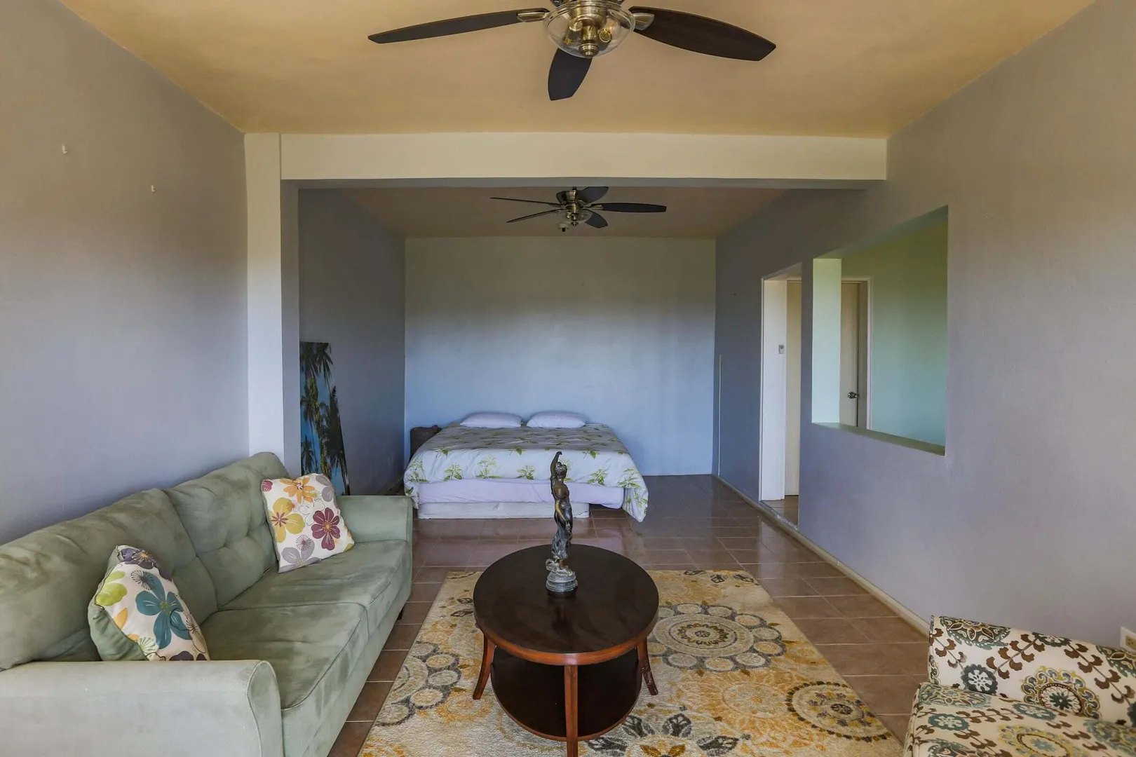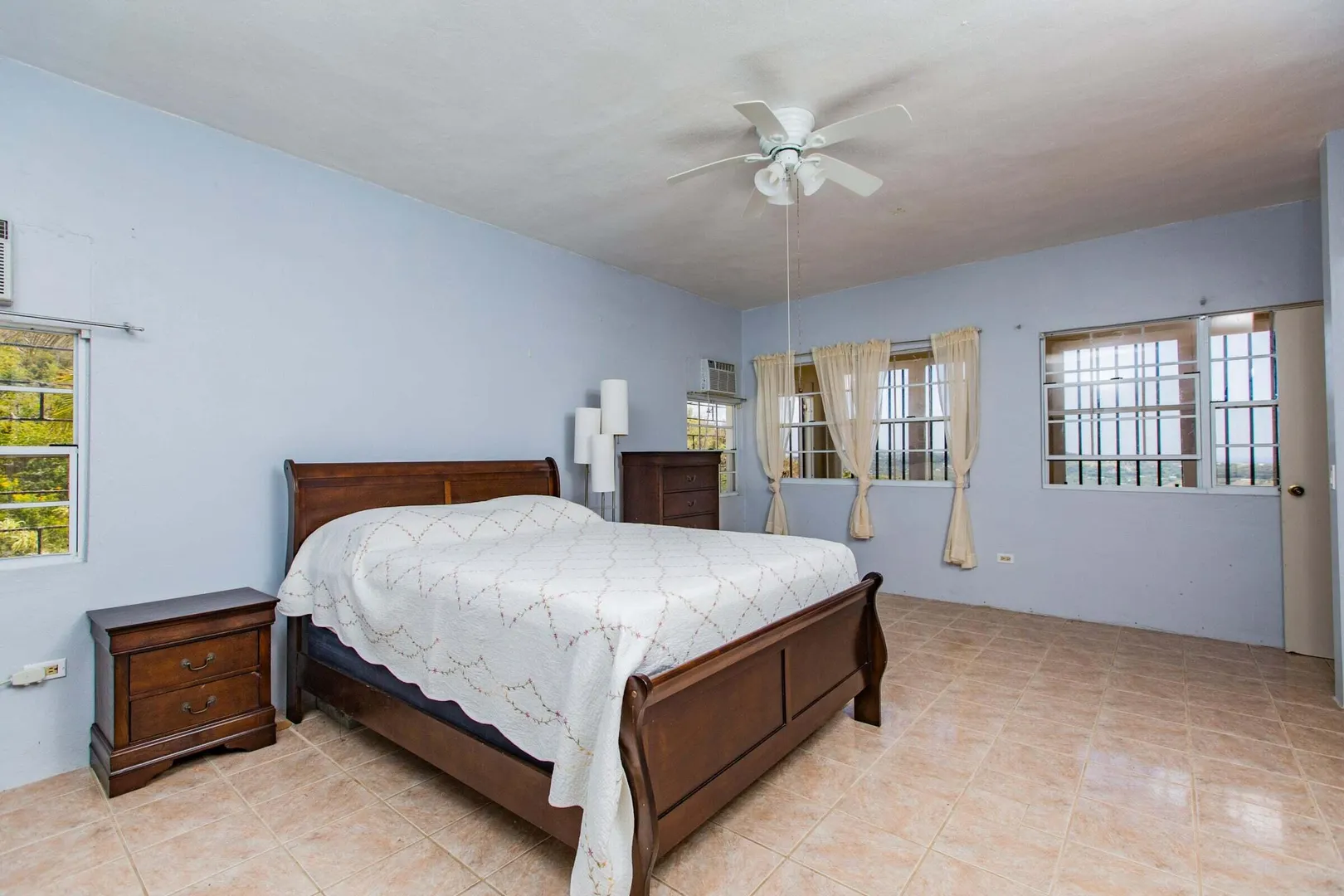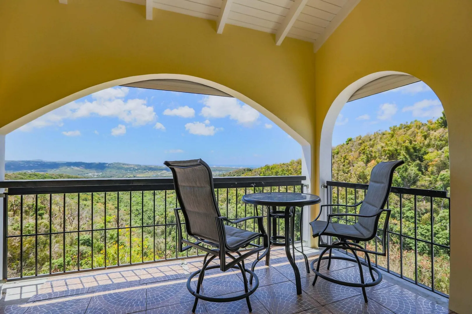 Nestled in the peaceful hillside near St Croix's North Shore, you will find this spacious two story home that features two large ensuite bedrooms on the main level, accompanied by two additional bedrooms and a guest bath. The roomy living space and well appointed kitchen open to a large gallery perfect for dining, entertaining, and taking in the spectacular views of the south shore. The large apartment on the lower level is ideal for guests or generating rental income, and has a private entrance. This solid concrete home has been meticulously maintained, & is minutes from Cane Bay and Salt River. Other amenities include gated entry, security system, generator, roll down high impact shutters, and much more. Bonus unfinished cottage on the plot below is waiting for your finishing touches.