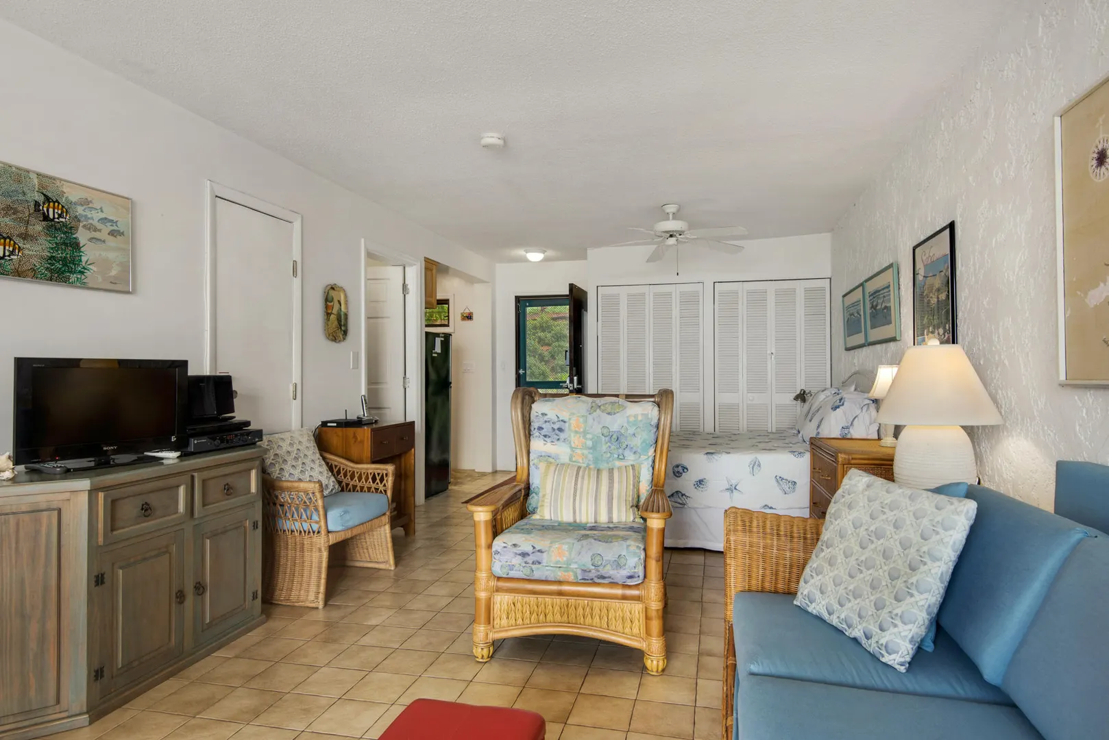 Beautifully upgraded spacious studio unit, in the desireable, waterfront Saba building. Just steps from the pool and office, and one of the closest units to the beach. Coveted corner unit provides extra privacy, and extra window on patio. The remodeled interior is tastefully furnished and decorated, perfect for a turnkey successful short term rental. Split AC is quiet and efficient. Has been a very successful short term rental with many returning guests. Unique opportunity to own one of the best units in the best location.