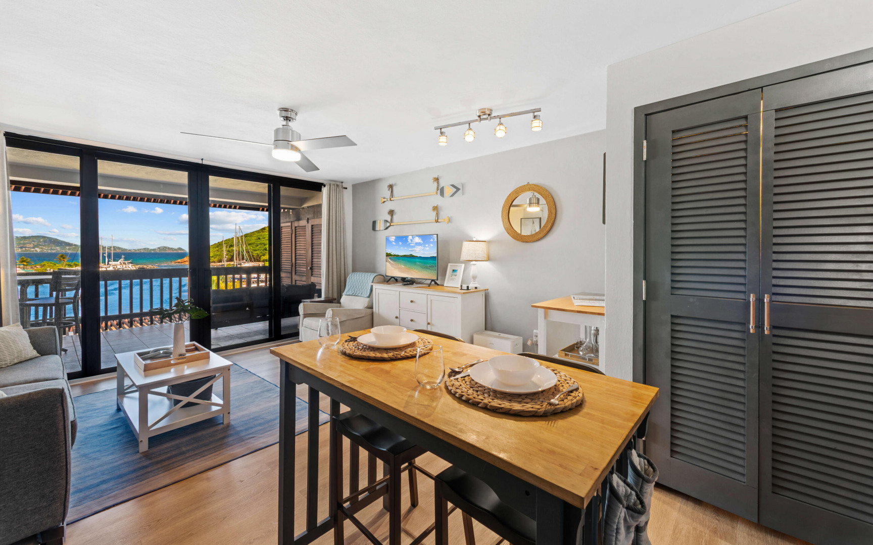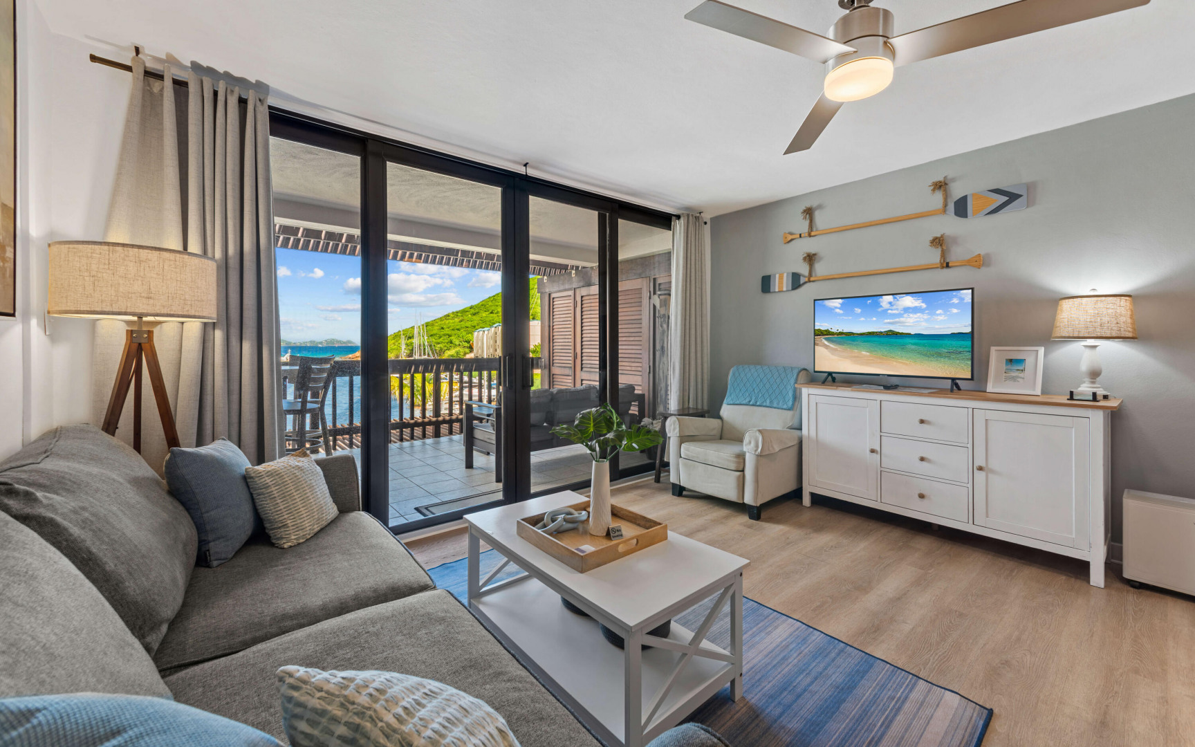 Enjoy the best of Caribbean living in this beautifully renovated, two-story, marina-front villa located in the sought after Sapphire Beach Resort & Marina. Spanning approximately 1,100 sq. ft., this 1BR/2BA condo offers top floor cathedral wood-plank ceilings, stylish finishes, and two private balconies showcasing panoramic views of the marina, St. John, and neighboring Cays.Sold fully furnished, and turnkey, the villa comfortably sleeps six with a king suite, queen Murphy bed, and queen sleeper sofa. Perfectly designed as a ready-made income producer with a strong track record as a short-term rental.From your door, stroll to Sapphire Beach for snorkeling in turquoise waters, relax at the oceanfront pool, or dine on-site at SeaSalt, Sapphire Beach Bar and Paradise Pie. Withboutique shopping at Naia, coffee at Beach Buzz and a full service marina offering fishing, power and sailboat charters as well as dinghy and Jet Ski rentals, every day feels like a vacation.