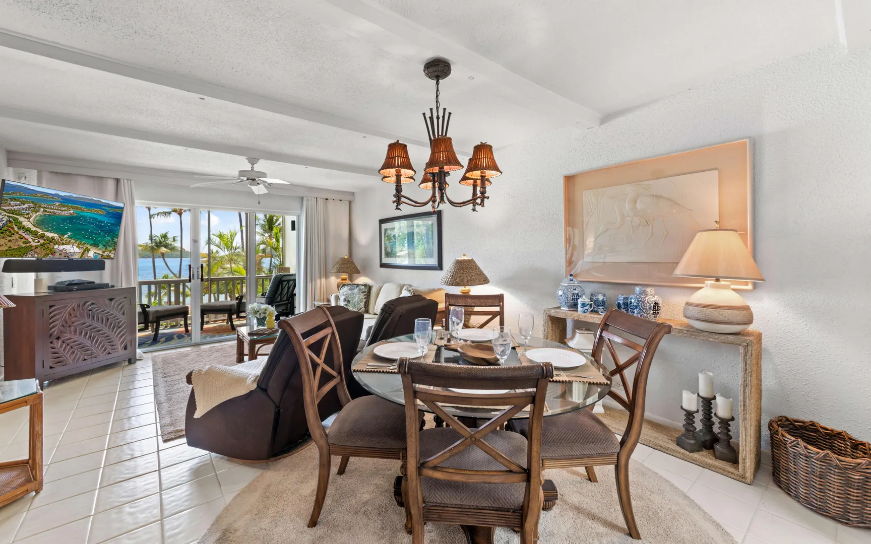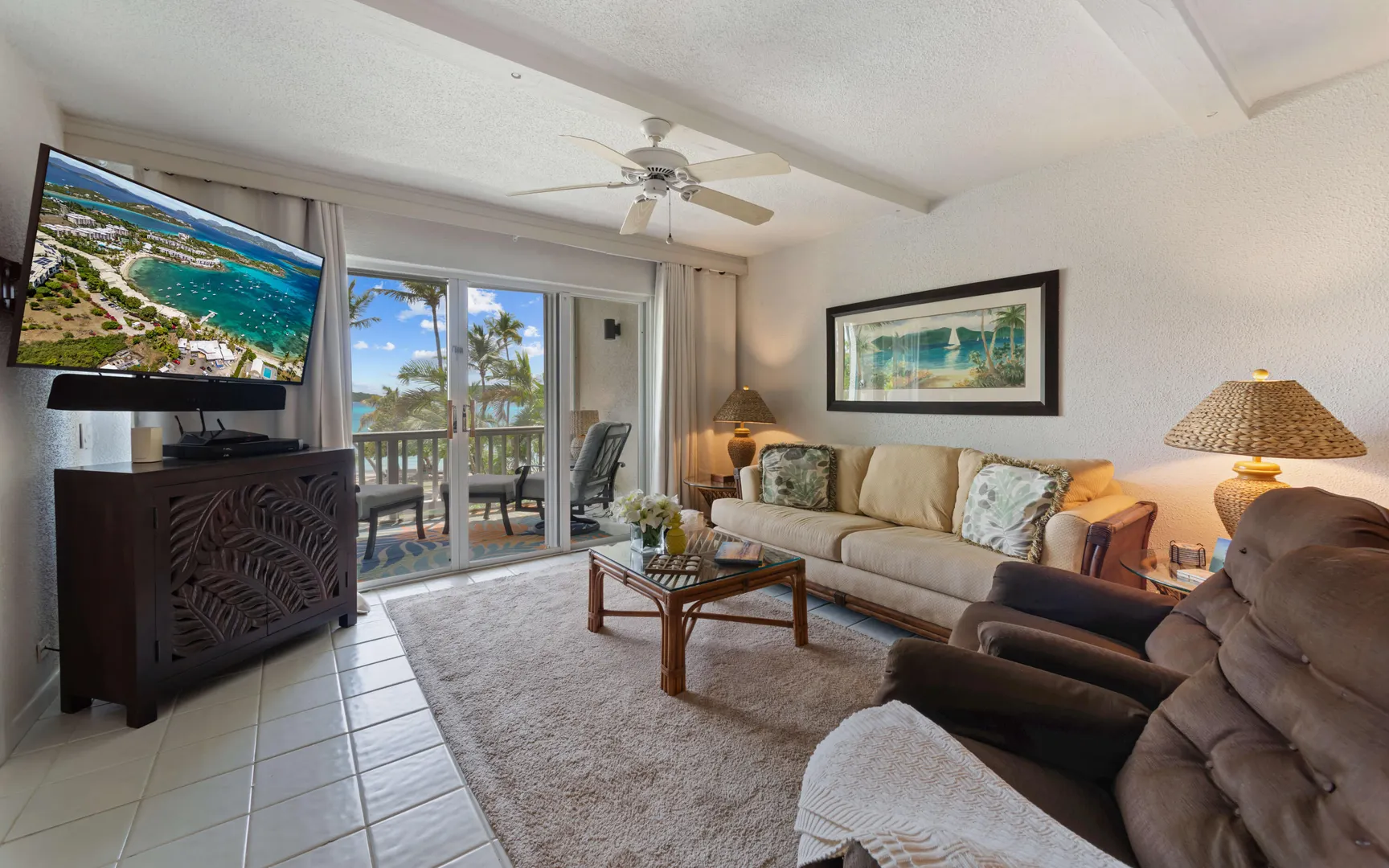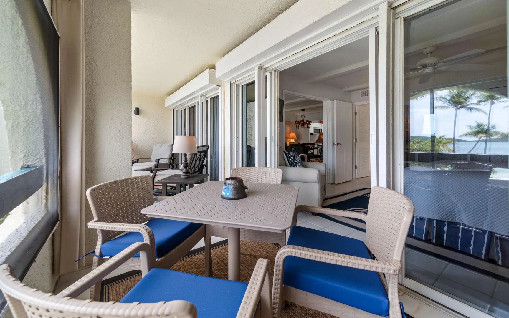 A RARE FIND! 2 BR 2 Bath elegantly furnished BEACHFRONT condominium- Cowpet Bay West! One of the BEST locations in the complex! A private sidewalk just steps off the front balcony lead directly to the white sandy beach & ocean! Upon entry - open layout with OCEAN VIEWS & BREEZES1 Full size kitchen, Dining & living room expand to a screened veranda - has afternoon shade & sounds of ocean waves! Updates 2023 - en-suite baths, expanded walk-in closet, new Trane A/C, 3 mini splits & electrical upgrade for high capacity tankless water heater. Sea side BR has unobstructed ocean views with sliding doors to the veranda. Ideal East End location close to the Ritz Carlton, Easy access to pool/hot tub (membership) 2 restaurants - beachhut excursions. PERFECT RENTAL or your own Island Retreat!