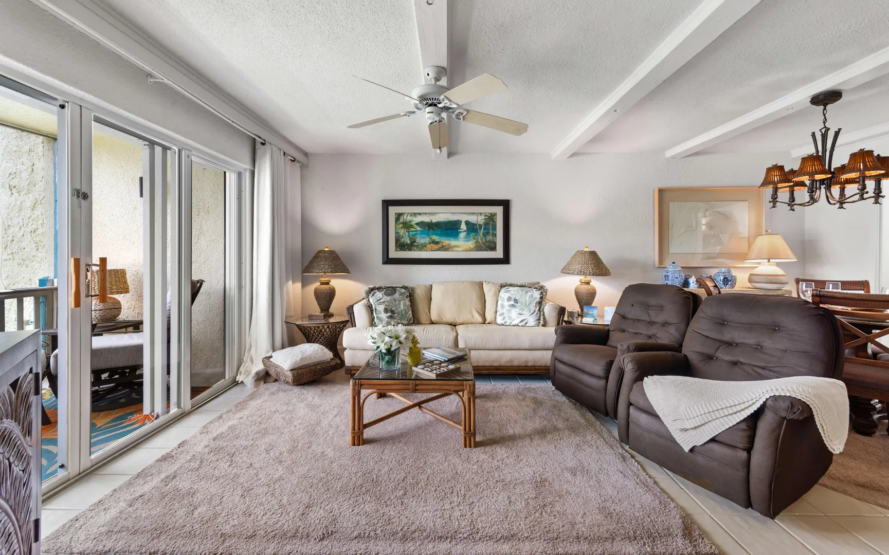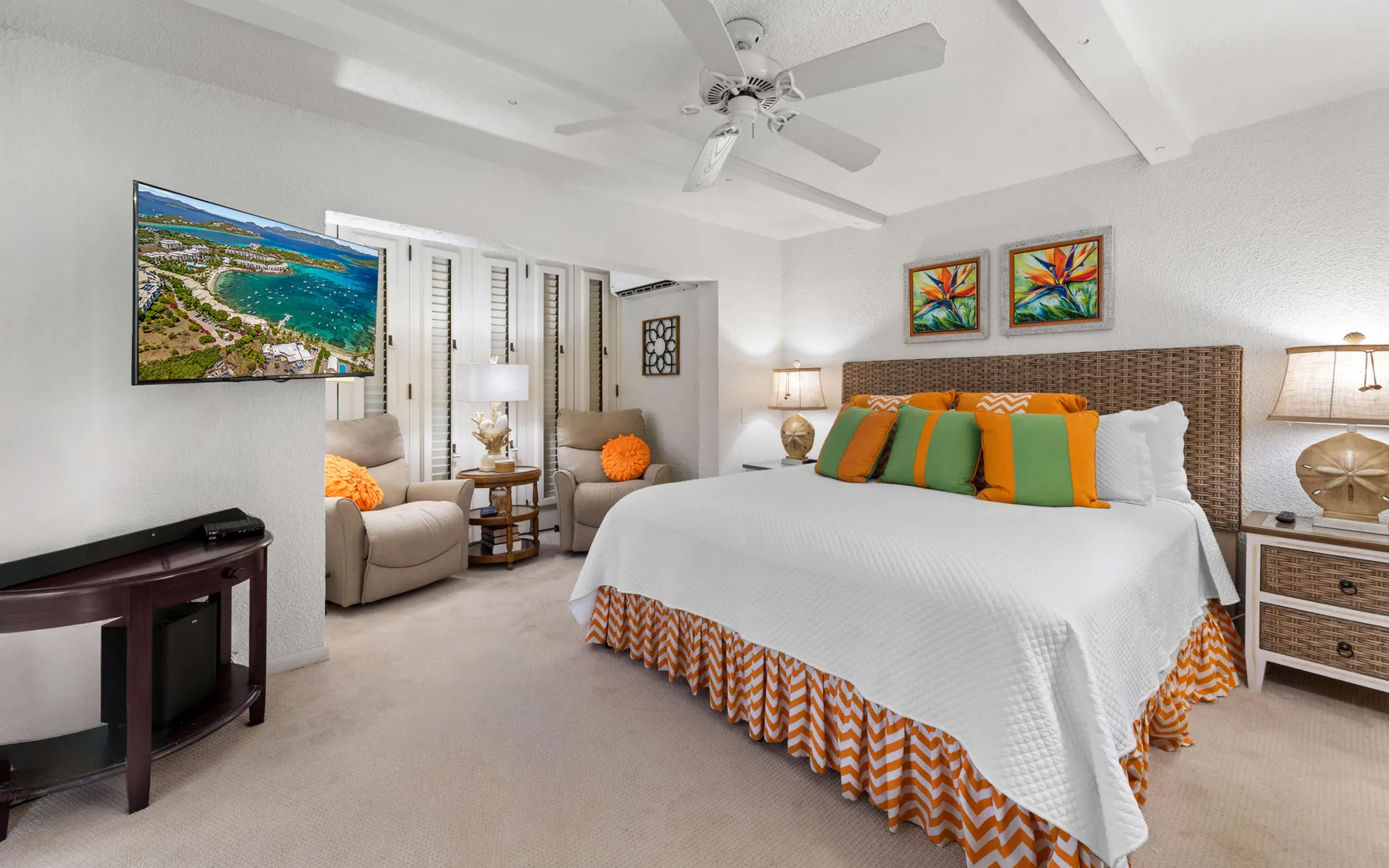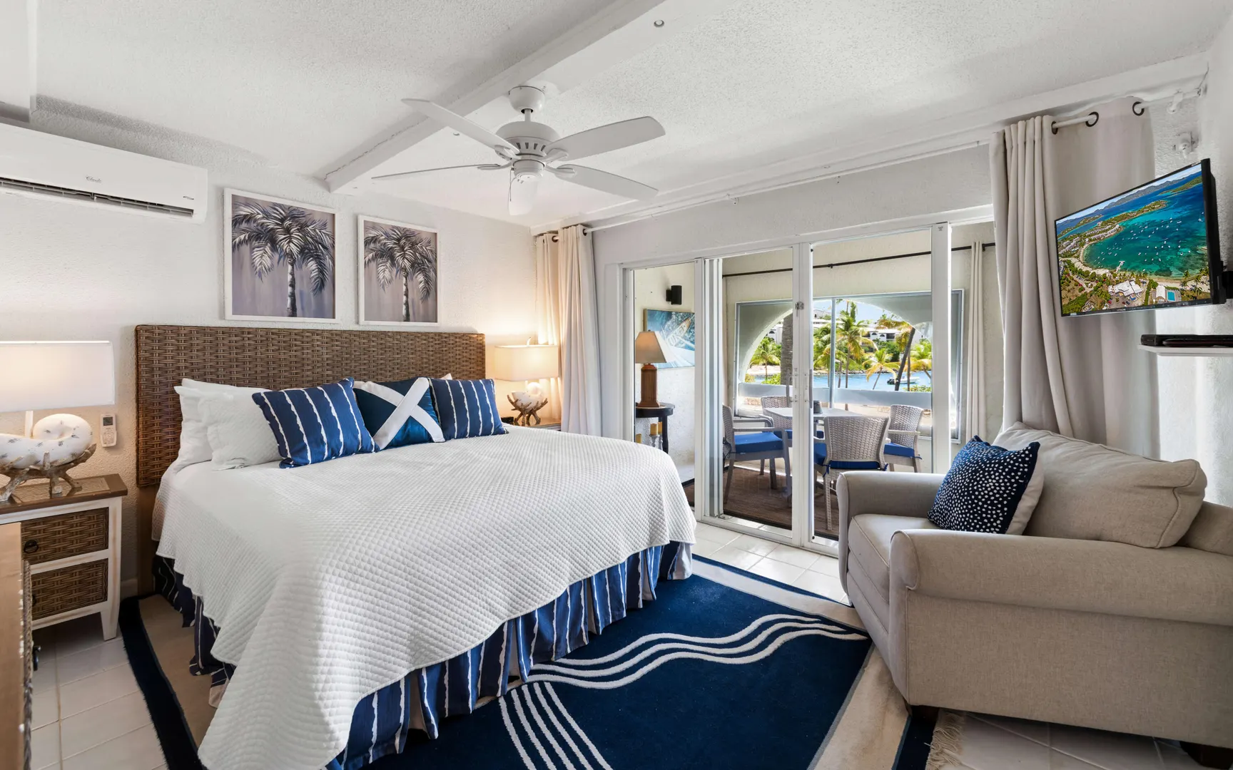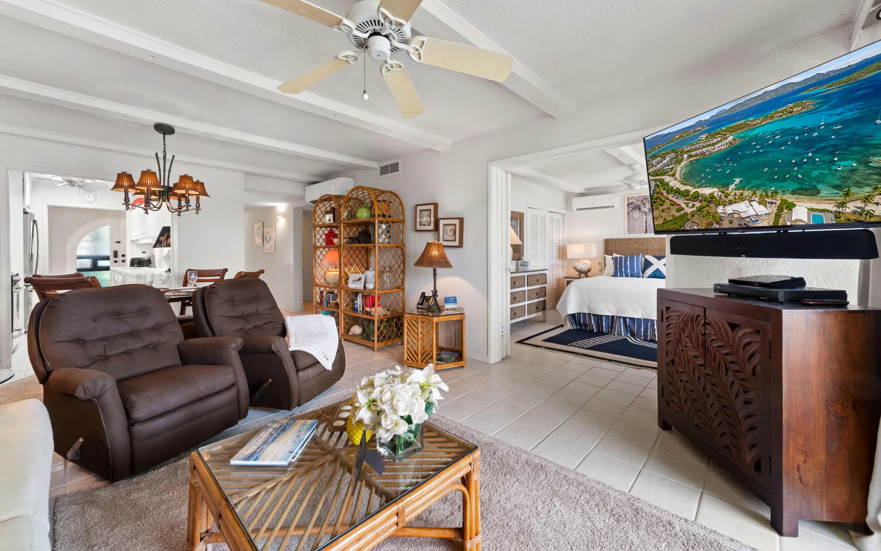 A RARE FIND! 2 BR 2 Bath elegantly furnished BEACHFRONT condominium- Cowpet Bay West! One of the BEST locations in the complex! A private sidewalk just steps off the front balcony lead directly to the white sandy beach & ocean! Upon entry - open layout with OCEAN VIEWS & BREEZES1 Full size kitchen, Dining & living room expand to a screened veranda - has afternoon shade & sounds of ocean waves! Updates 2023 - en-suite baths, expanded walk-in closet, new Trane A/C, 3 mini splits & electrical upgrade for high capacity tankless water heater. Sea side BR has unobstructed ocean views with sliding doors to the veranda. Ideal East End location close to the Ritz Carlton, Easy access to pool/hot tub (membership) 2 restaurants - beachhut excursions. PERFECT RENTAL or your own Island Retreat!