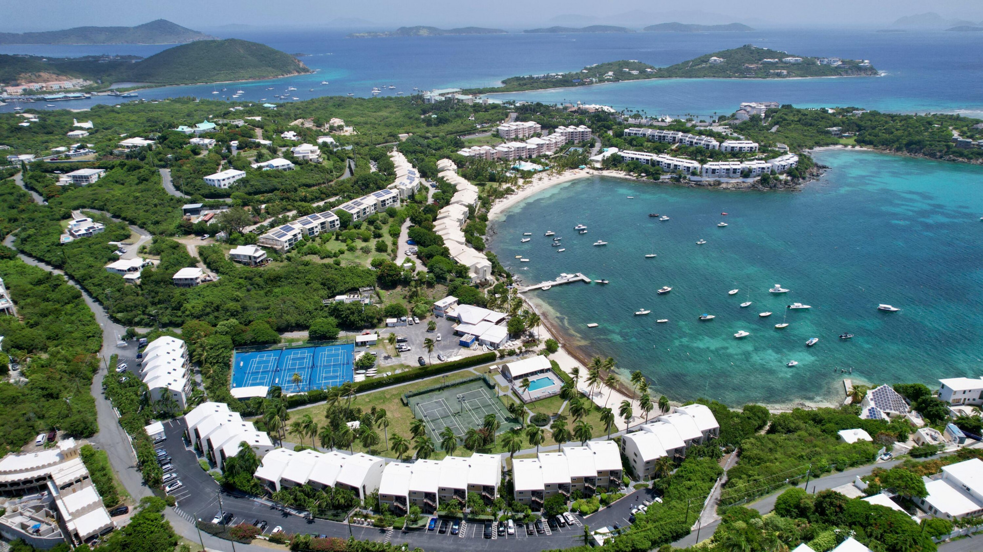 Everything you have been looking for in a Caribbean getaway has just come on the market!! Lovely two bedroom two bathroom condo in a gated community, with a sandy beach, swimming pool, workout room, tennis courts and beautiful lush landscaping! All combine to make this one of the finest places to call home on the market today. Fully furnished with all of the necessities to move in tomorrow or continue in the short term rental program. Great location next to the St Thomas Yacht Club and walking distance to several restaurants and the Ritz Carlton. The bustling town of Redhook is a five minute drive with a dozen additional eateries and bars and American Yacht Harbour Marina!!! Become a part of the Caribbean community and help pay for your vacation home. Caribbean life at its finest!!