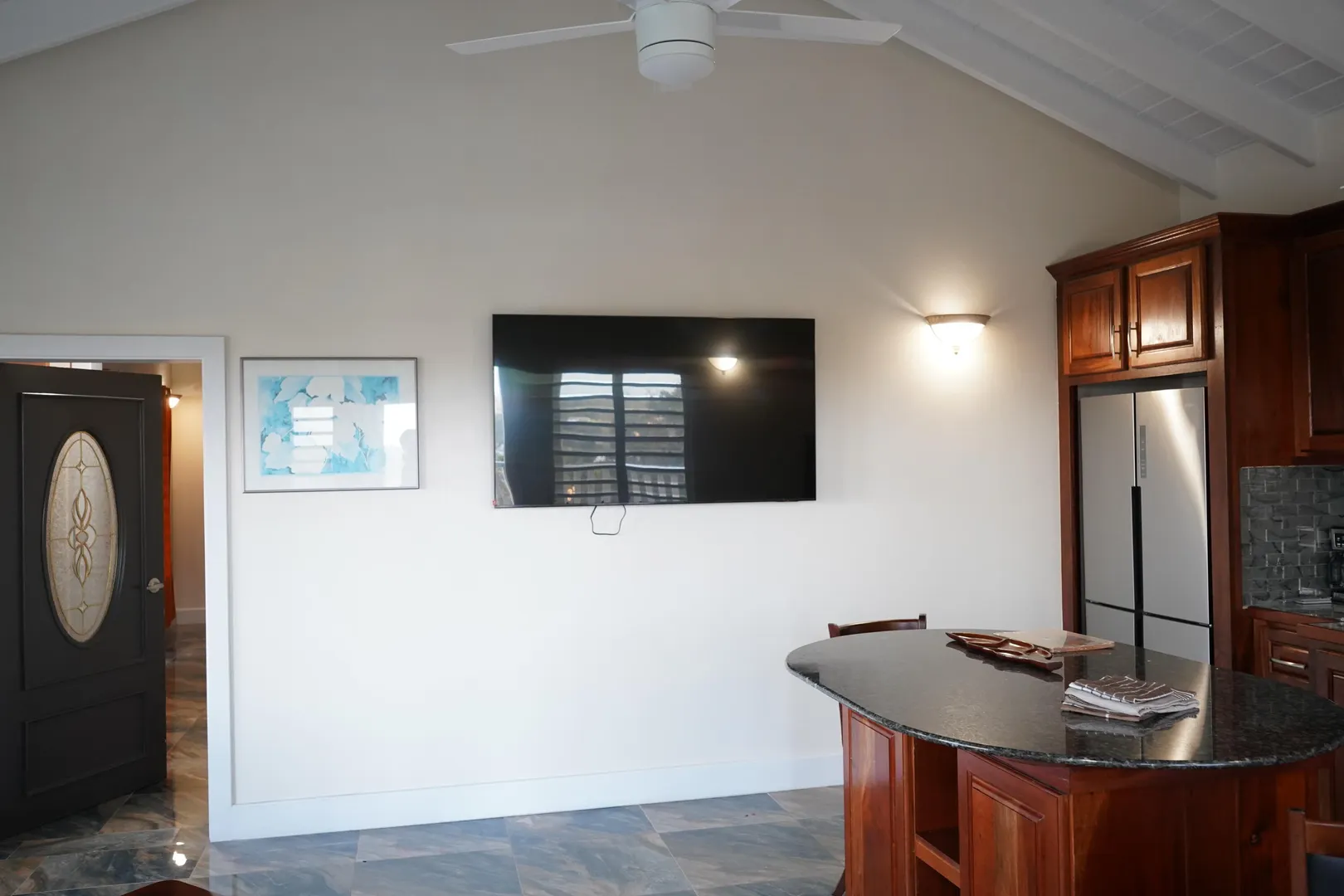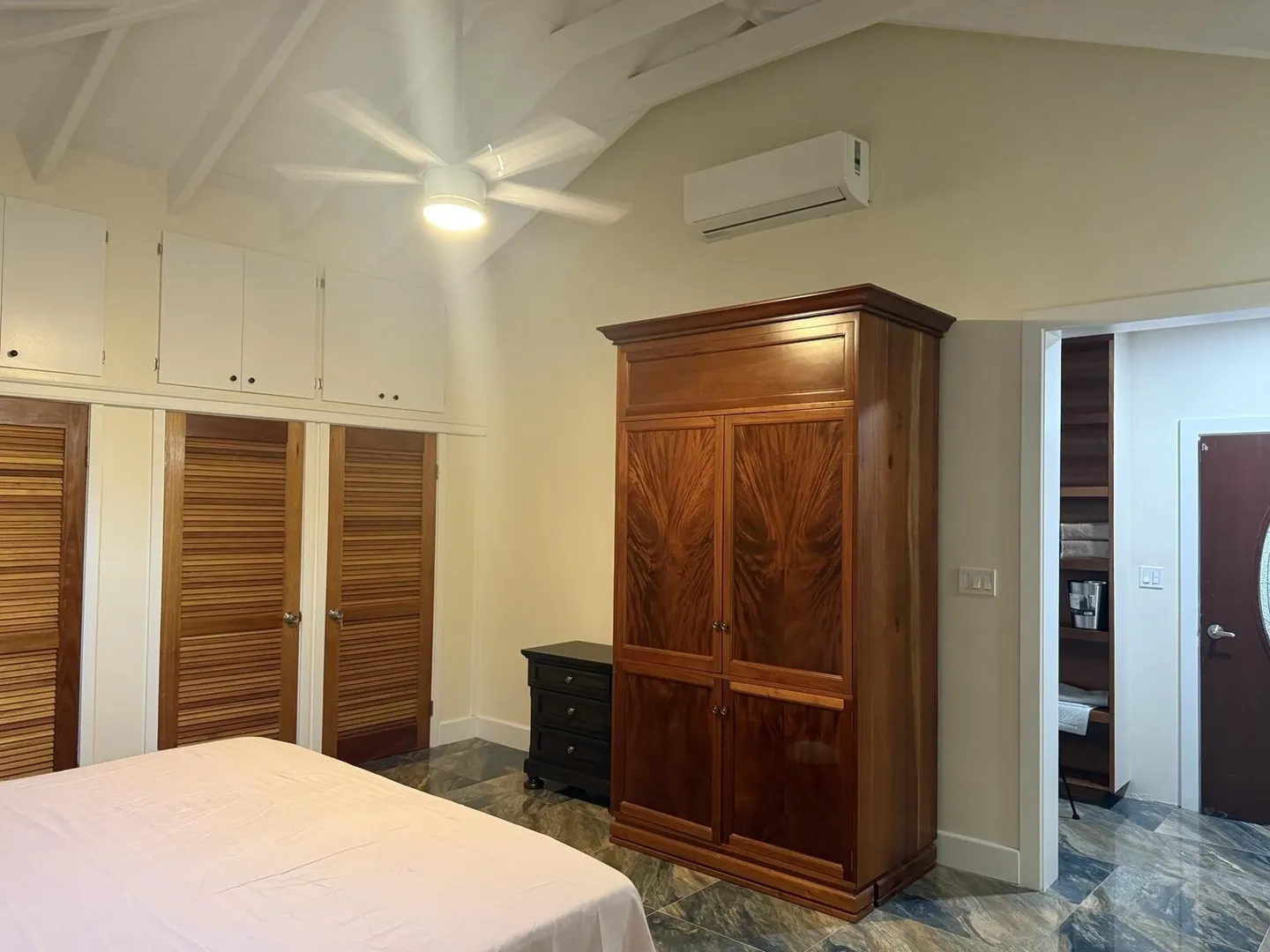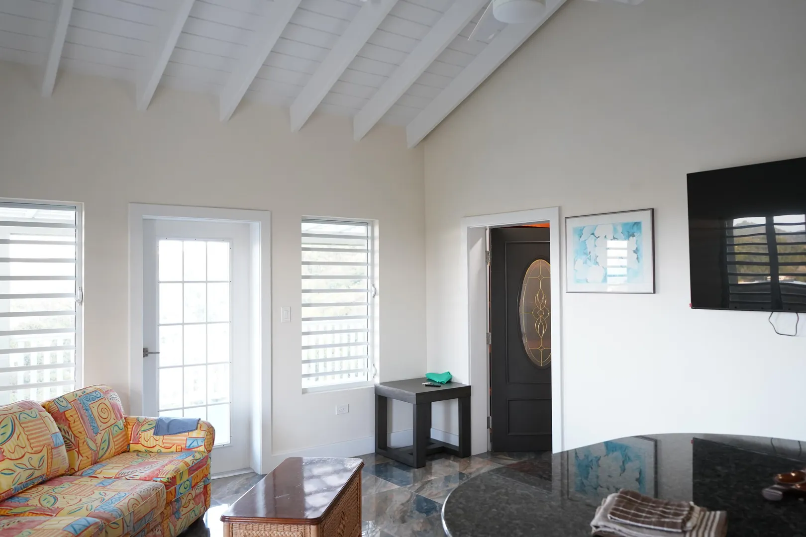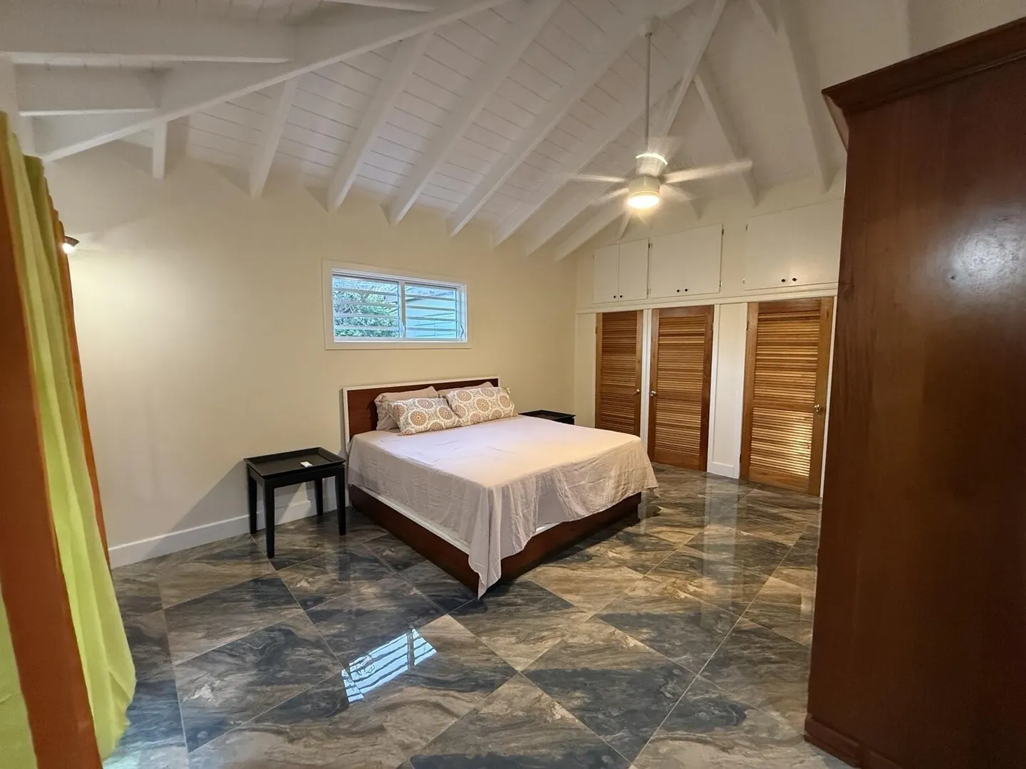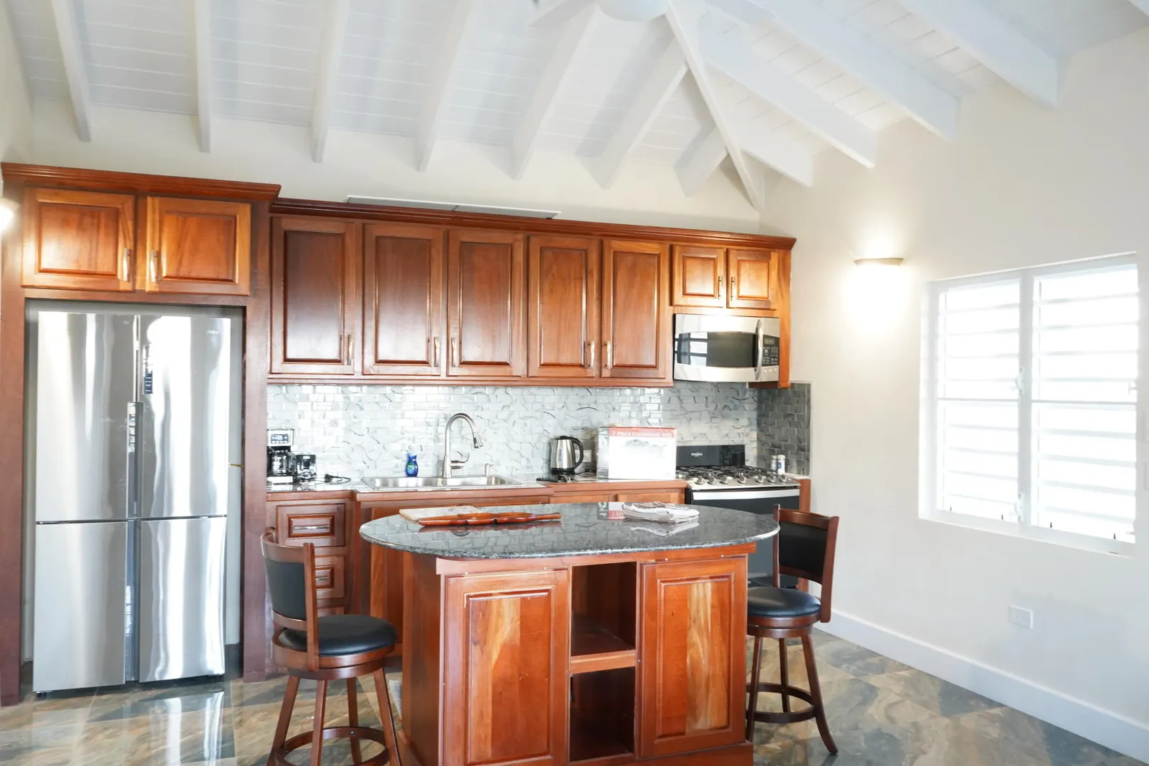 Enjoy island living in this well-designed home with great views, including a clear look over to St. John. The open layout features high vaulted ceilings, exposed beams, and large tile flooring that keeps the space cool and clean. The kitchen is finished with solid wood cabinets, granite countertops, stainless steel appliances, and a large island that works well for everyday use. The bedroom is oversized with plenty of room along with generous closet space throughout. The bathroom has been nicely updated with full tile and a walk-in shower for a modern feel. Outside, the large covered porch and gallery give you the perfect spot to catch the breeze, relax, and take in the surrounding hills and water views. Washer and Dry to be added.