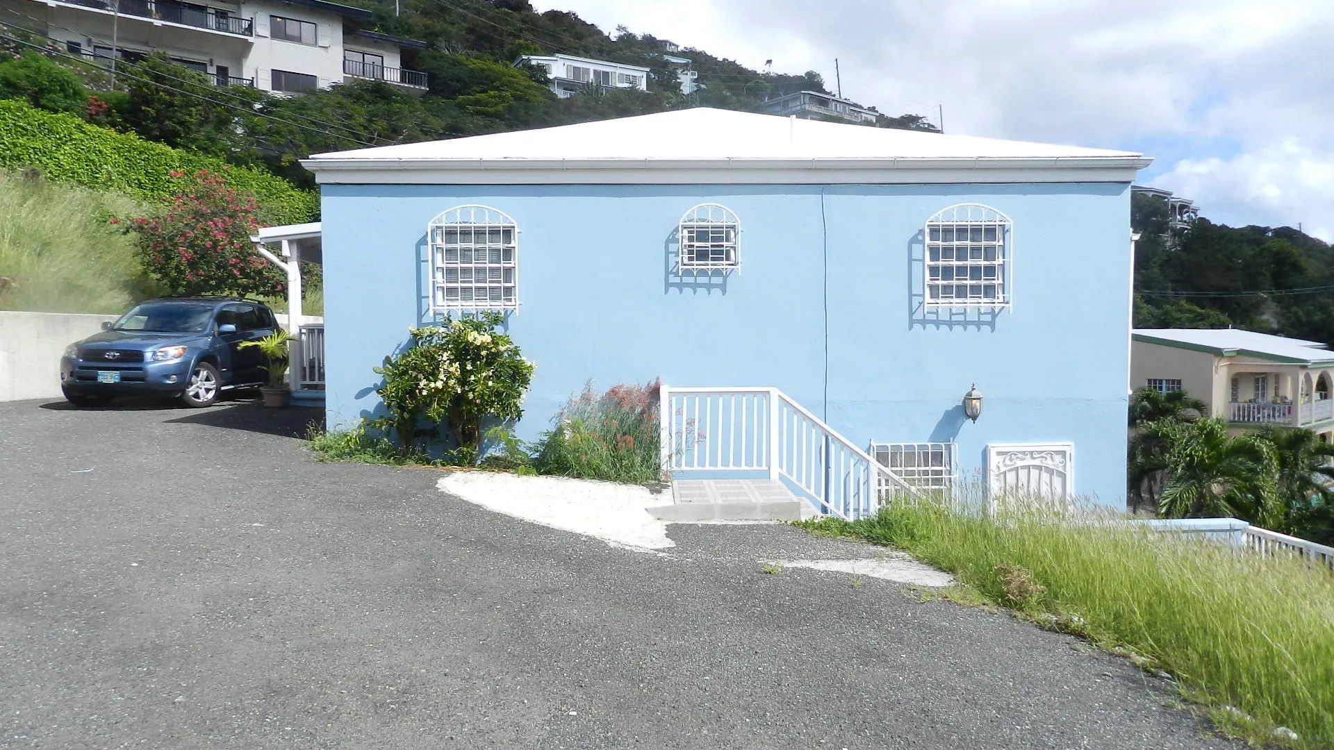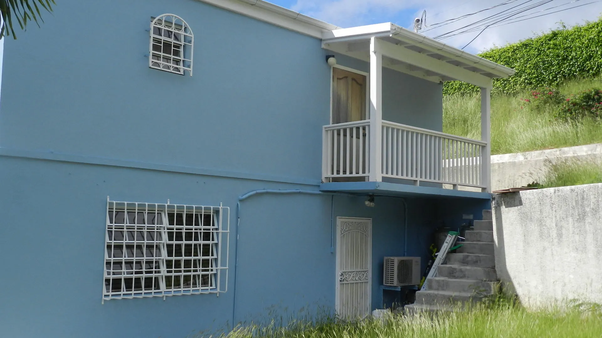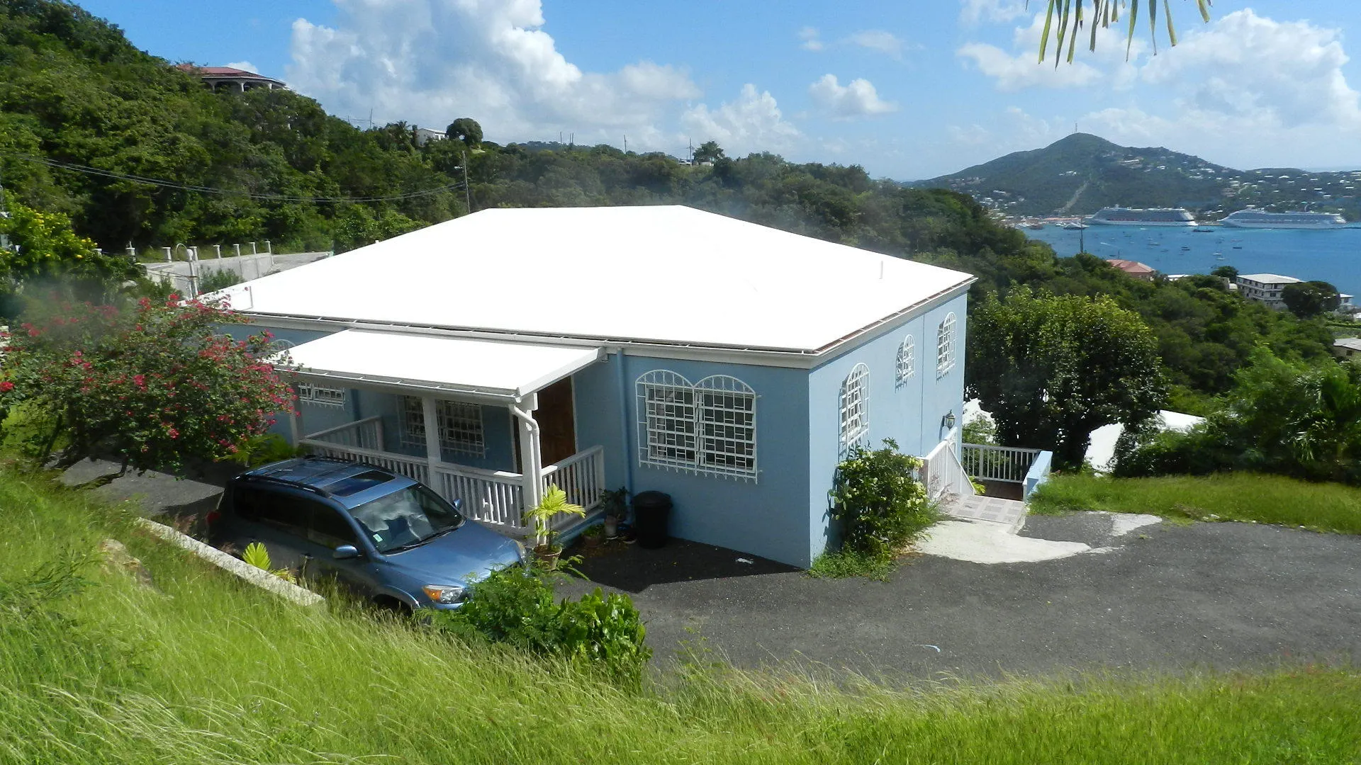 Pristine, well built 3 BR masonry home in quiet, Solberg neighborhood,enjoys panoramic harbor views and breezes.Spacious family layout, all walk in level, some flat yard areas and huge parking area. Large 1 Br apt was just completely renovated to luxury standards, adds income. New Low consumption AC's throughout, but designed for natural cooling. A family dream, no work needed here!