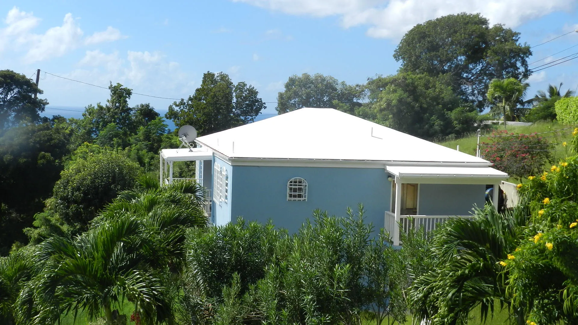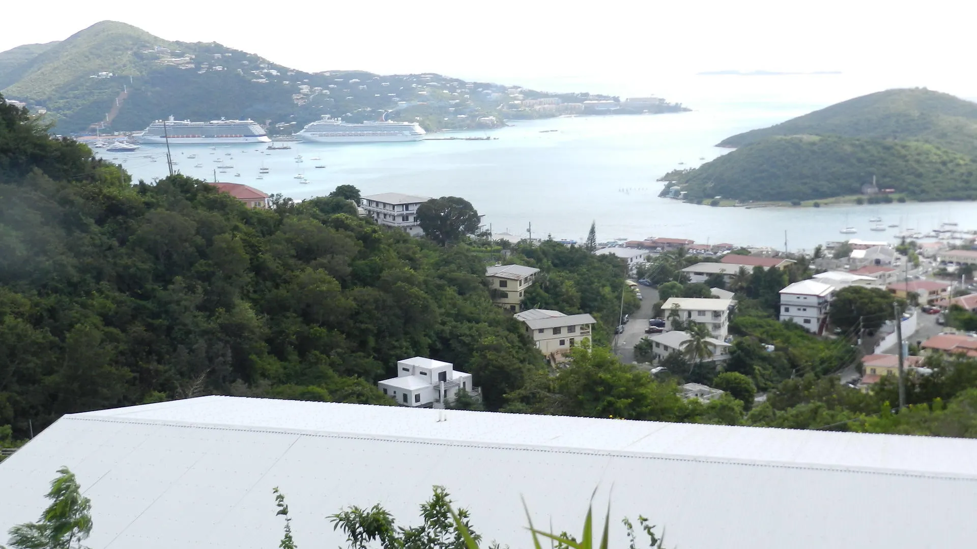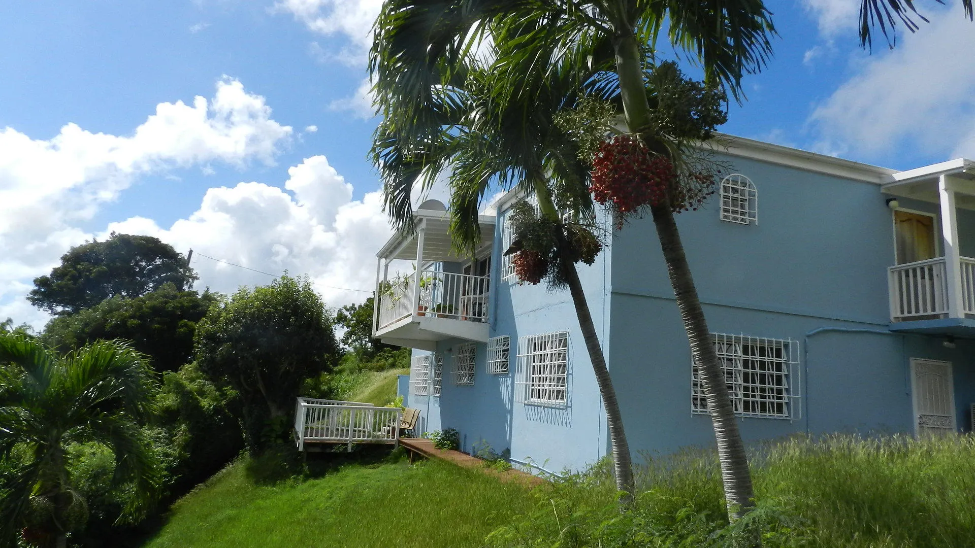 Pristine, well built 3 BR masonry home in quiet, Solberg neighborhood,enjoys panoramic harbor views and breezes.Spacious family layout, all walk in level, some flat yard areas and huge parking area. Large 1 Br apt was just completely renovated to luxury standards, adds income. New Low consumption AC's throughout, but designed for natural cooling. A family dream, no work needed here!