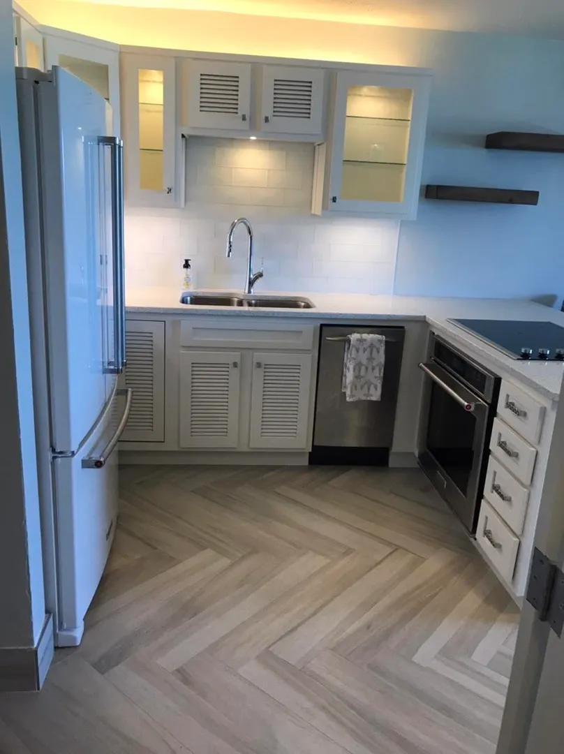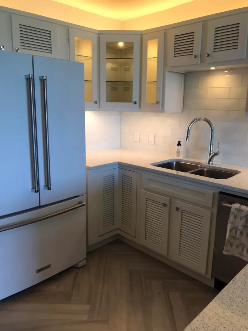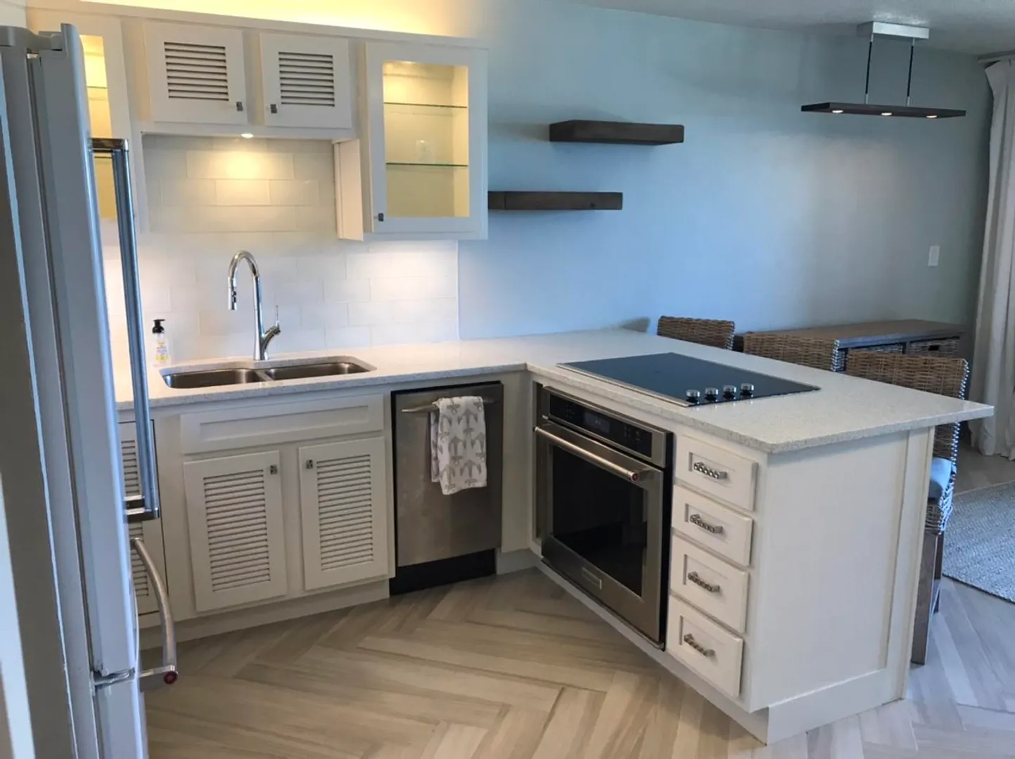 WALK OUT YOUR DOOR ONTO THE WHITE SANDS of SAPPHIRE BEACH RESORTThis completely remodeled 2-story Condo-Villa in building A is a custom remodel and comes completely furnished. Designed to comfortably sleep 6. It is one of very few units that has a washer/dryer, dishwasher and full size oven and cooktop. The kitchen features an island with seating for 3, custom cabinetry with louvered doors, Cambria countertops, Kitchenaid appliances, under cabinet lighting, interior cabinet lighting and uplighting above cabinets. Enjoy dinning alfresco on the covered balcony. Flooring throughout is a light gray tile set in a beautiful herringbone pattern. The master en suite offers a custom glass shower with marble & glass tile, a king bed and sleeper sofa. Private covered Balcony off the Master.