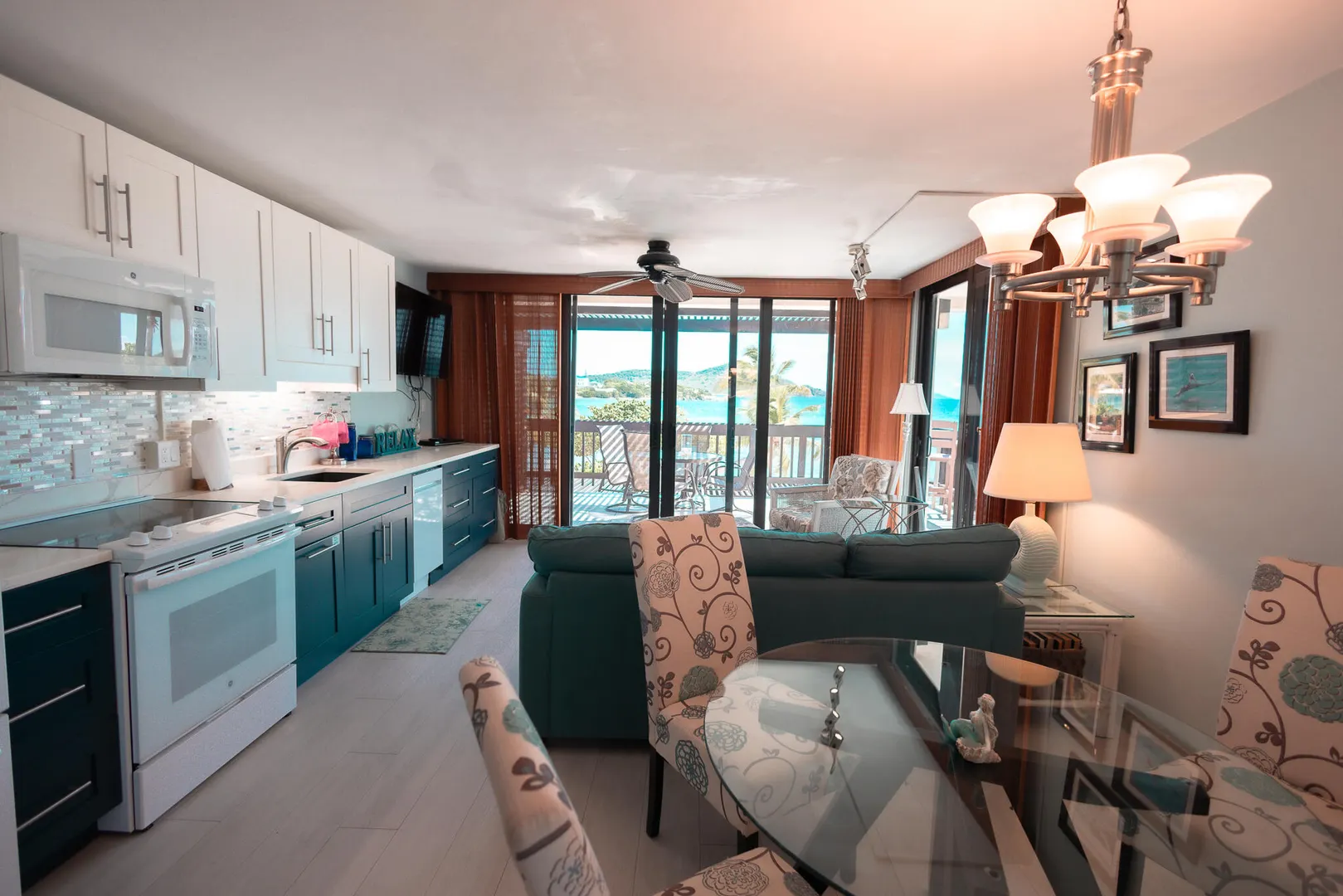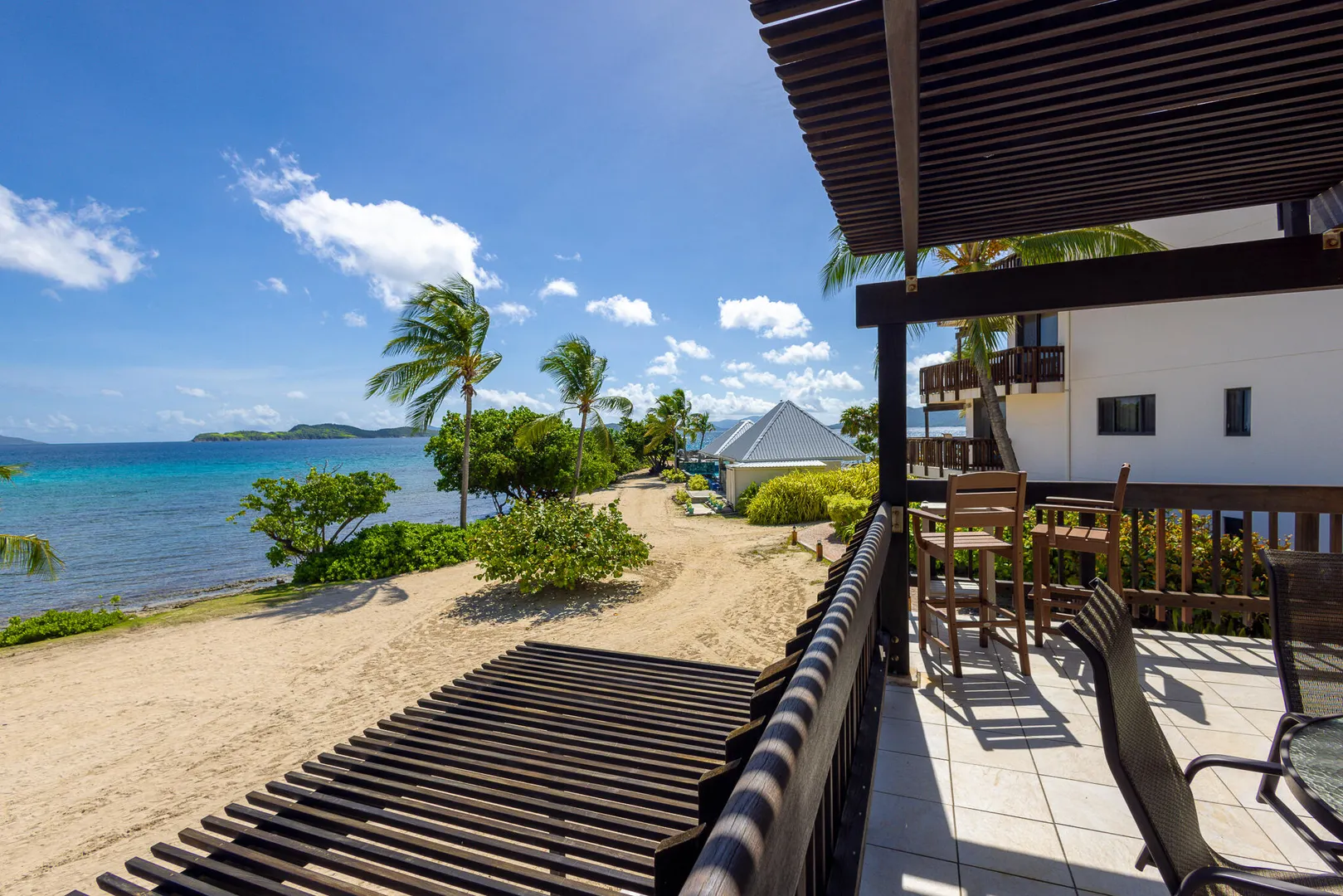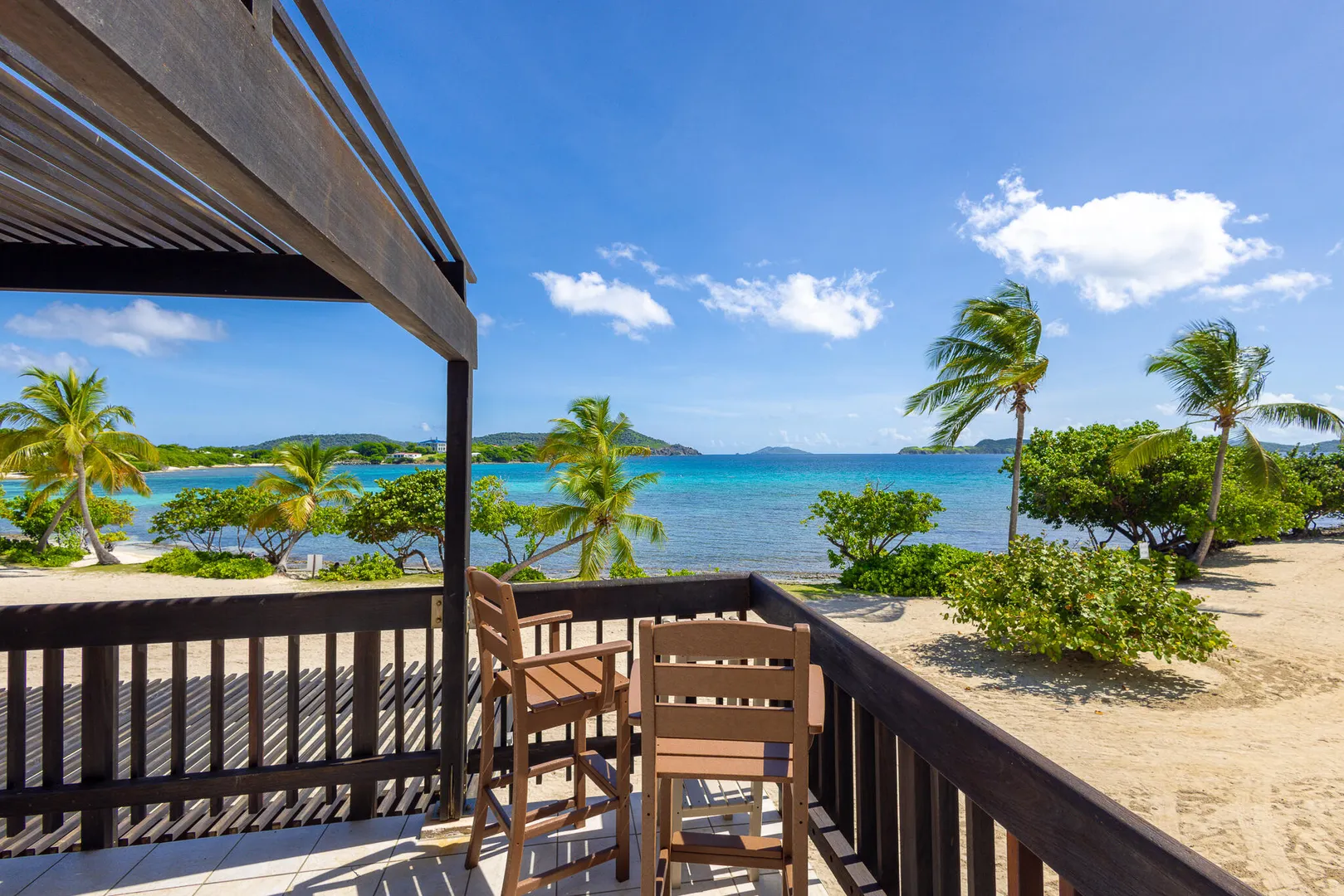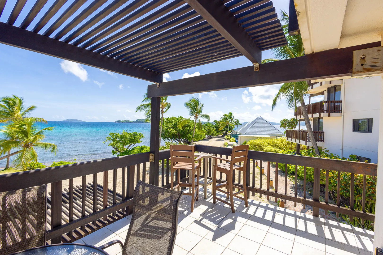Step inside and take in the expansive island views from this Sapphire Beach Resort & Marina corner studio, featuring a spacious wraparound balcony. This studio offers an updated kitchen, modern flooring, and stylish furnishings. The second-floor location ensures privacy and security, allowing you to leave the sliding balcony doors open day and night to enjoy the gentle waves and refreshing trade winds. Step onto your private balcony and immerse yourself in the breathtaking beauty of Sapphire Beach, where endless adventures await - from snorkeling in crystal-clear waters to kayaking or simply soaking up the sun. Within the resort grounds, you'll find everything you need for a truly memorable stay. Enjoy a freshly brewed cup of coffee at Beach Buzz Coffee Shop, savor tropical cocktails at