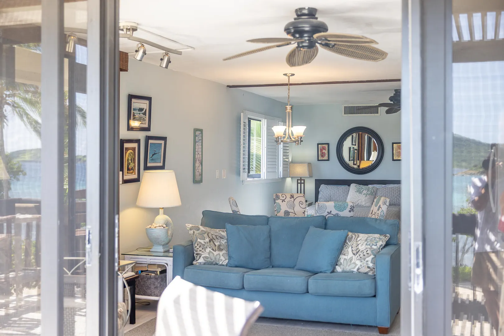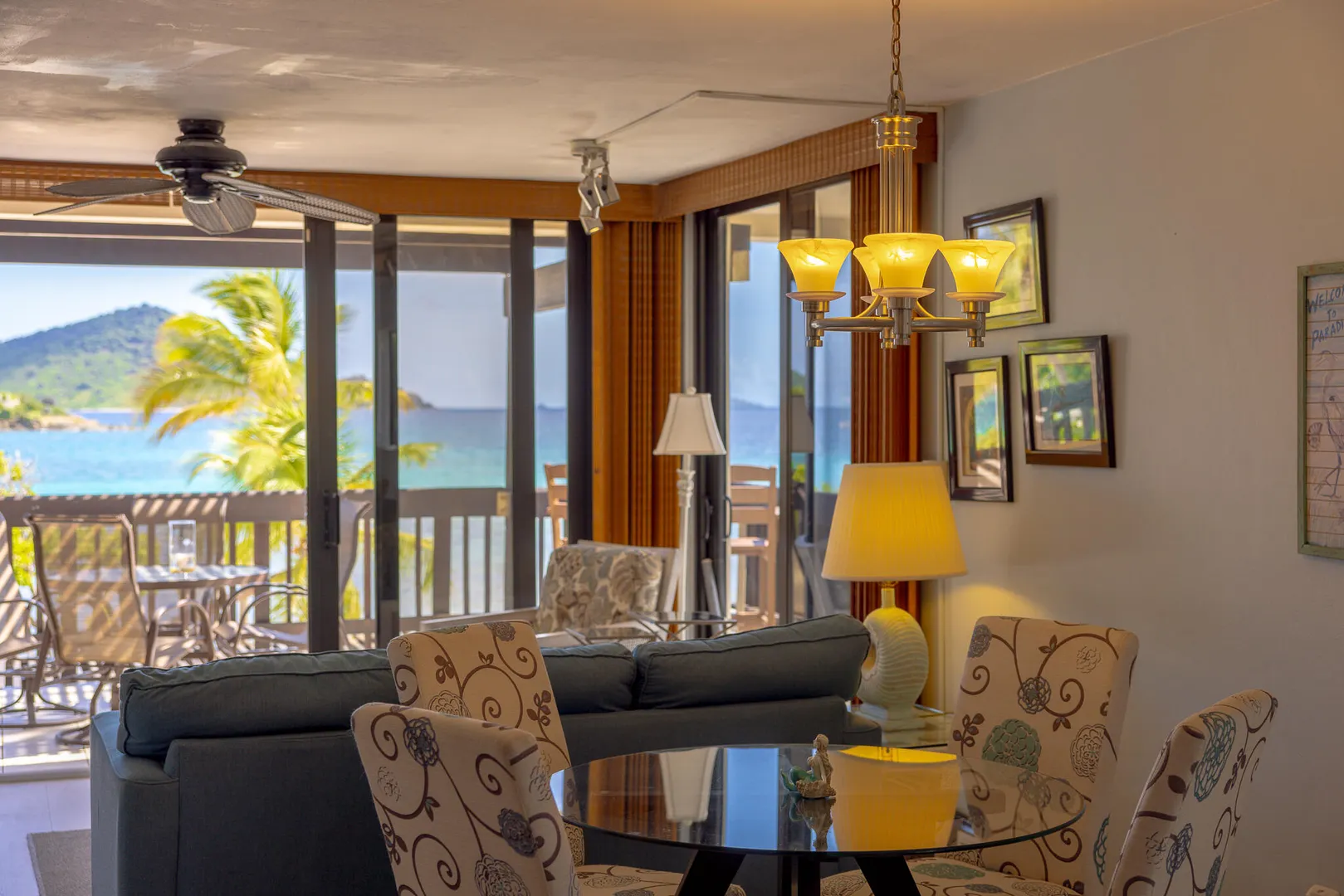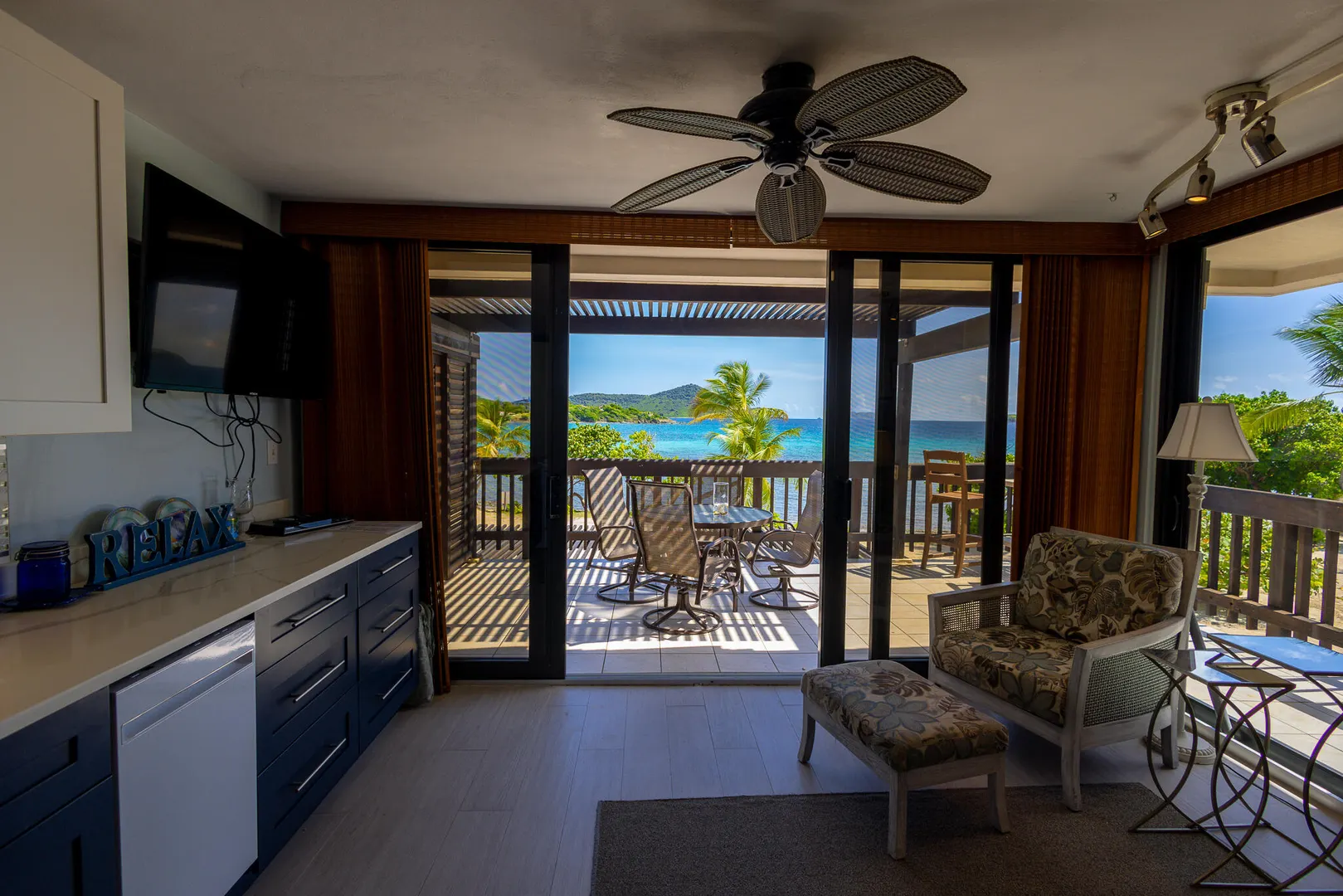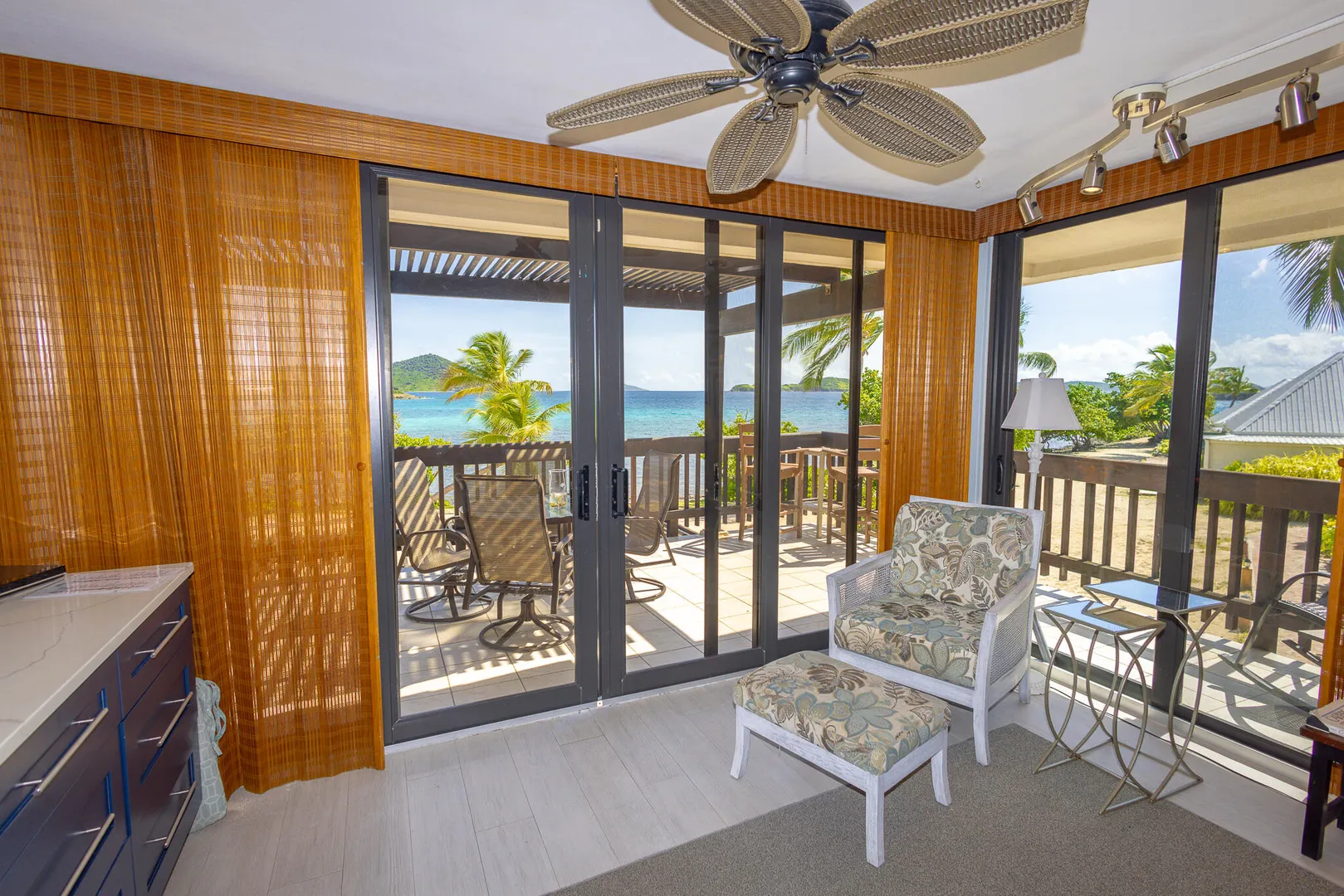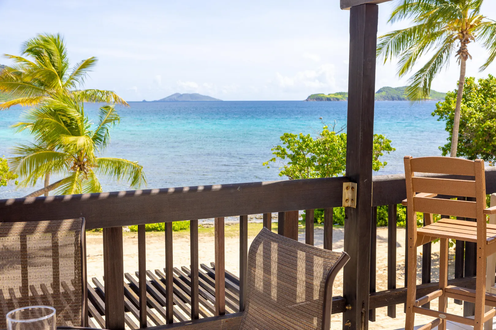 Step inside and take in the expansive island views from this Sapphire Beach Resort & Marina corner studio, featuring a spacious wraparound balcony. This studio offers an updated kitchen, modern flooring, and stylish furnishings. The second-floor location ensures privacy and security, allowing you to leave the sliding balcony doors open day and night to enjoy the gentle waves and refreshing trade winds. Step onto your private balcony and immerse yourself in the breathtaking beauty of Sapphire Beach, where endless adventures await - from snorkeling in crystal-clear waters to kayaking or simply soaking up the sun. Within the resort grounds, you'll find everything you need for a truly memorable stay. Enjoy a freshly brewed cup of coffee at Beach Buzz Coffee Shop, savor tropical cocktails at