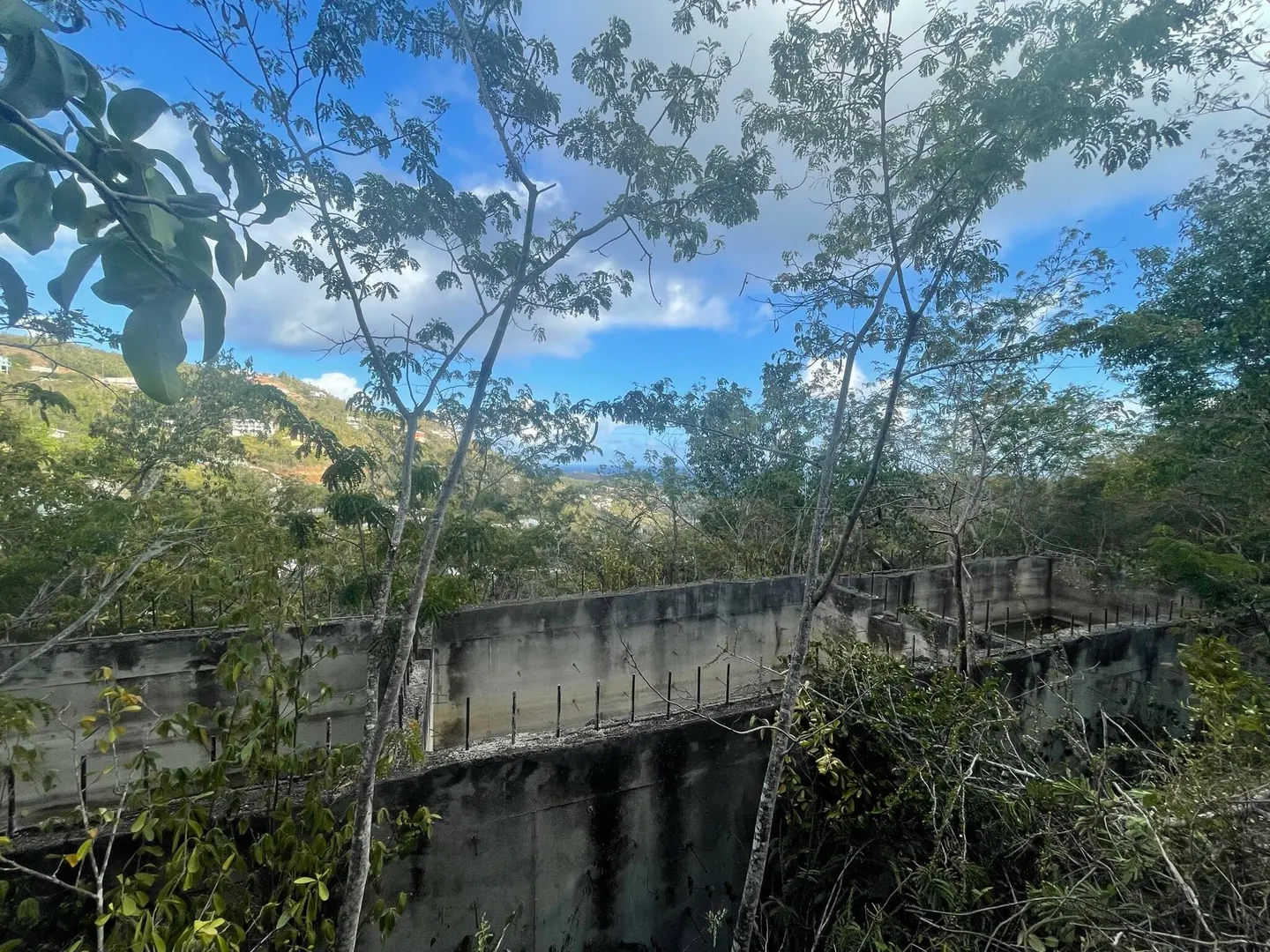 .565 Acre Lot in Frenchman's Bay. Driveway and large cistern on property. Partially cleared where you can see the cistern and buildable area.