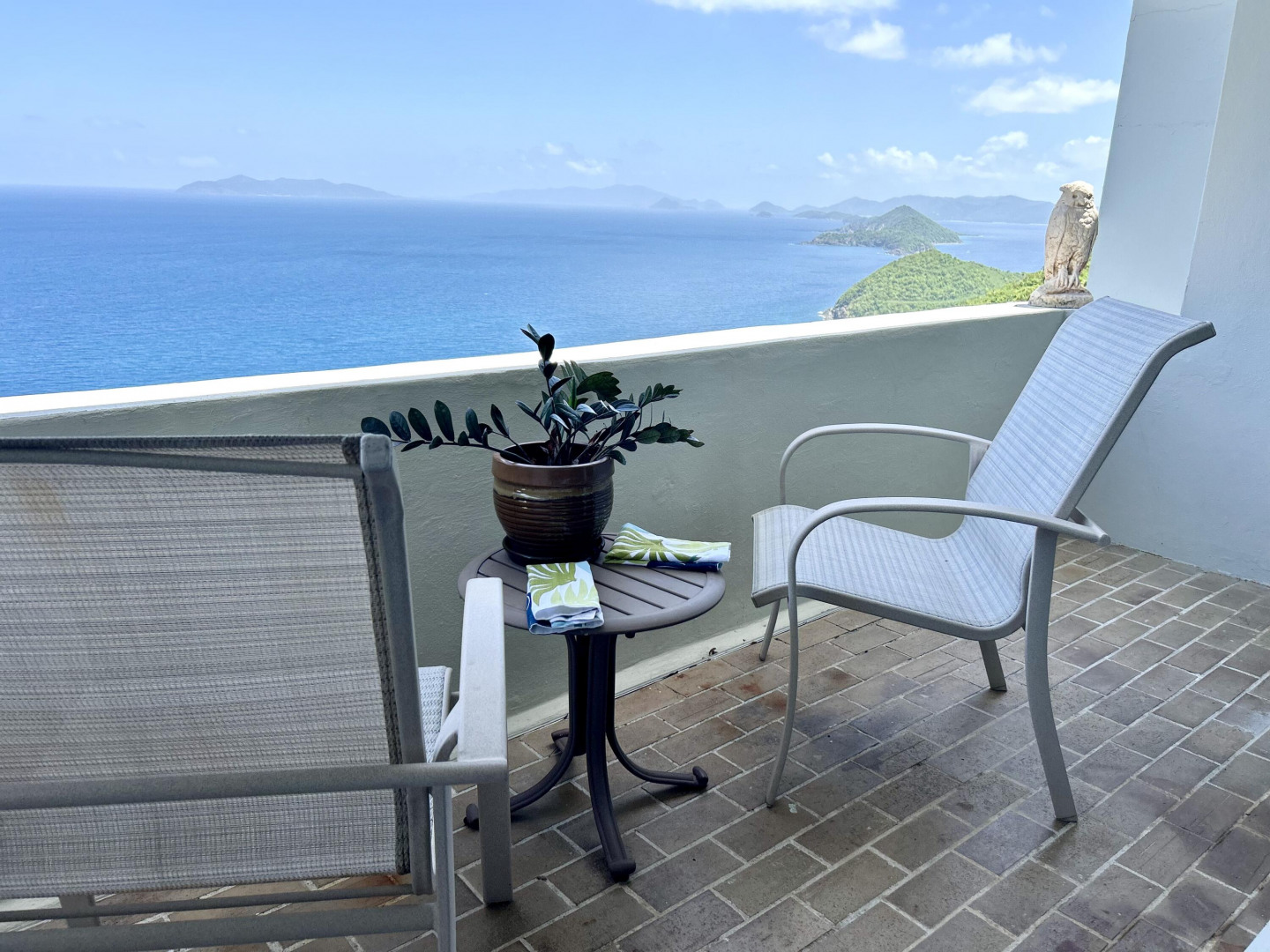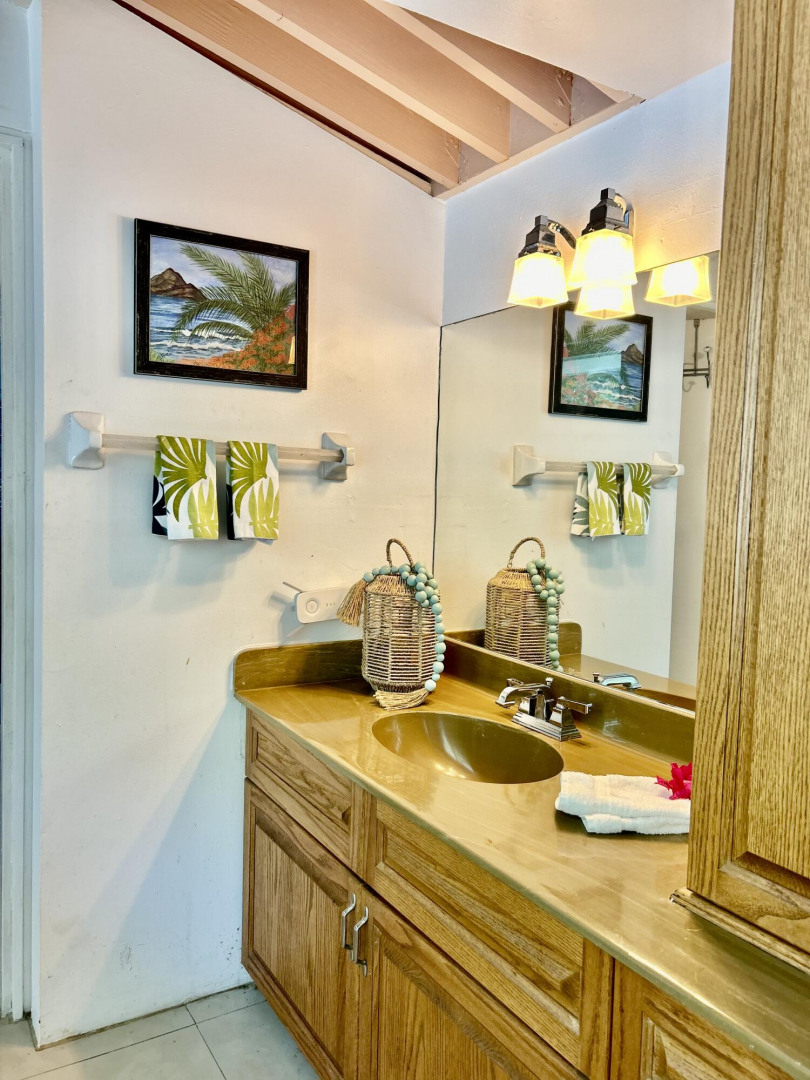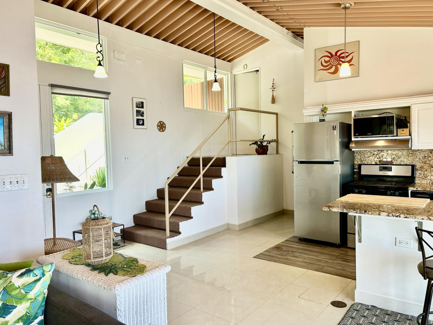 Located in the gated community of Mahogany Run, this unique Walk-In, Split-Level condominium boasts cathedral ceilings and rare expansive views of the islands and cays stretching from St. Thomas to the British Virgin Islands. The Split-Level design affords open concept living between the dining, kitchen and living room areas next to the Master Suite. The guest suite is located on the second floor and provides the utmost privacy with its private outdoor entry and deck. The guest suite is the ideal location for a home office or artist's studio and features a custom, built in bookcase and desk. Complete with a GENERATOR, newly installed wind guard windows and doors, and a leisurely walk to the community pool, and dinning on site - this condominium has it all.